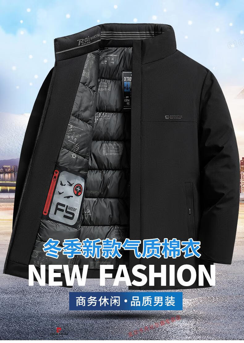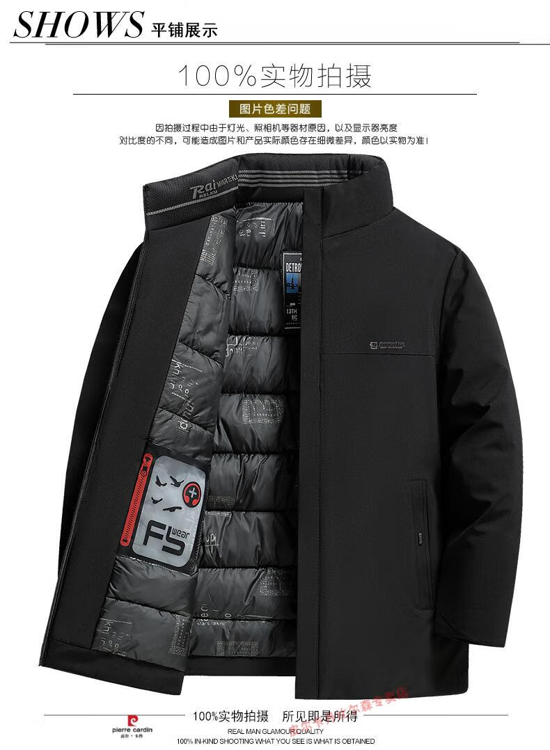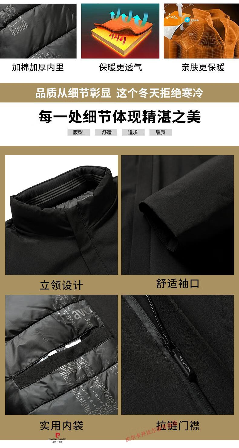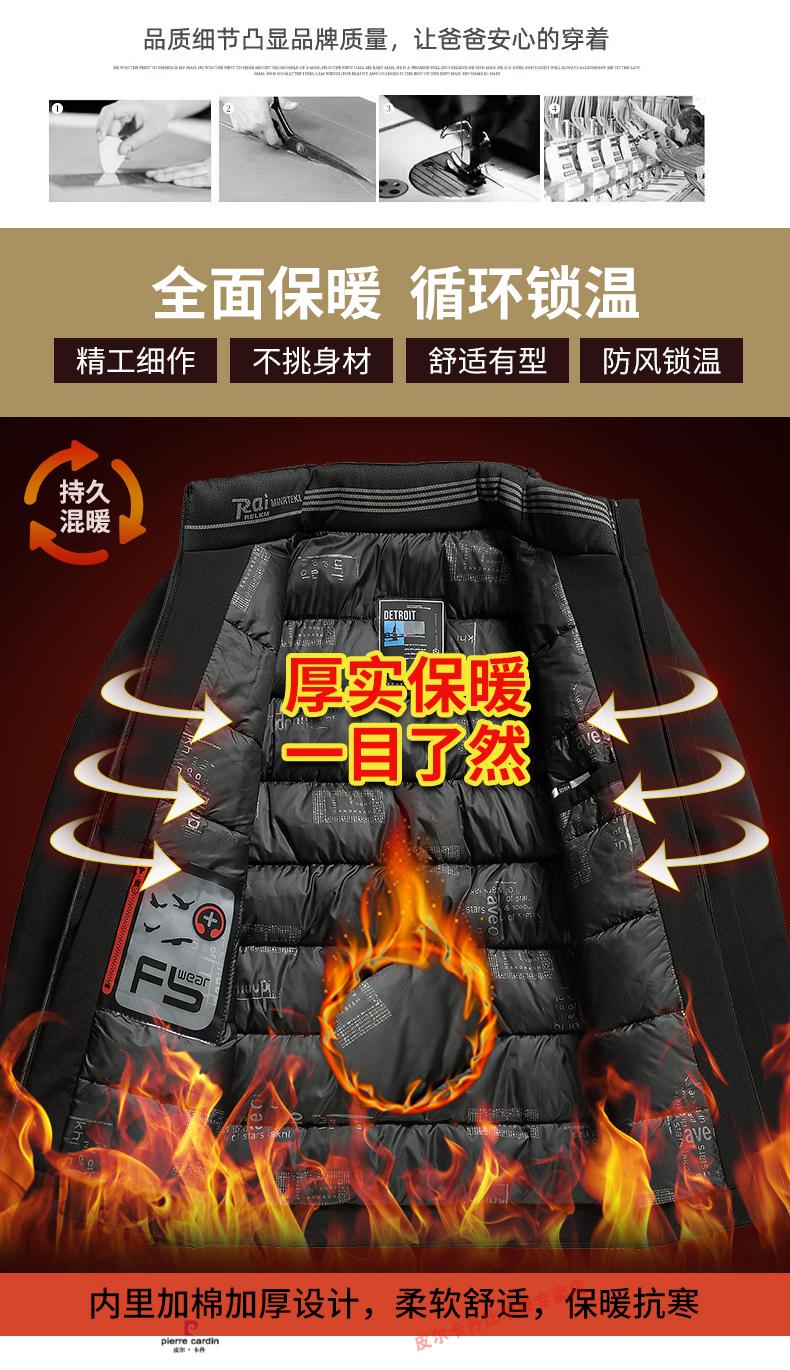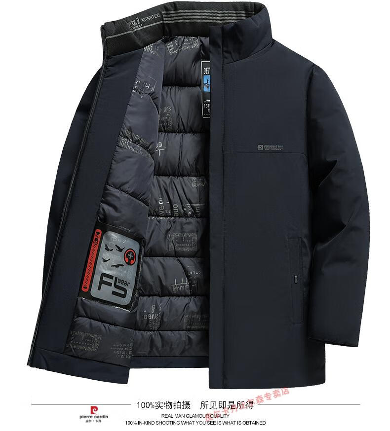Pierre Cardin high-end middle-aged and elderly dad winter coat middle-aged men's cotton padded coat thickened down padded coat grandpa winter cotton coat navy blue XL suitable for 135-150Jin Jin equals 0.5 kg