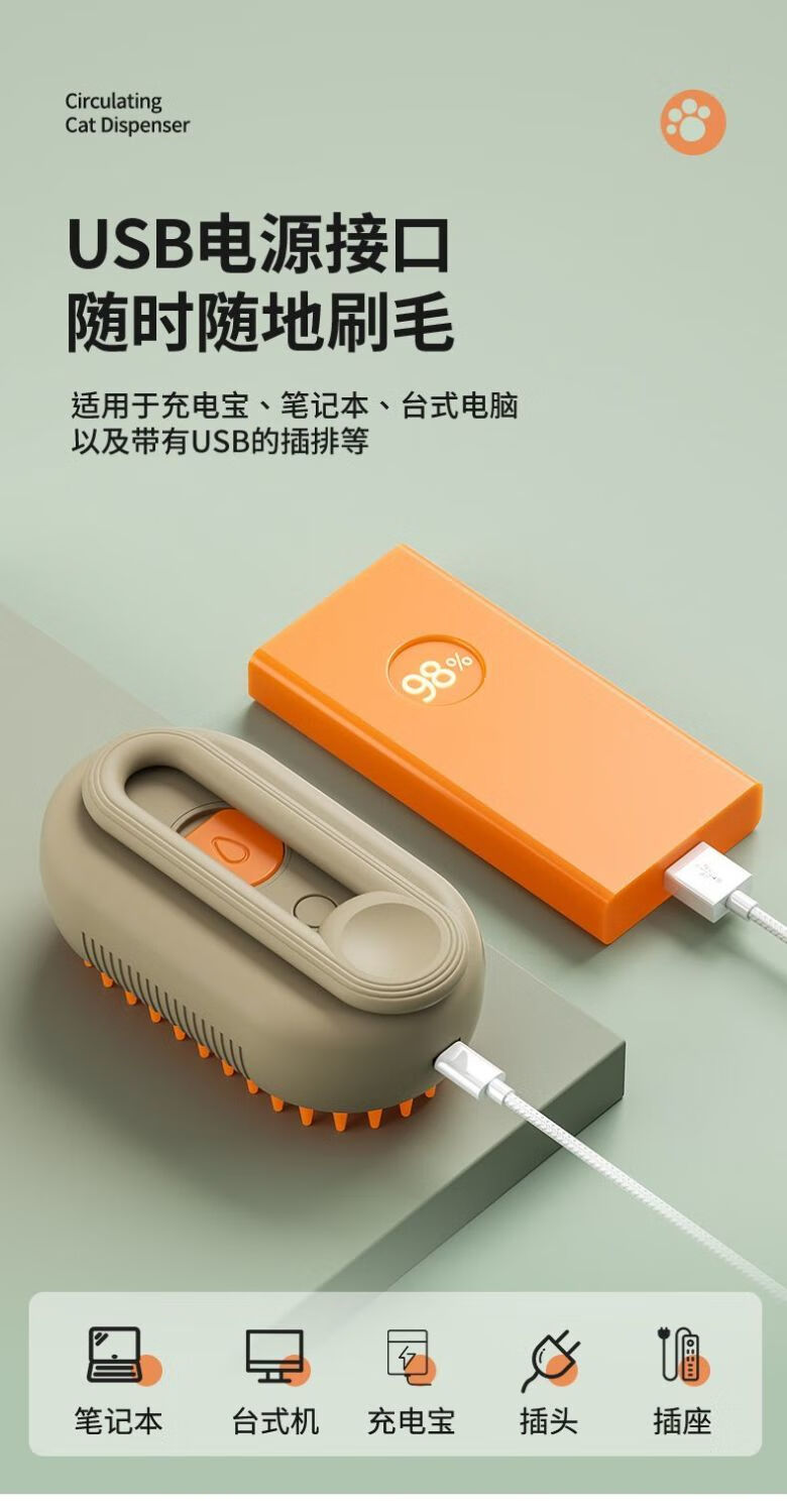 Aifei pet spray cat comb, anti-flying hair removal comb, cat and dog hair removal comb, wet and dry water spray massage brush, milk coffee color - handle spray comb, free charging cable + essence