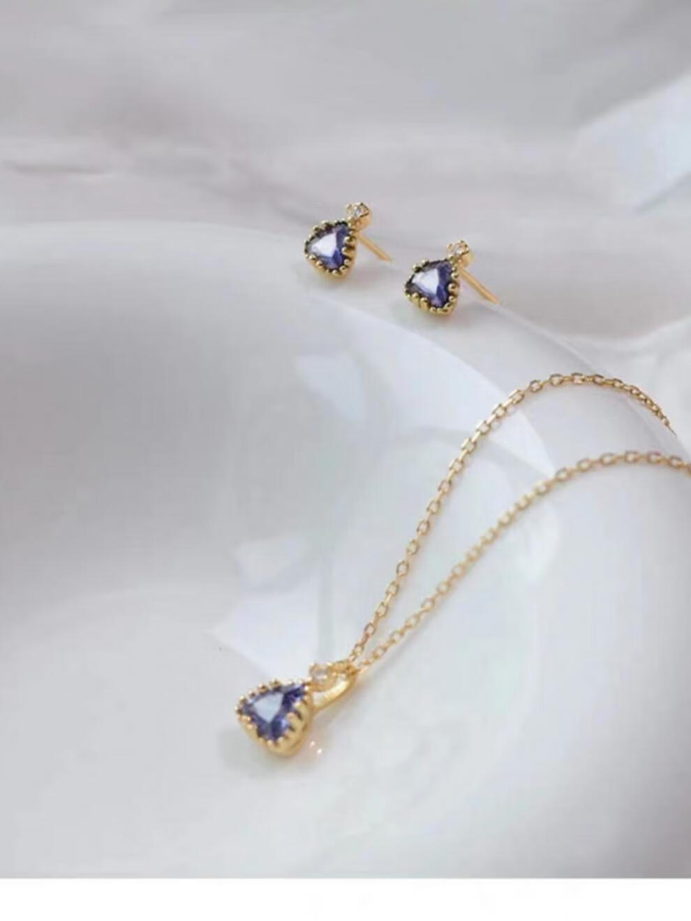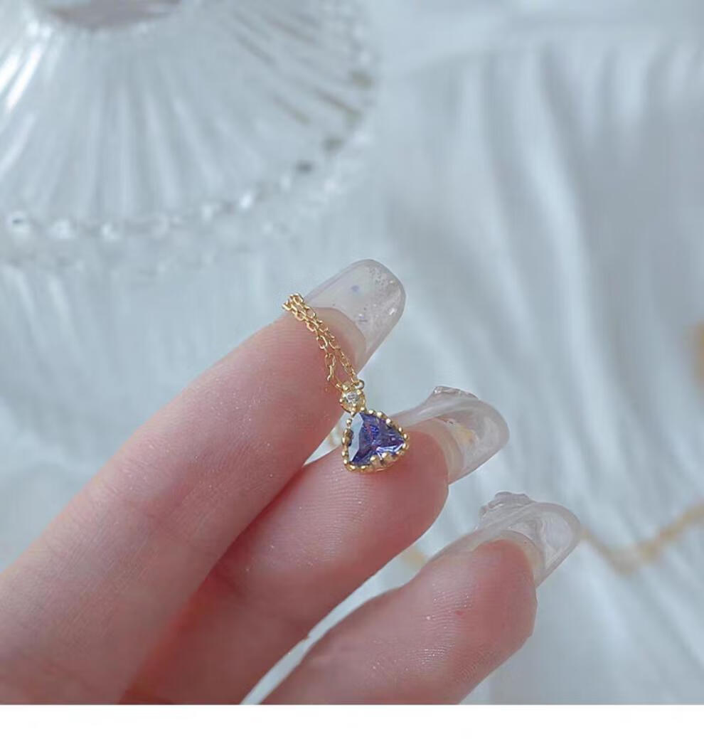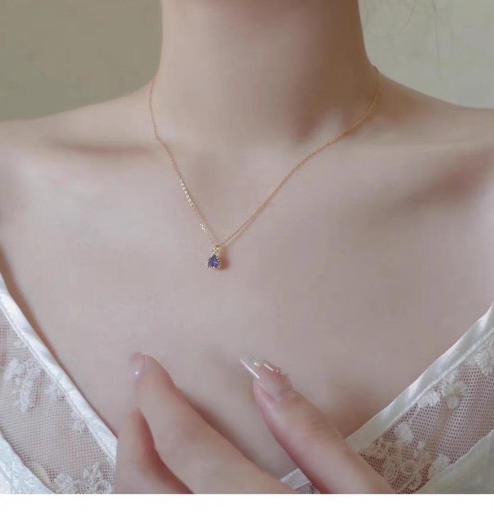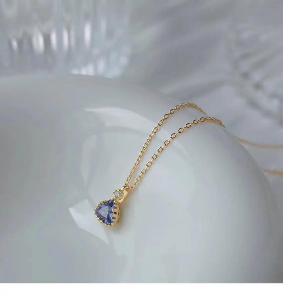 Dunzhu guaranteed price tanzanite 18K gold necklace light luxury amethyst pendant 925 clavicle chain female personality fashion simple tanzanite necklace