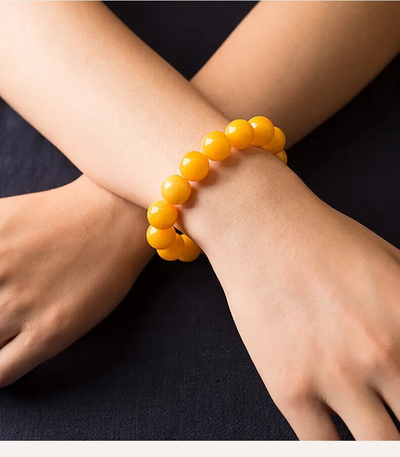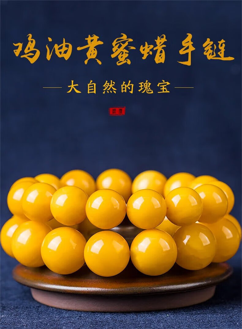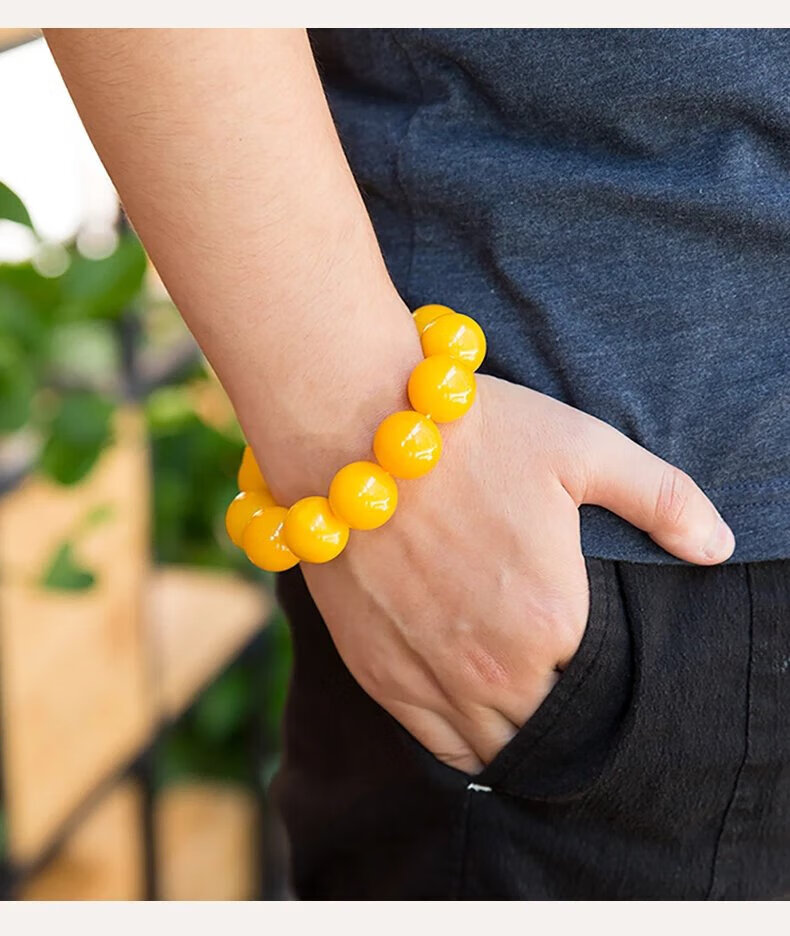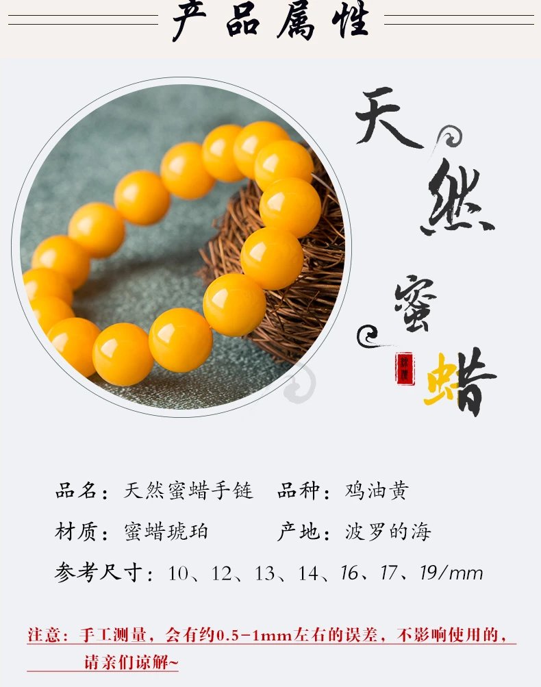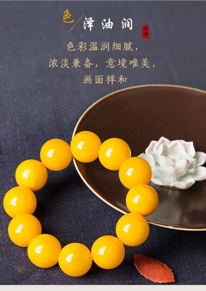 Mussel Beeswax Bracelet Men's Single Circle Chicken Fat Yellow Amber Bracelet Women's Raw Mine Old Honey Round Beads Buddha Beads Valentine's Day Gift Full-Dry Chicken Fat Yellow Old Mi 18.0mm 0g