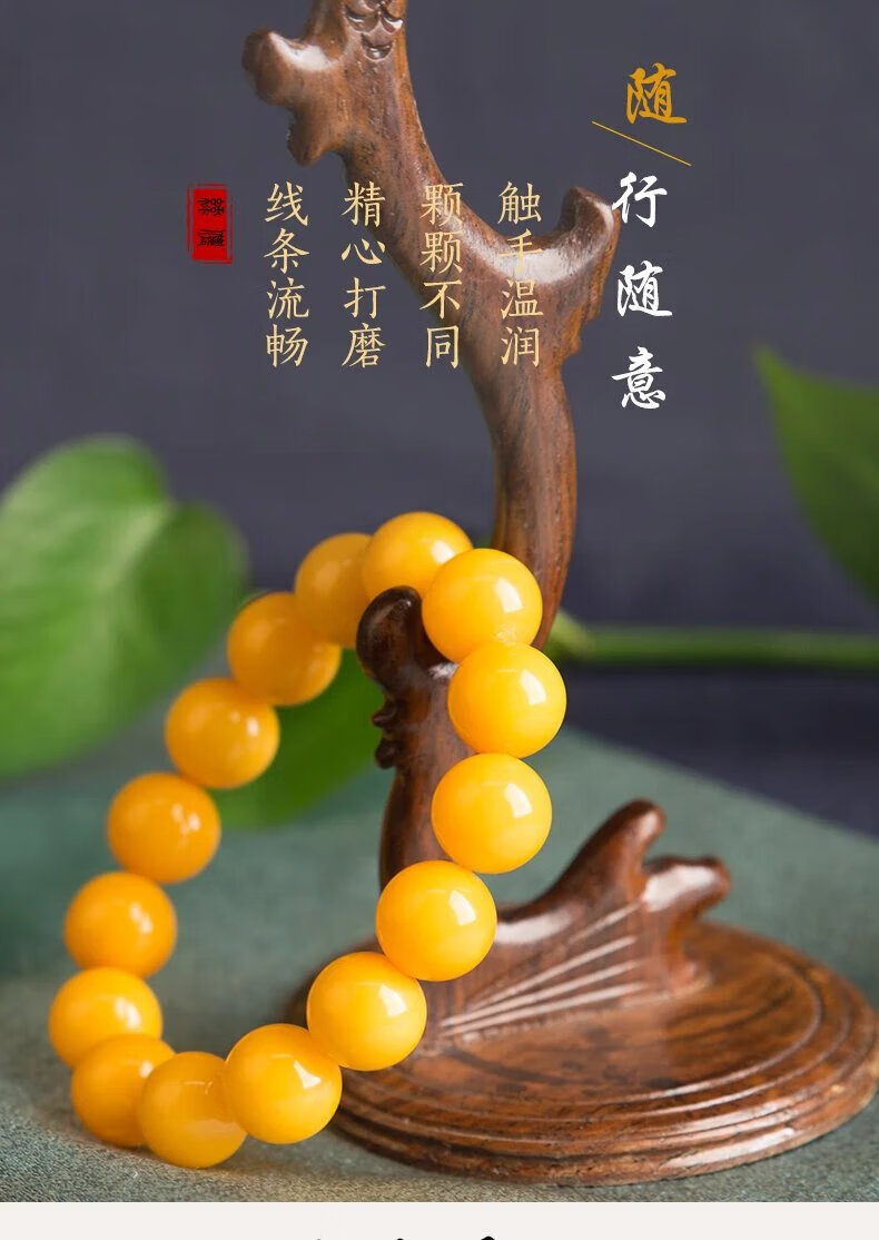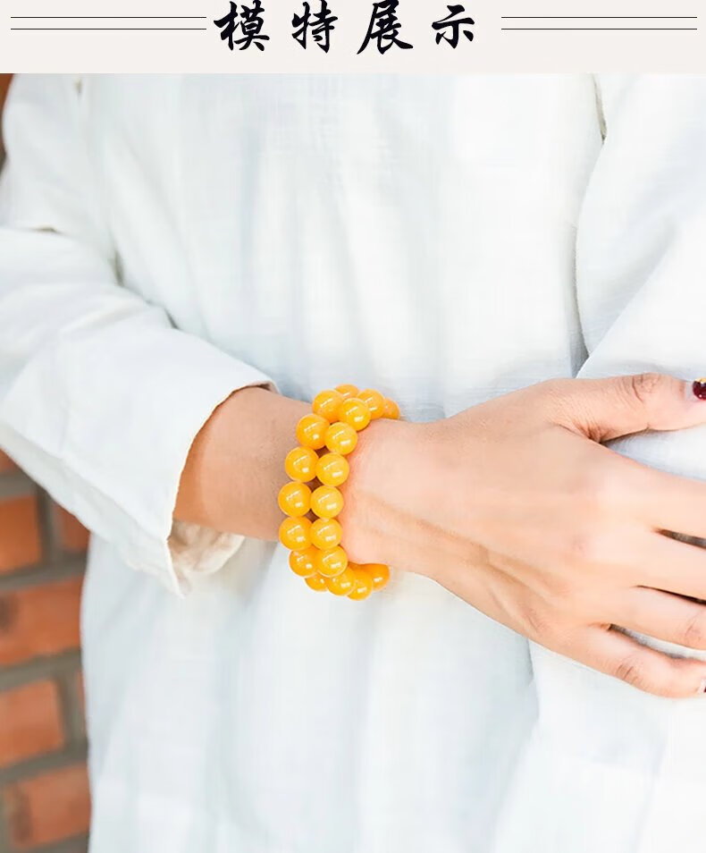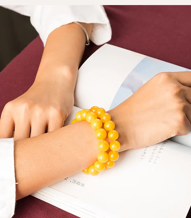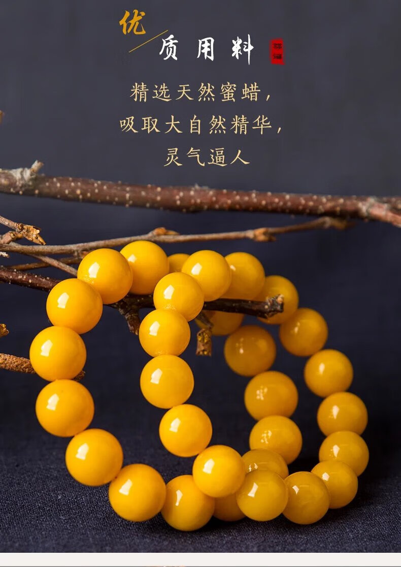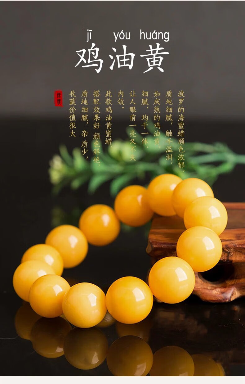 Mussel Beeswax Bracelet Men's Single Circle Chicken Fat Yellow Amber Bracelet Women's Raw Mine Old Honey Round Beads Buddha Beads Valentine's Day Gift Full-Dry Chicken Fat Yellow Old Mi 18.0mm 0g