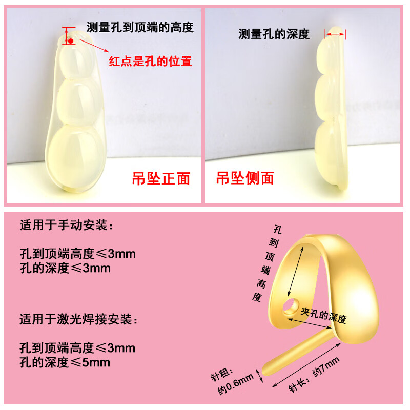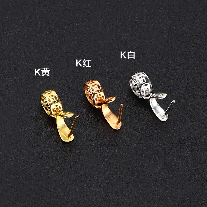 Hande 18k gold copper coin buckle jade buckle head thickened pendant buckle jade pendant necklace clip buckle beeswax DIY accessories seven 18 18K gold ordinary clip_non-slant hole