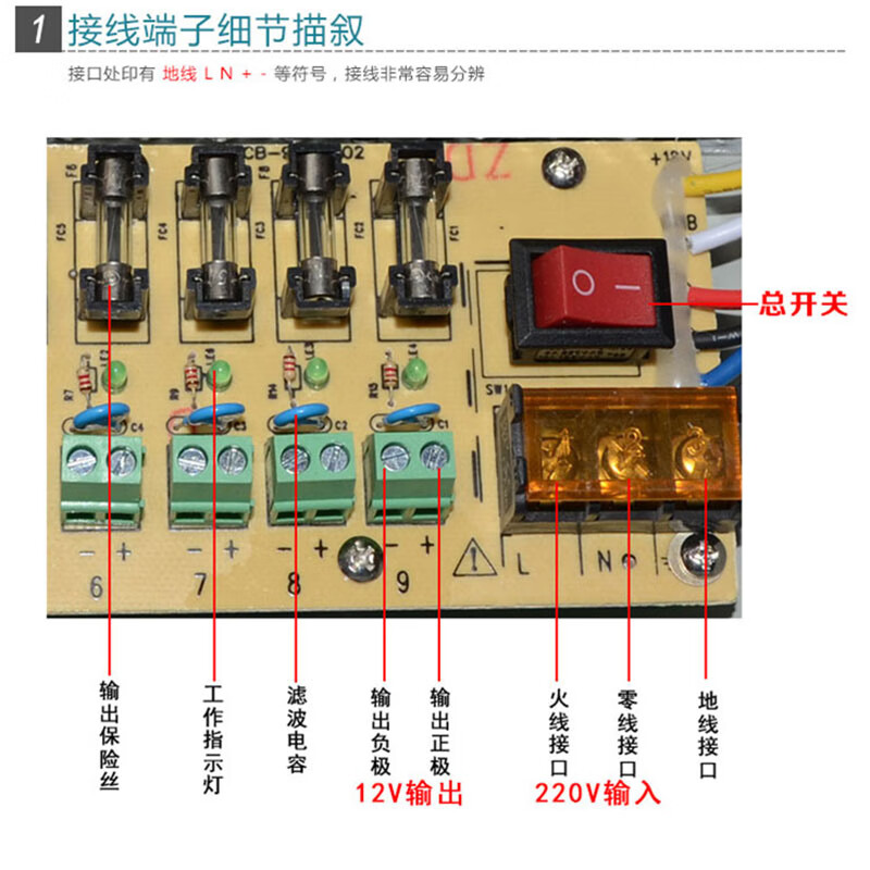 12V10A5A15A20A30A40A 18-channel surveillance camera centralized power supply insurance 9-channel switching power supply box