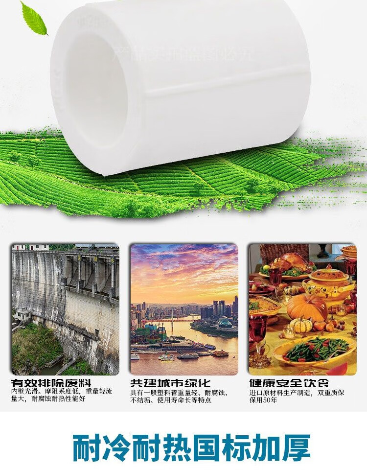 Customized suitable for PPR equal diameter direct bundled pipe ancient 20 4 minutes 25 6 minutes 321 inch PPR water pipe pipe material adaptation Thickened 40mm 1.2 inch equal diameter