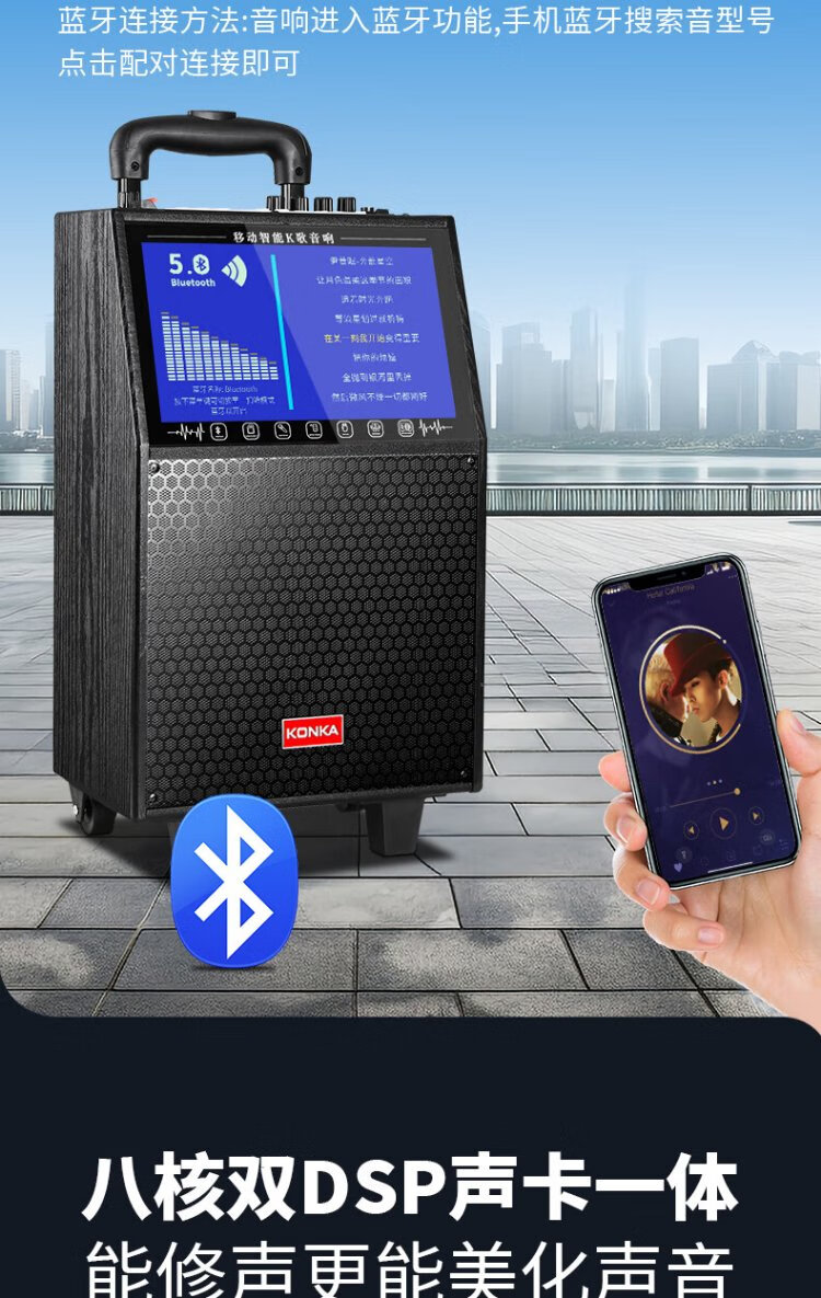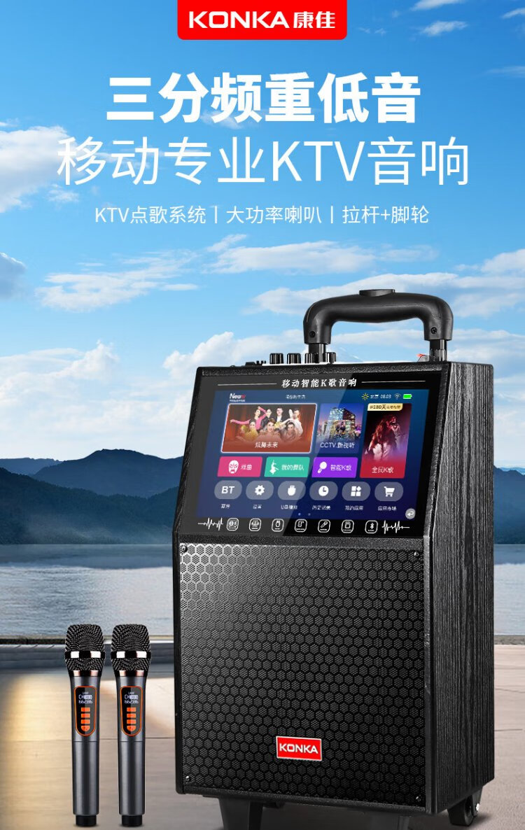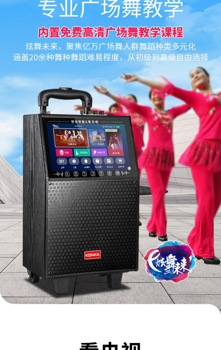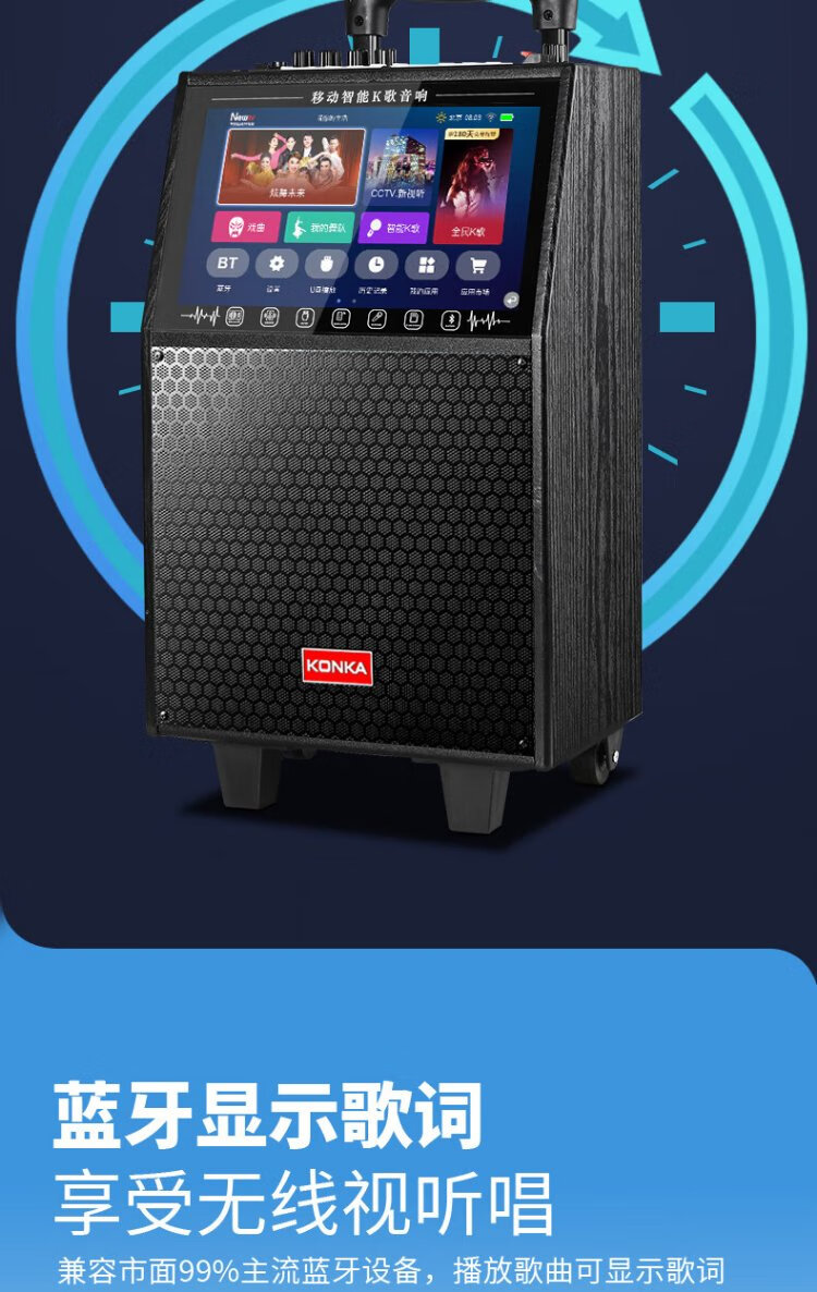 Konka square dance audio with display screen wireless microphone high volume home KTV singing live broadcast karaoke karaoke machine Bluetooth all-in-one video outdoor mobile trolley speaker 20-inch Bluetooth version + 1 microphone