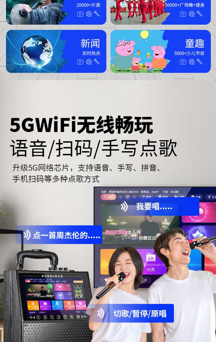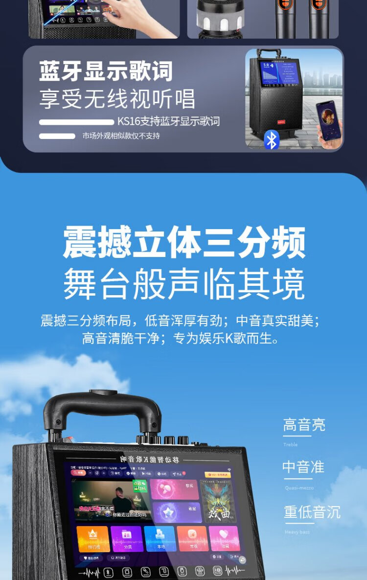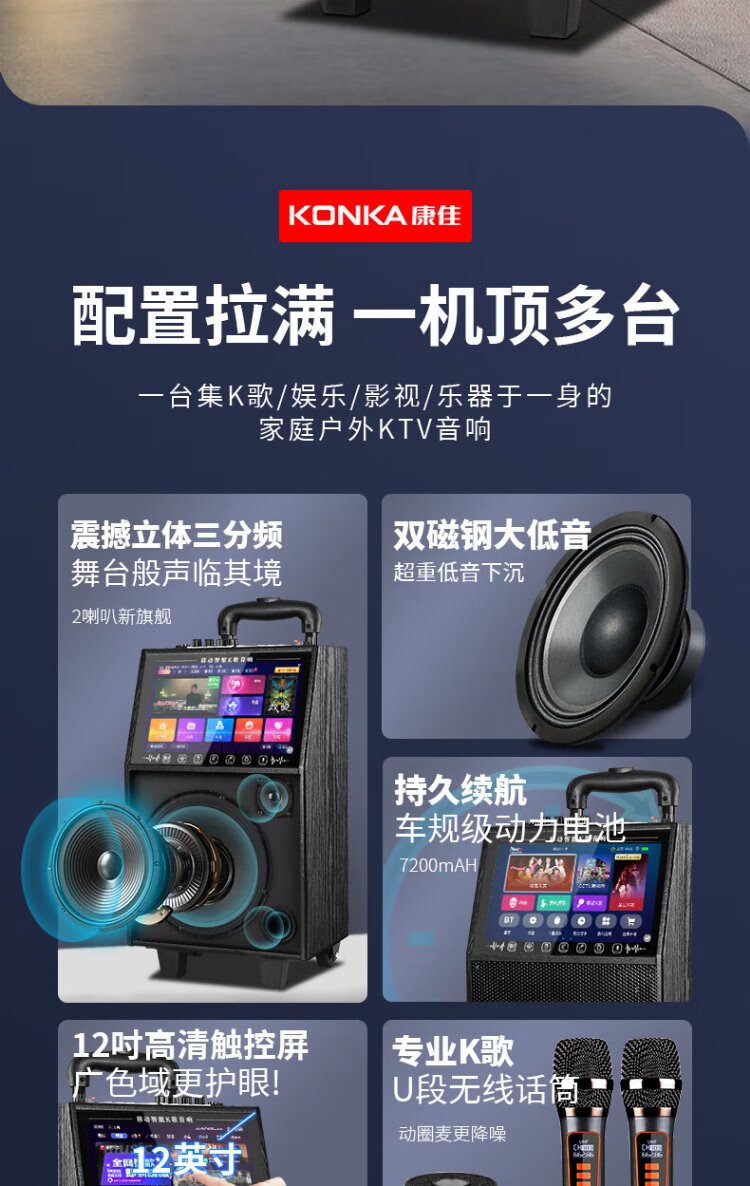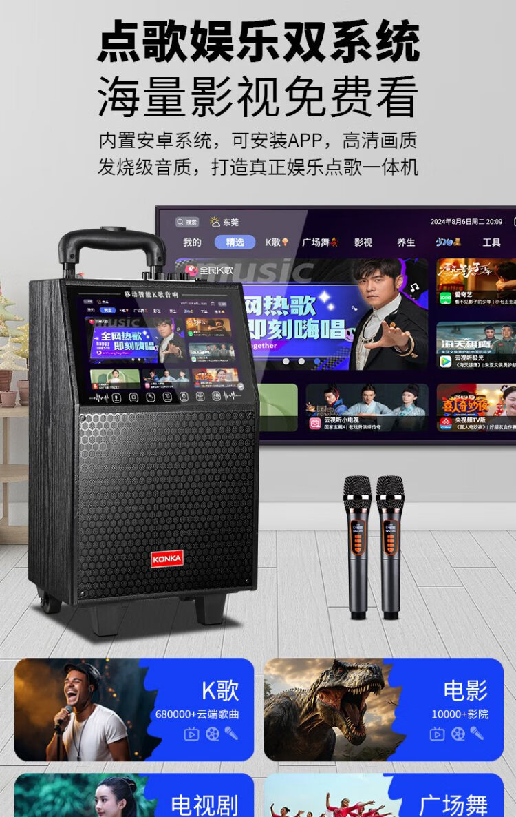 Konka square dance audio with display screen wireless microphone high volume home KTV singing live broadcast karaoke karaoke machine Bluetooth all-in-one video outdoor mobile trolley speaker 20-inch Bluetooth version + 1 microphone