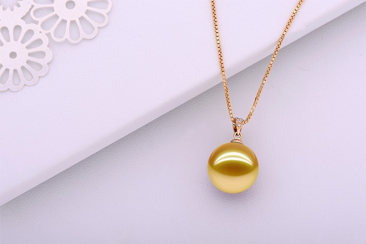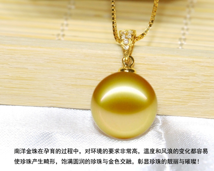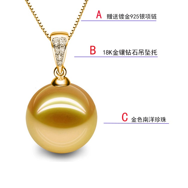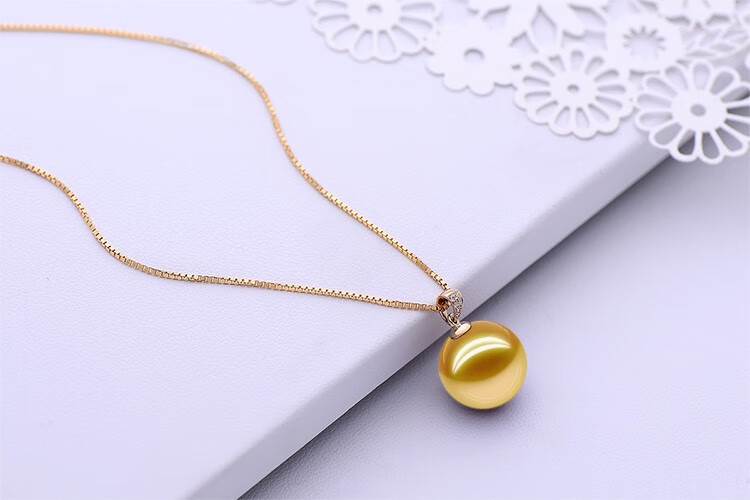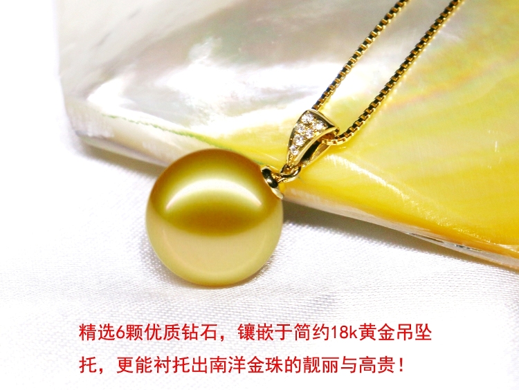 Drops of water form pearls. Nanzhu family Nanyang gold bead pendant 18k gold inlaid with diamonds, gold seawater pearls, light luxury and elegant, gift to mother 9.0-10.0mm