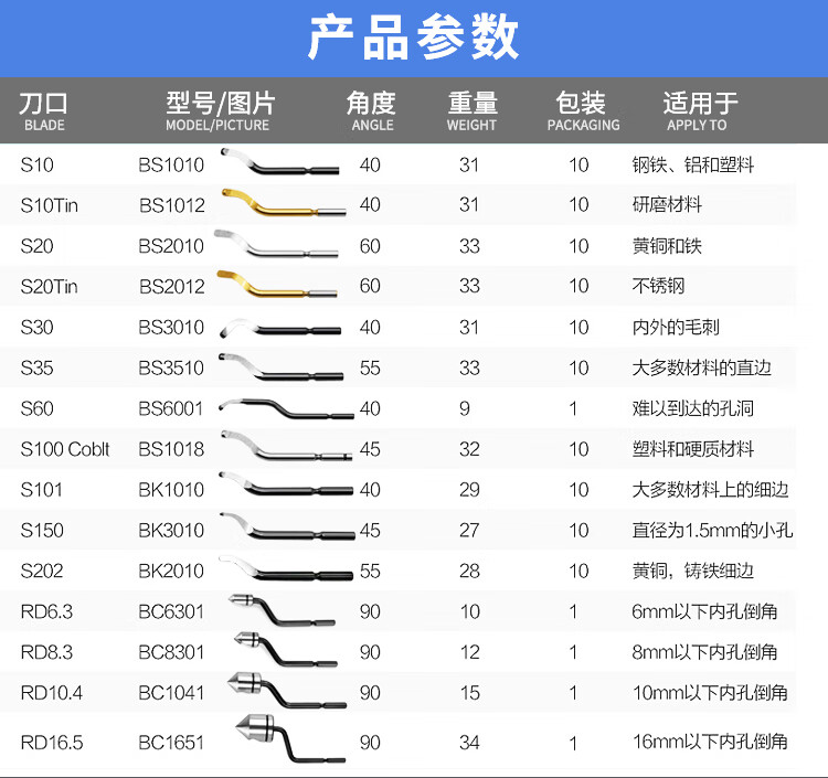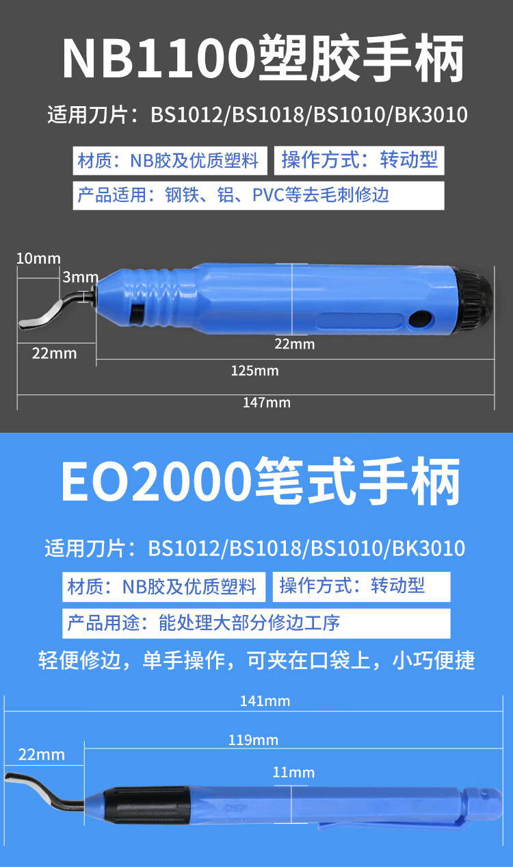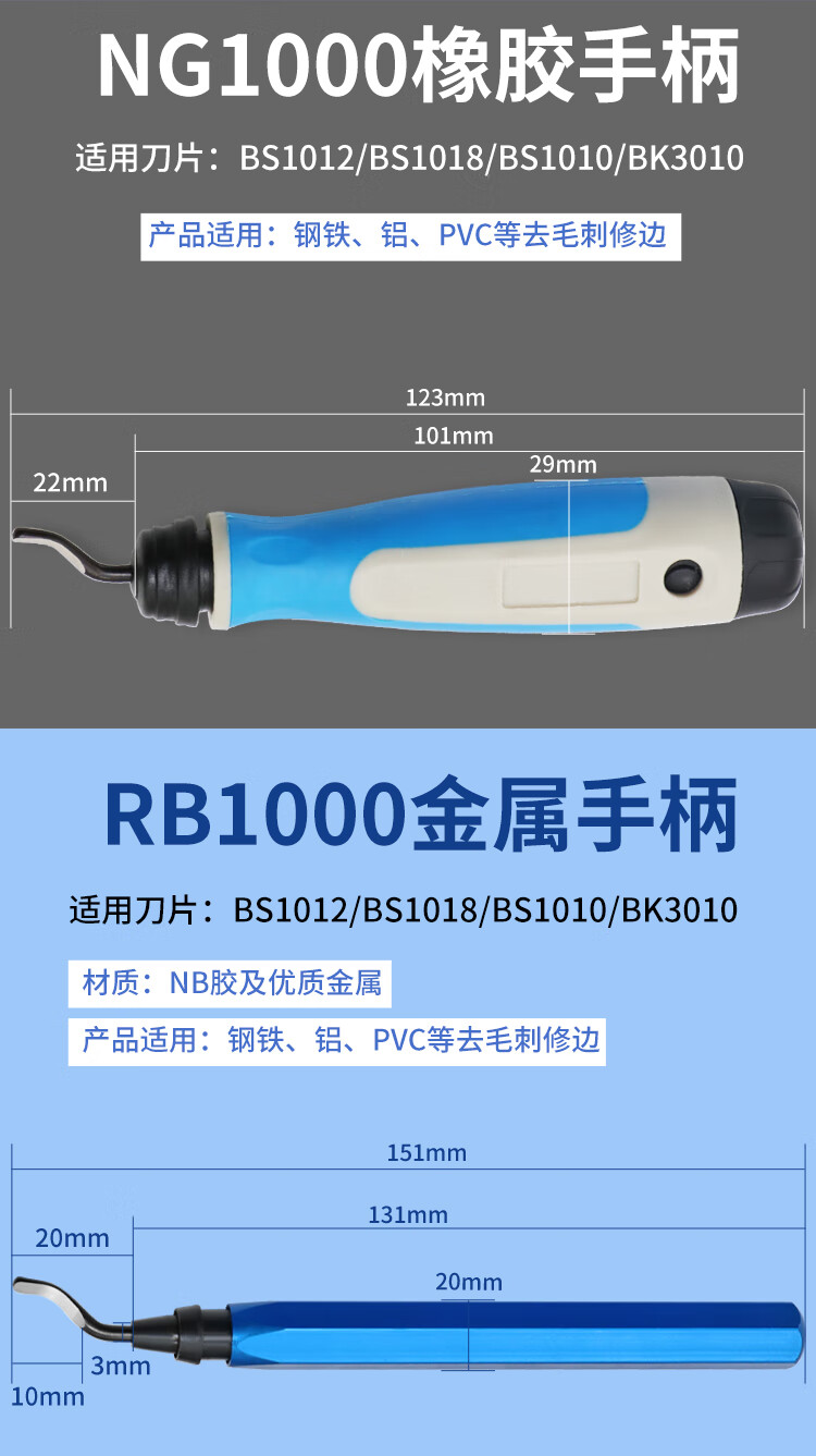 Скребок для удаления заусенцев BS1010, ручное снятие фаски с внутреннего отверстия, пластиковое лезвие из нержавеющей стали BK3010, металлическая ручка RB1000