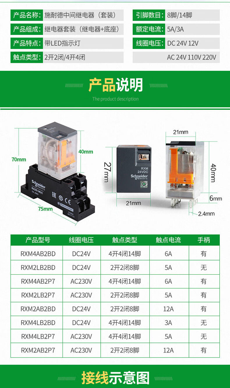 RXM intermediate relay RXM2LB2BD 2AB 4LB2BD 2AB2P7 power Schneider small universal electromagnetic RXM2AB2P7 AC230V 8-pin relay