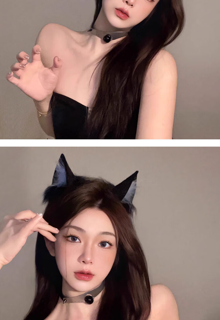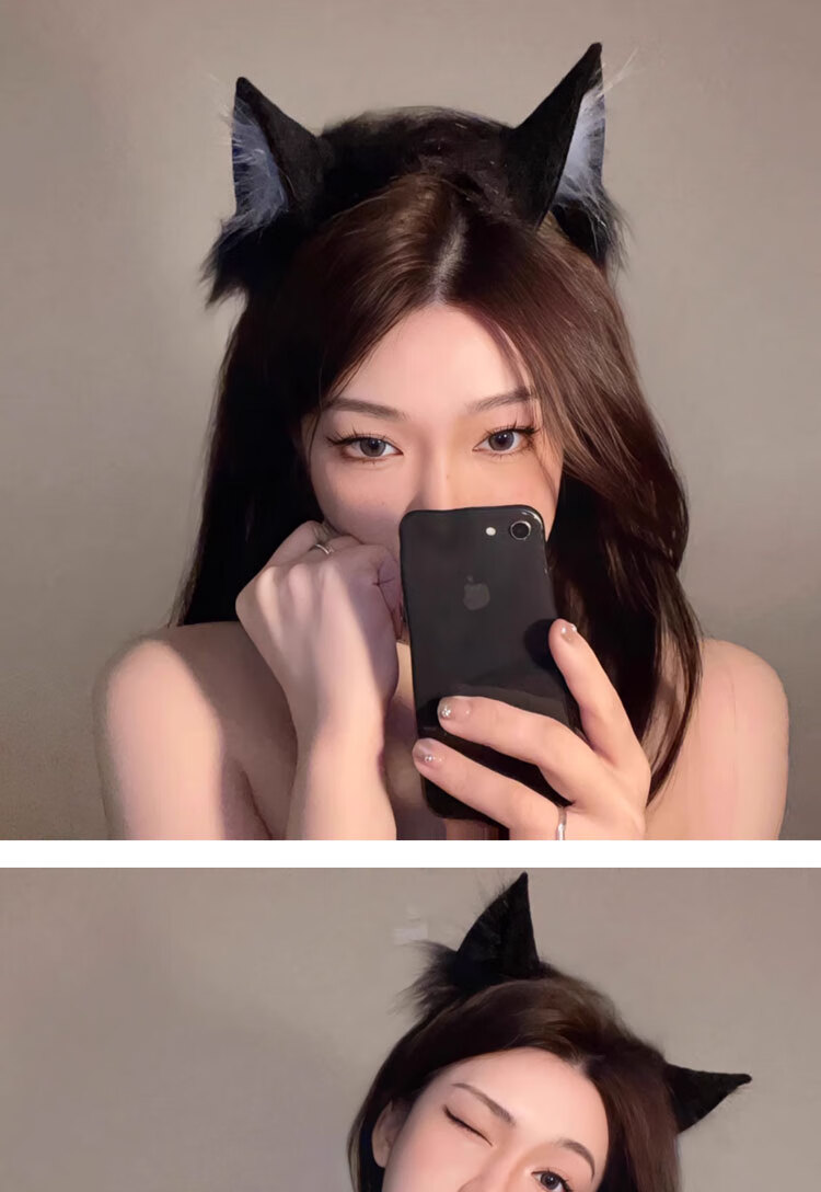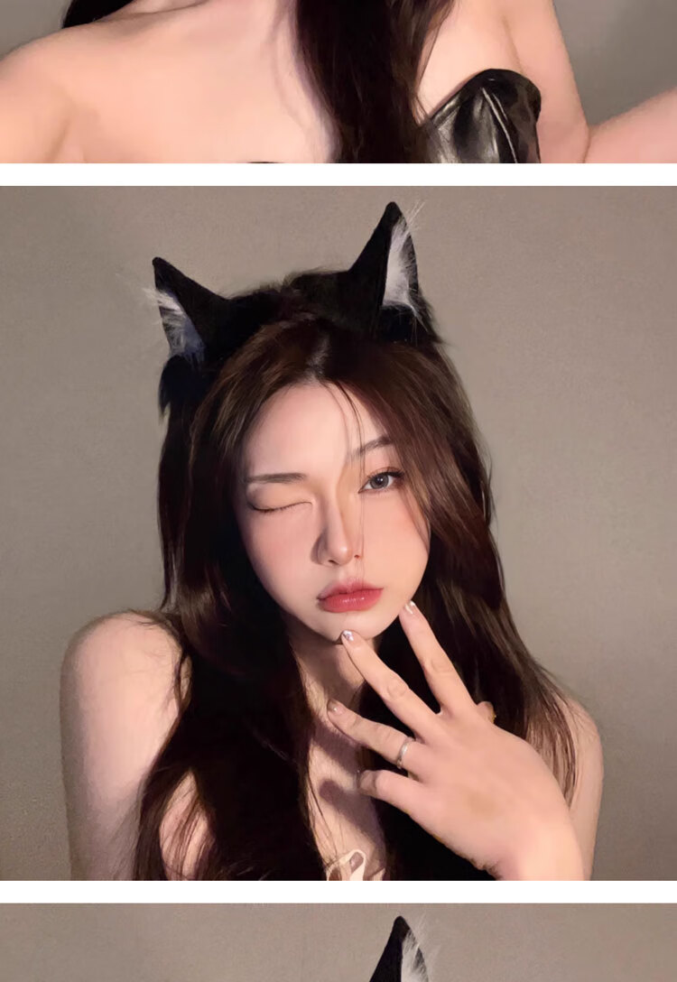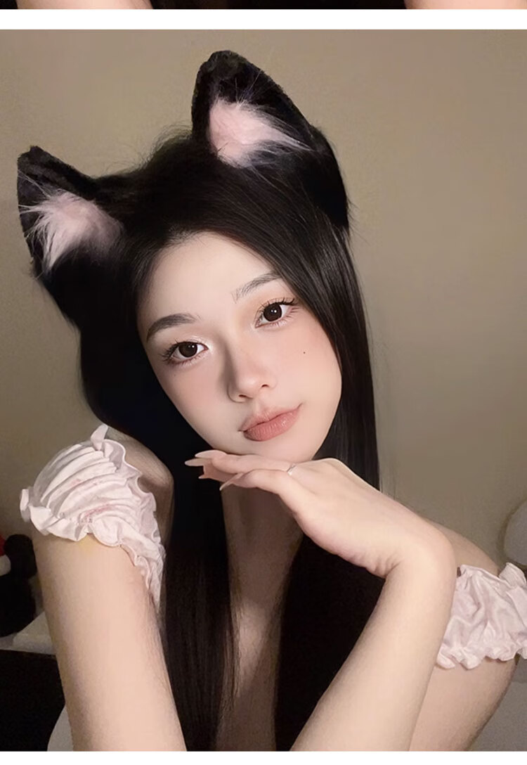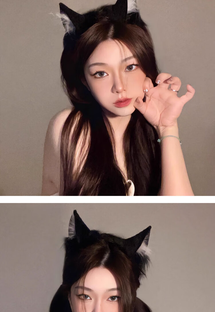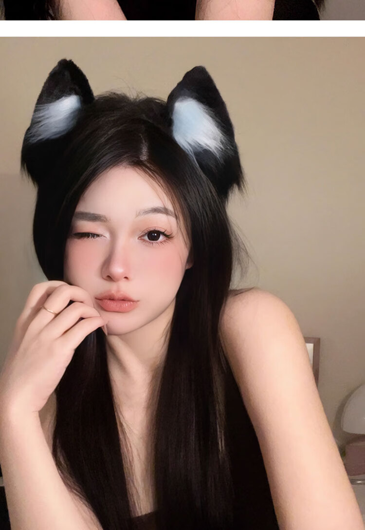 Man Sheng Cat Ears Headband Hairband Cute Plush Hair Accessories Dress Up Hairpin Valentine's Day Animal Ear Hairpin Lolita Headband Black and White Cat Girl Hairband