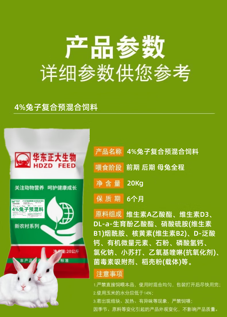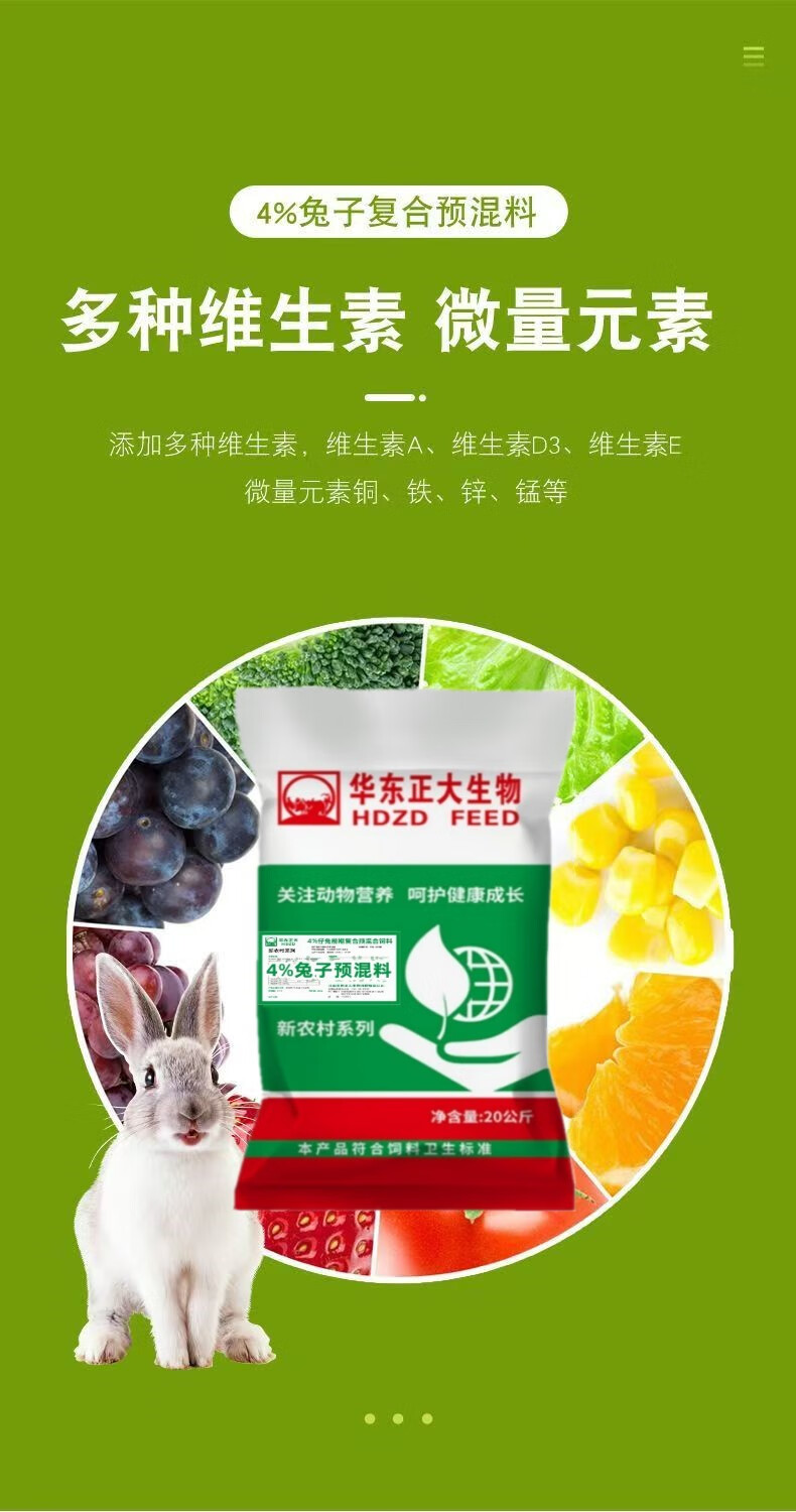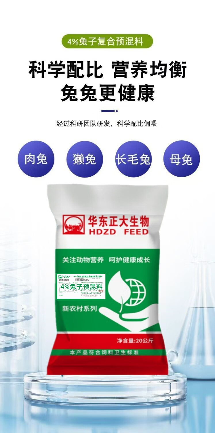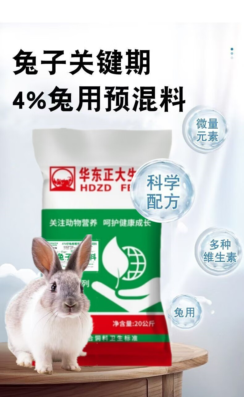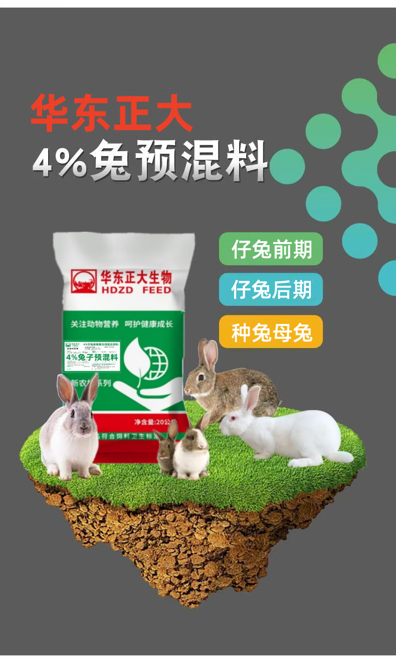 East China Zhengda 4% rabbit premix, baby rabbits, meat rabbits, fattening rabbits, female rabbits, rabbit feed rabbit premix, 1 bag of rabbits in the early stage (starting food - 50 days old)