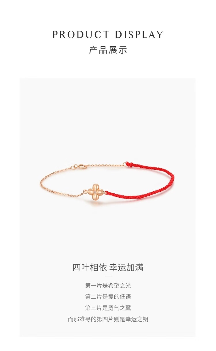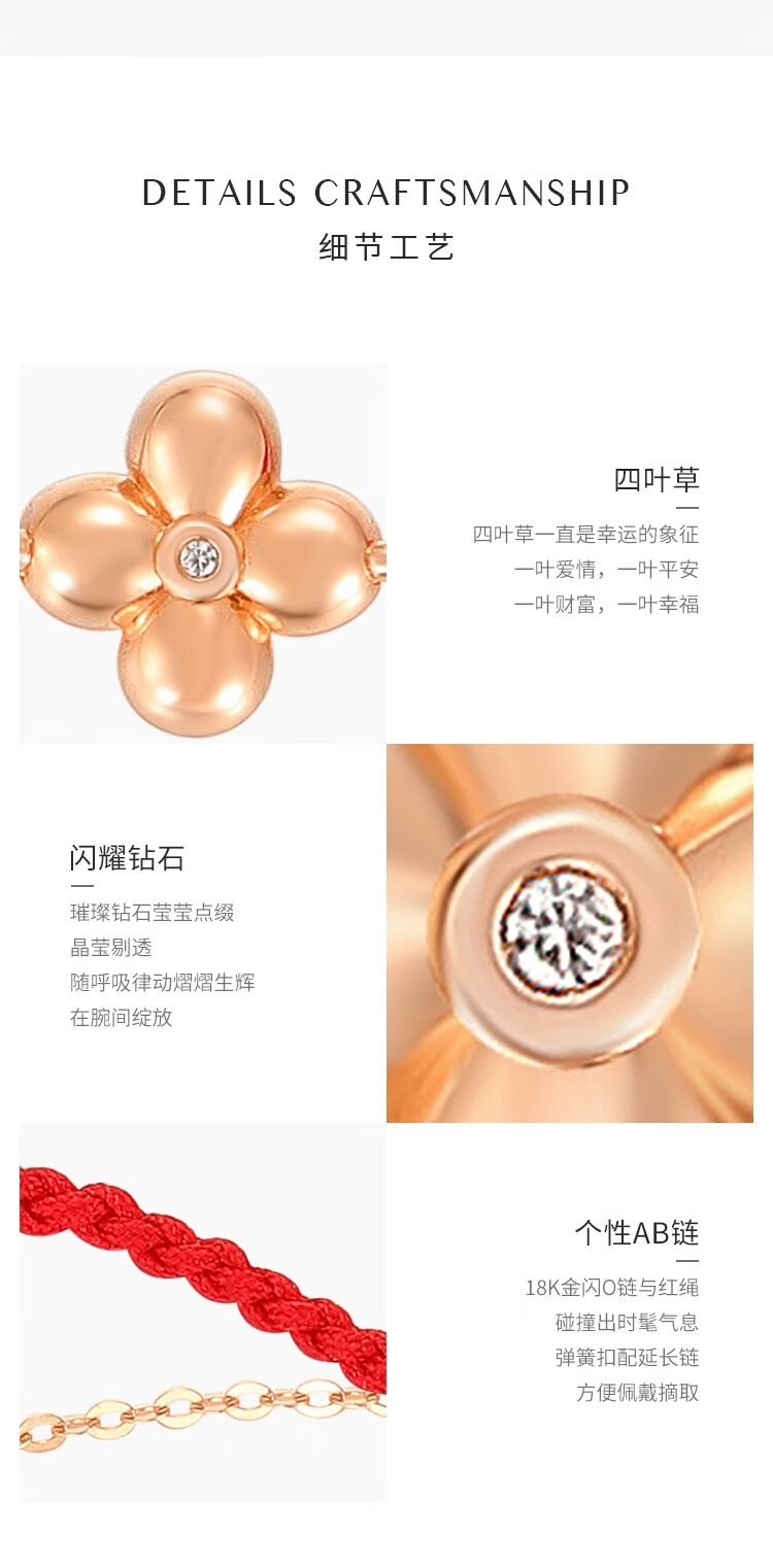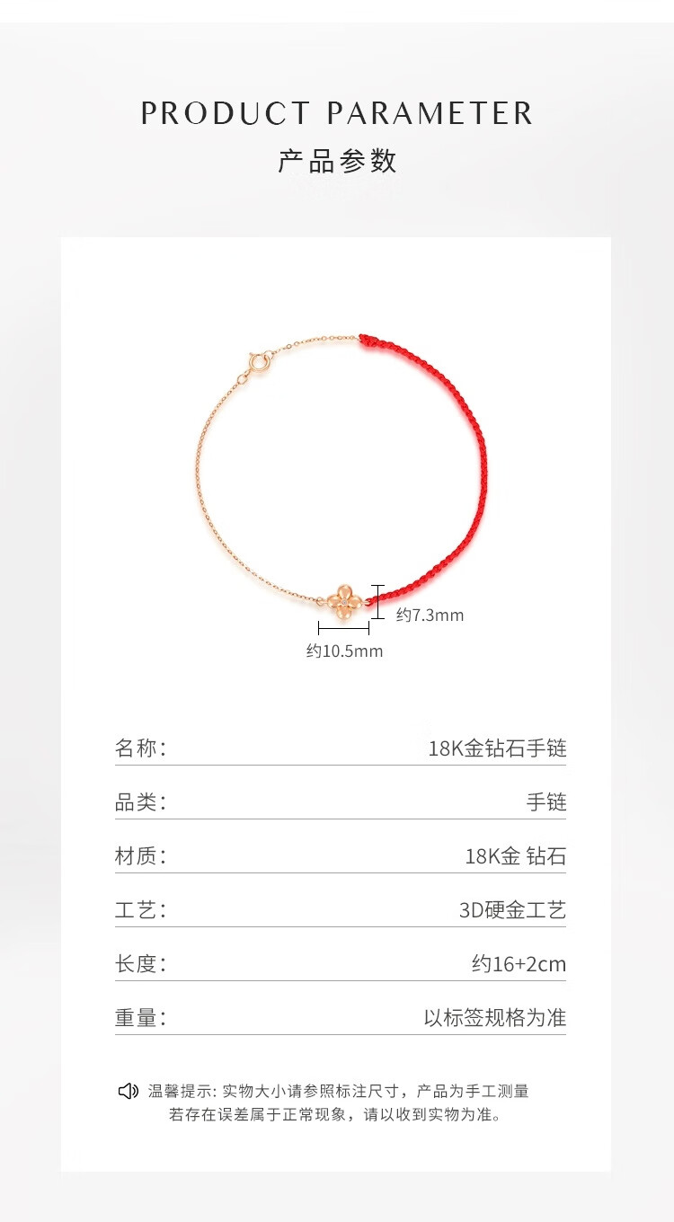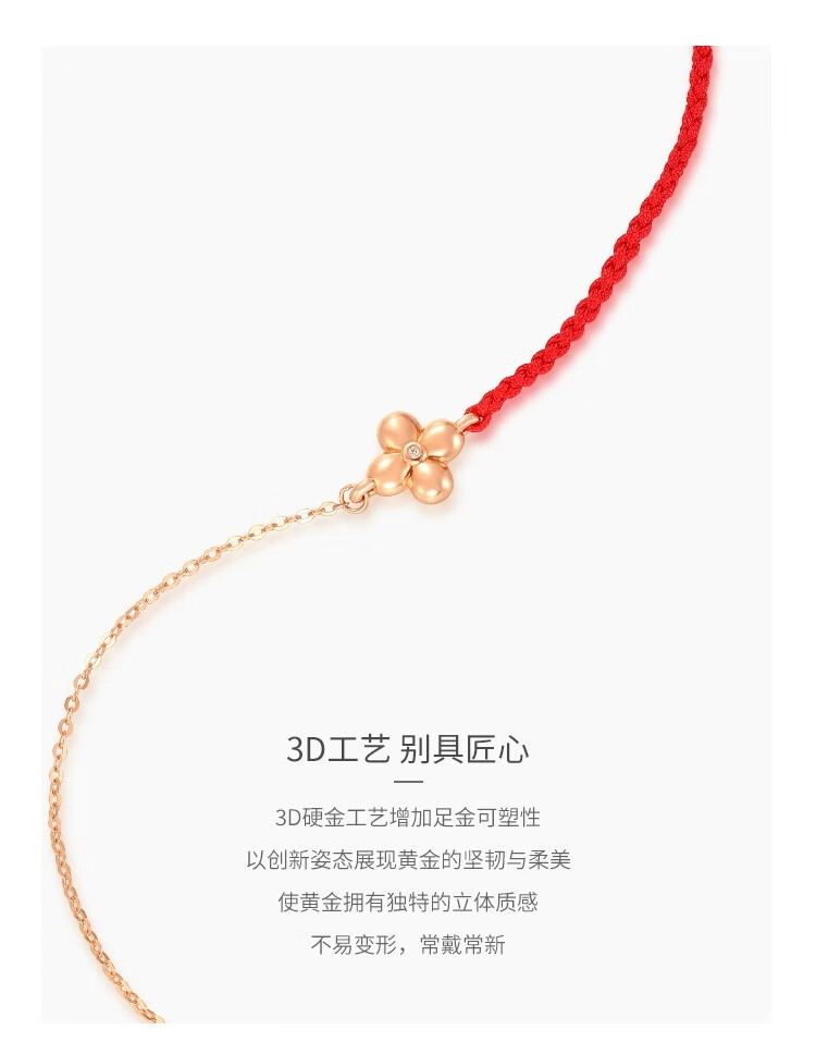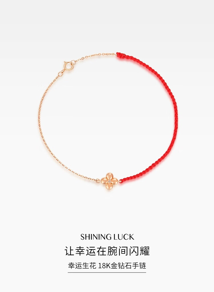 Caizhi 18k gold diamond inlaid bracelet lucky flower 3D flower bracelet red rope gift 18k gold diamond bracelet