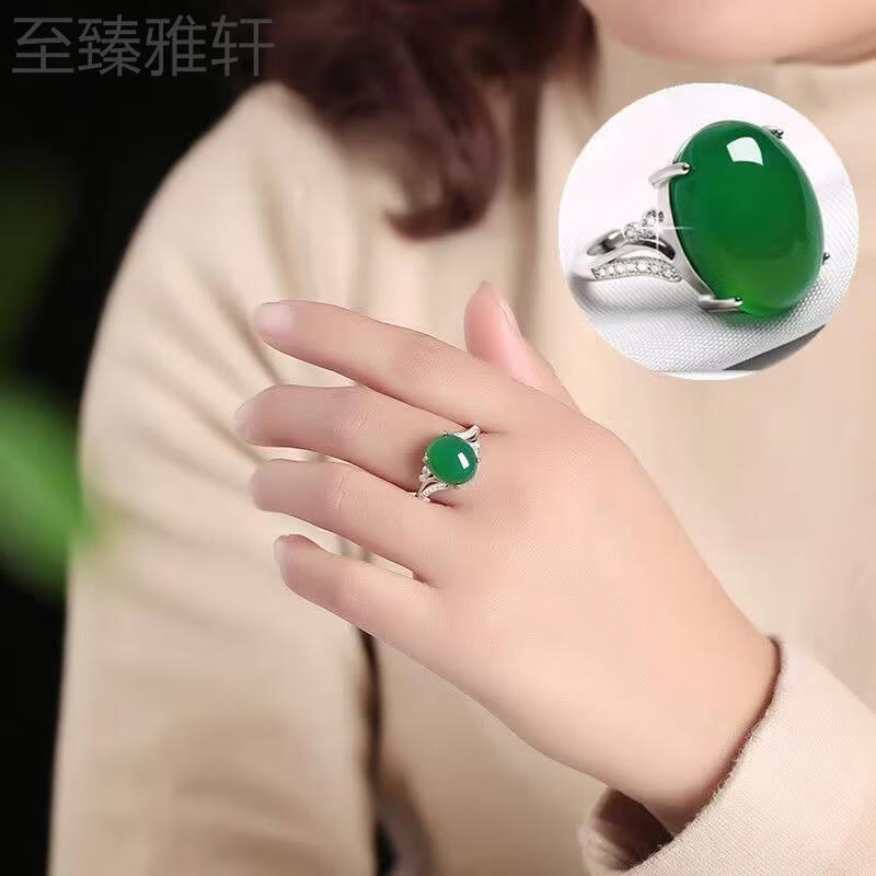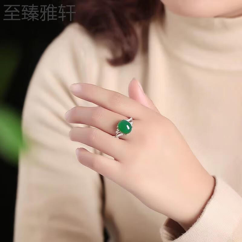 Mi Yan S999 Silver Ring Women's Chrysoprase Agate Fashionable Silver Open Ring as a Gift for Mom 999 Silver Jade Ring About 3 Grams