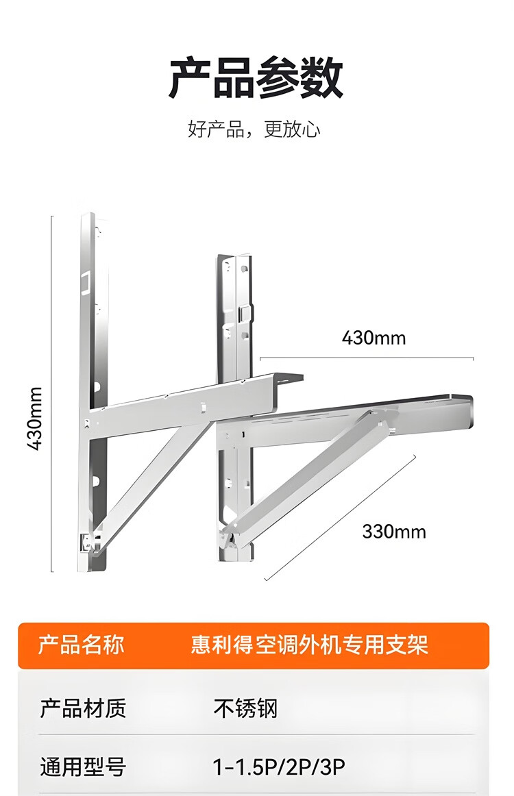 Huili's thickened stainless steel air conditioner outdoor unit bracket stainless steel air conditioner bracket air conditioner rack 304 material stainless steel air conditioner bracket external unit rack 201 double grinding tripod 1-1.5 HP 1.3 thick