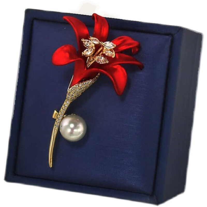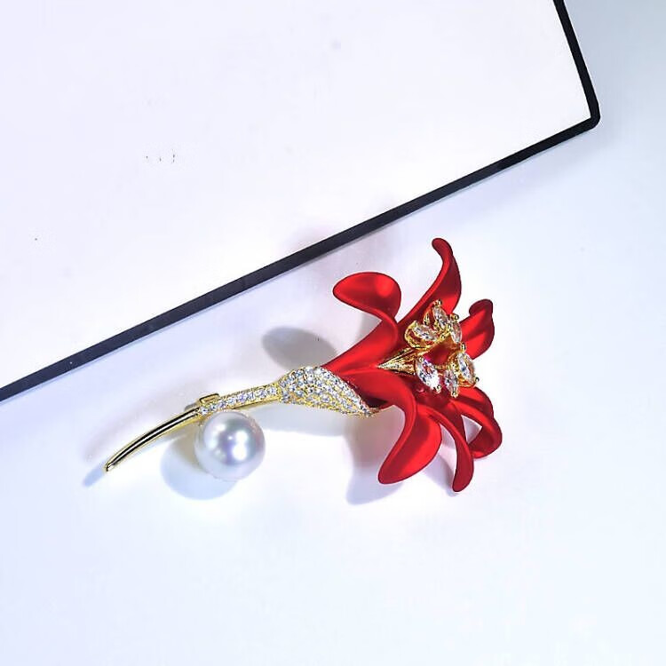 QUAMER gold store style red rose brooch, high-end women's 2024 new fashion, personality, temperament, small fragrant breast, lily red flower