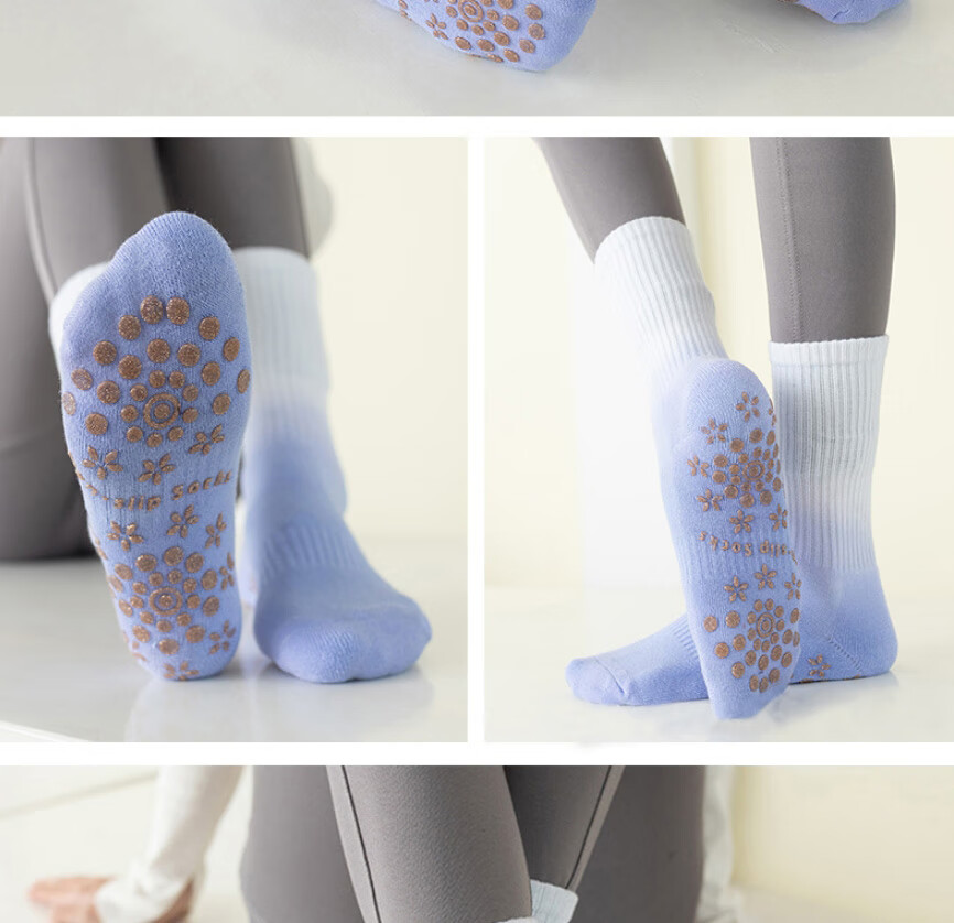 Huodiniao autumn and winter yoga socks non-slip professional women's adult indoor mid-calf Pilates socks fitness exercise aerobics floor socks optional 3 pairs color contact customer service notes