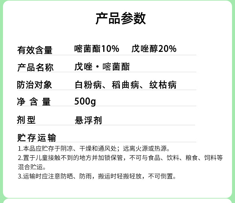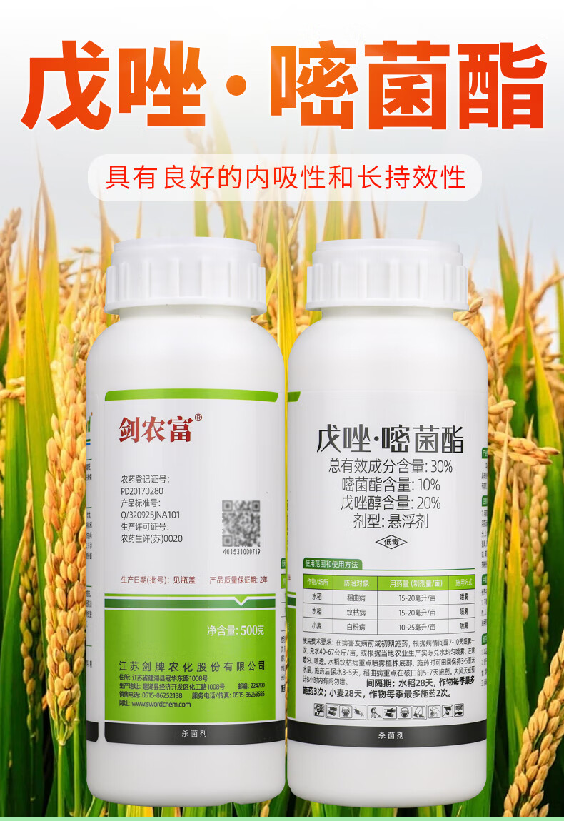 Jianpai tebuconazole azoxystrobin, wheat, rice powdery mildew, sheath blight, rice smut, anthracnose, rust pesticide and fungicide 500g
