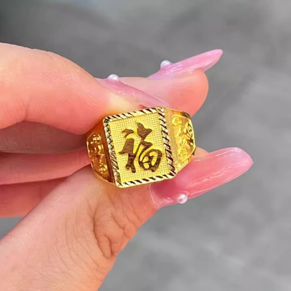 Luxury name gold-wrapped and silver-wrapped men's blessing gold ring 999 pure gold and silver to attract wealth, the opening of the ring can be adjusted, a gift for dad, small blessing ring filled with 1.2 grams of gold