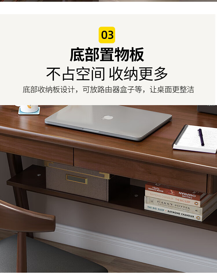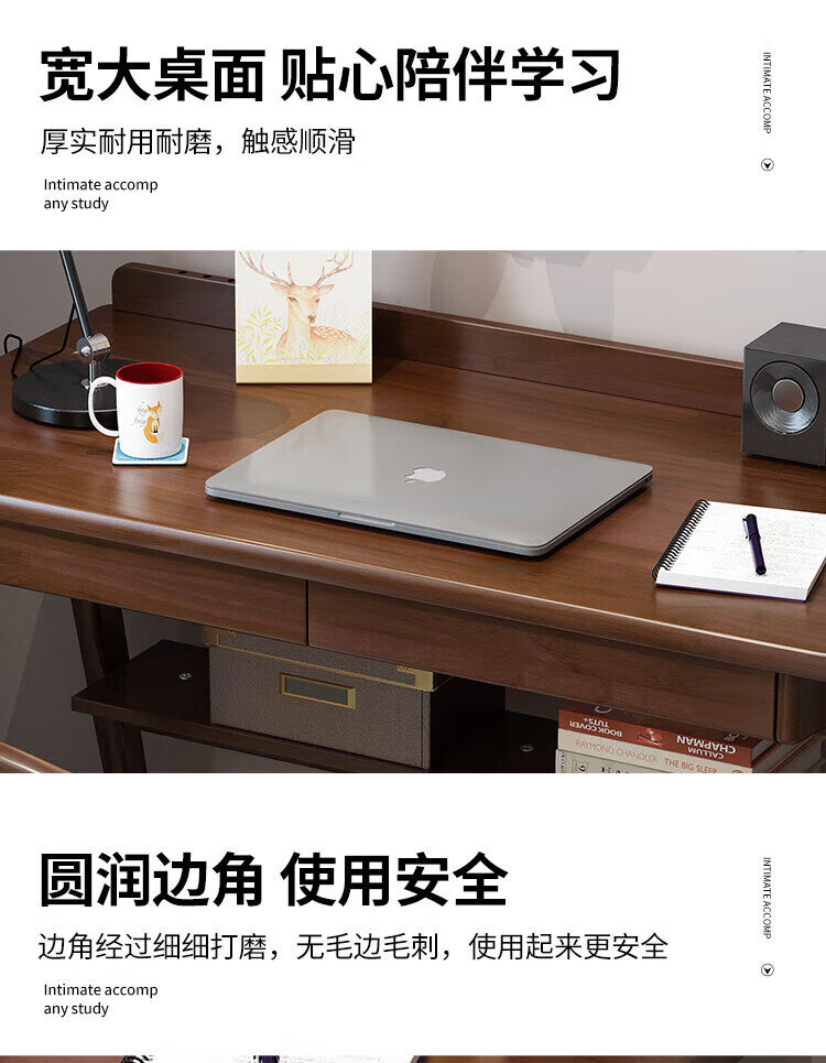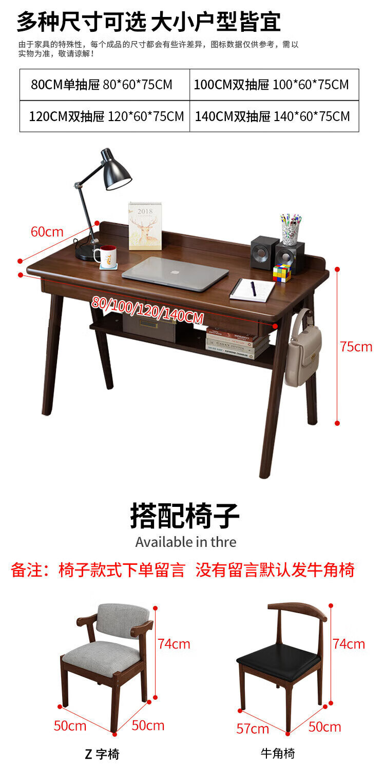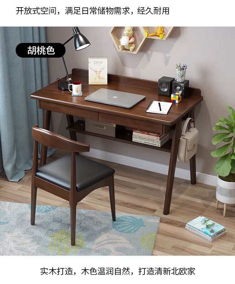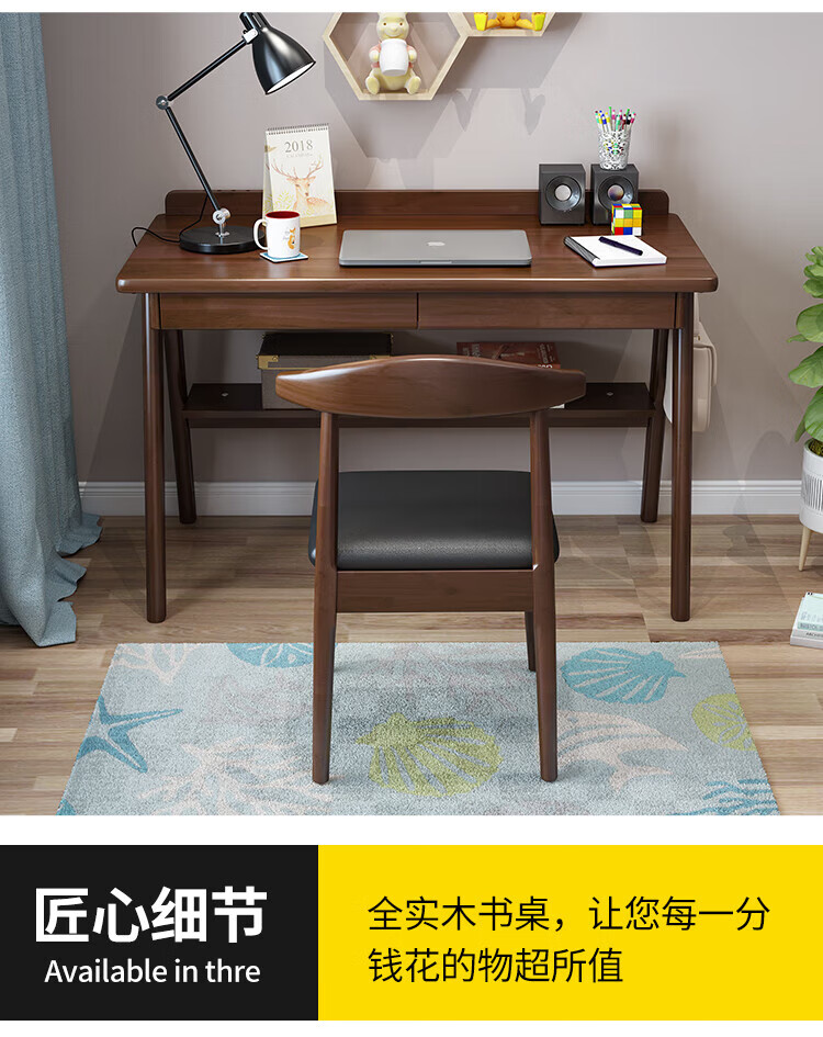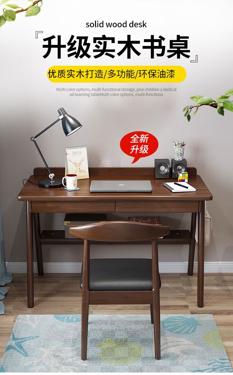 Zhengmu Feng SF Sufa all solid wood desk learning writing table student adult desktop computer table and chair set walnut color single table + horn chair environmentally friendly paint 100*60*75cm