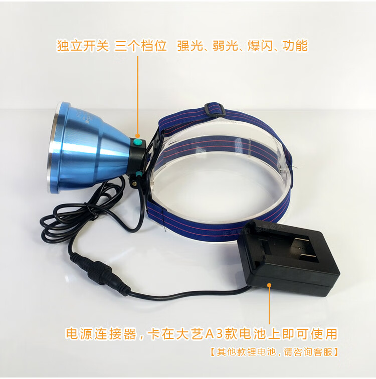 The headlight is suitable for lithium battery A3 model head-mounted emergency light yellow light spotlight long beam USB Dayi A6 A7 model please contact customer service for customization