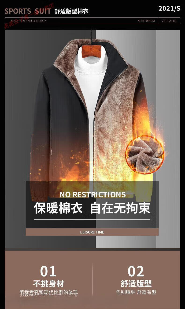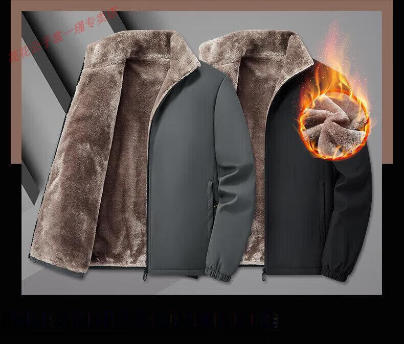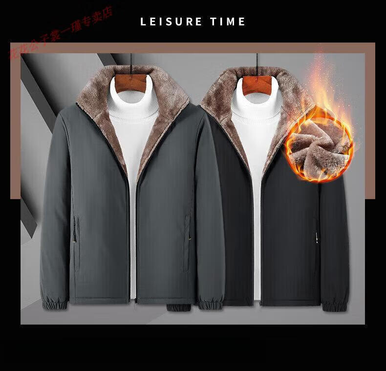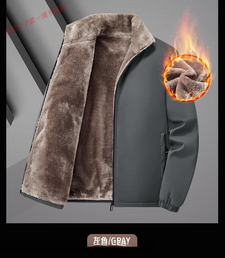 Playboy Brand Men's Clothing Dad's Clothing 2025 New Autumn and Winter Clothes Cotton Jackets Casual Velvet Thickened Clothes for the Elderly Gray L