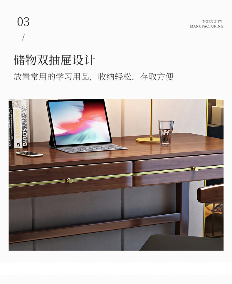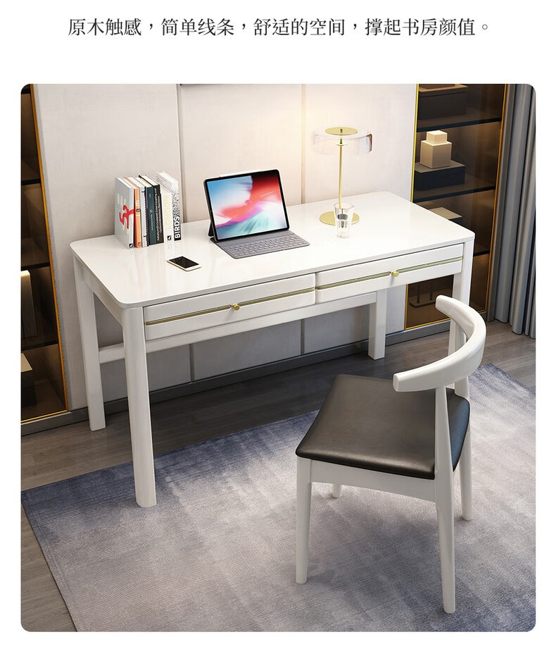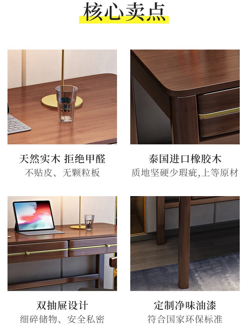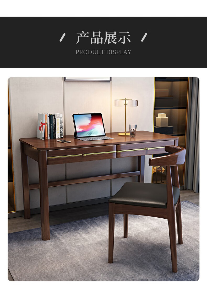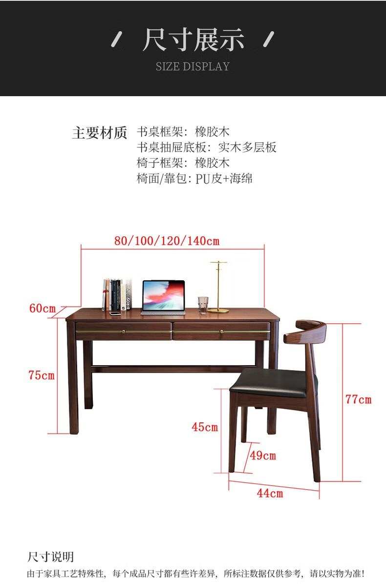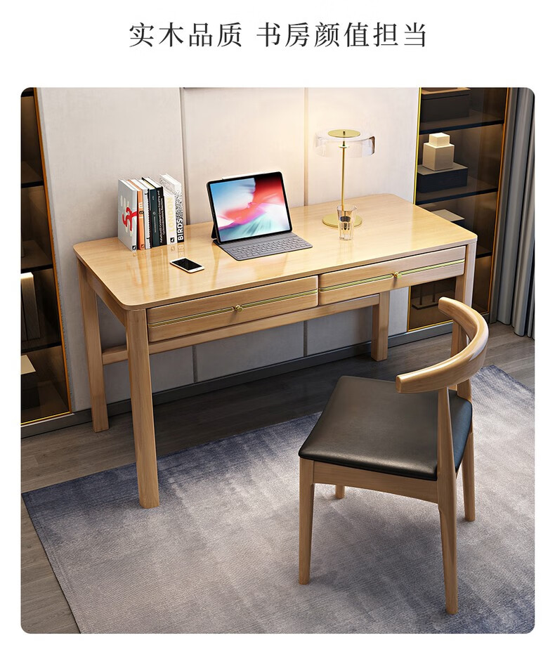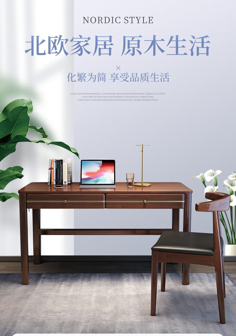 MUYESIYU is in stock quickly. Nordic solid wood computer desk, student study desk, home minimalist light luxury desk, walnut color - solid wood single table 120*60*75cm, double drawers