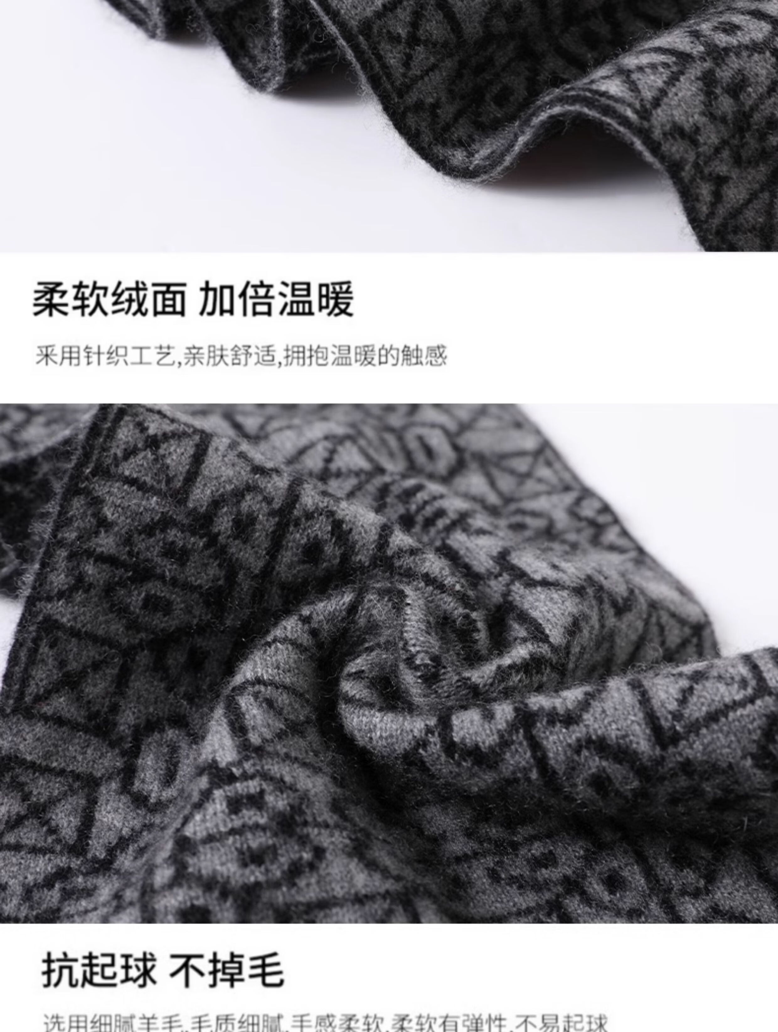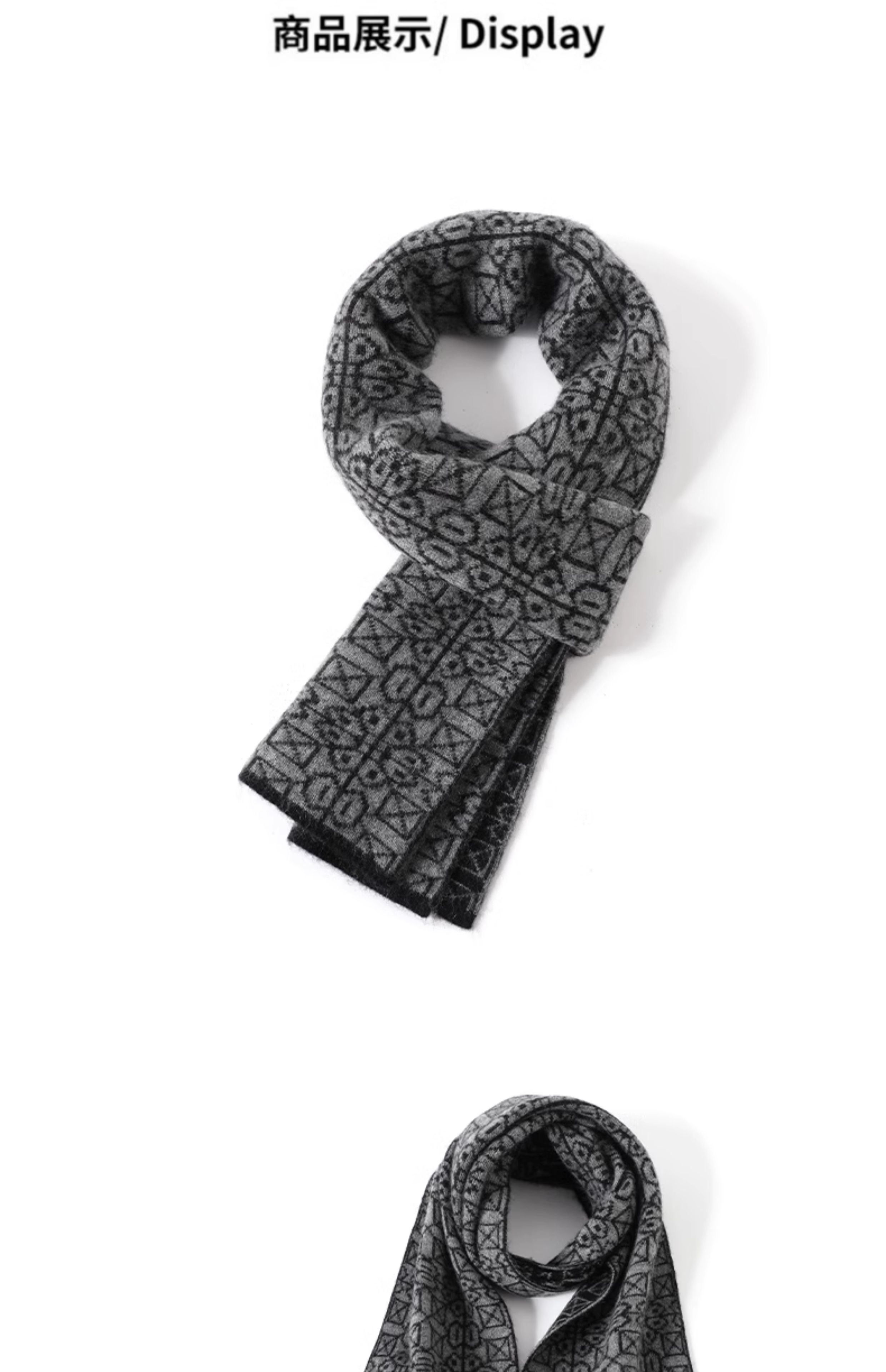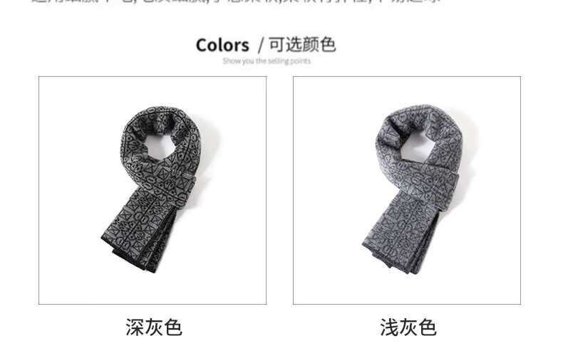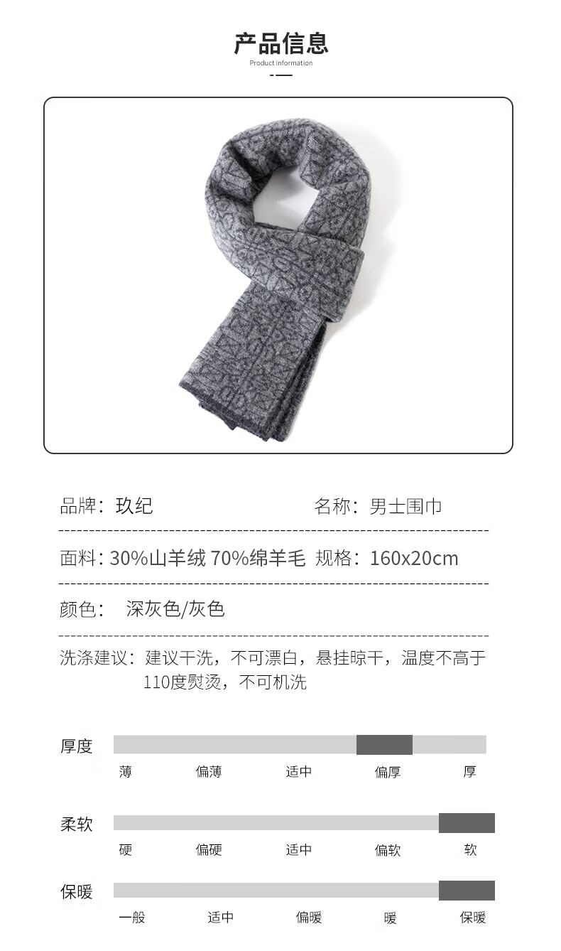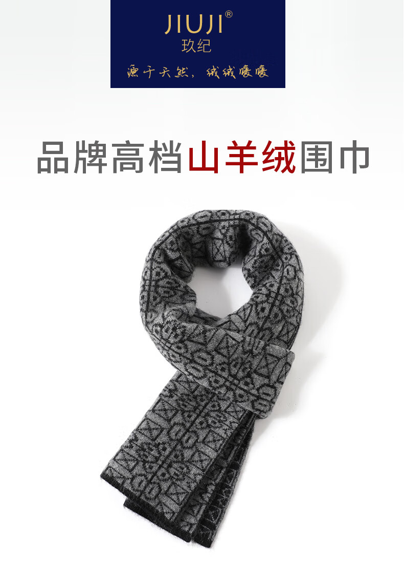 JIUJI scarf men's cashmere short fashion casual warm small scarf thickened windproof student gift box high-end light gray (short style)