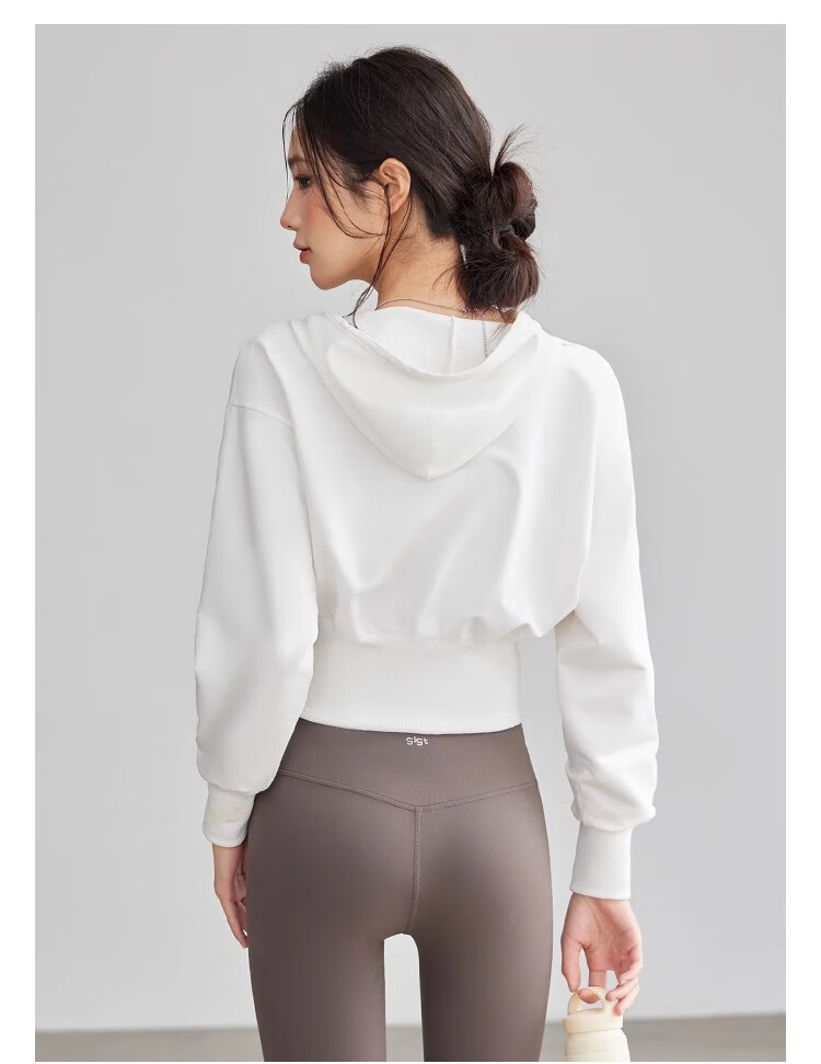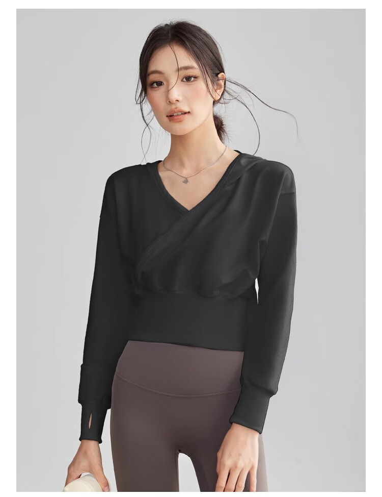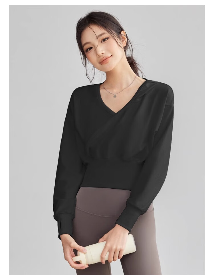 Youyou yoga wear women's long-sleeved waist slimming quick-drying sports top Pilates hooded fitness sweatshirt J34018Y black top XL recommended 130-145 Jin Jin equals 0.5 kg