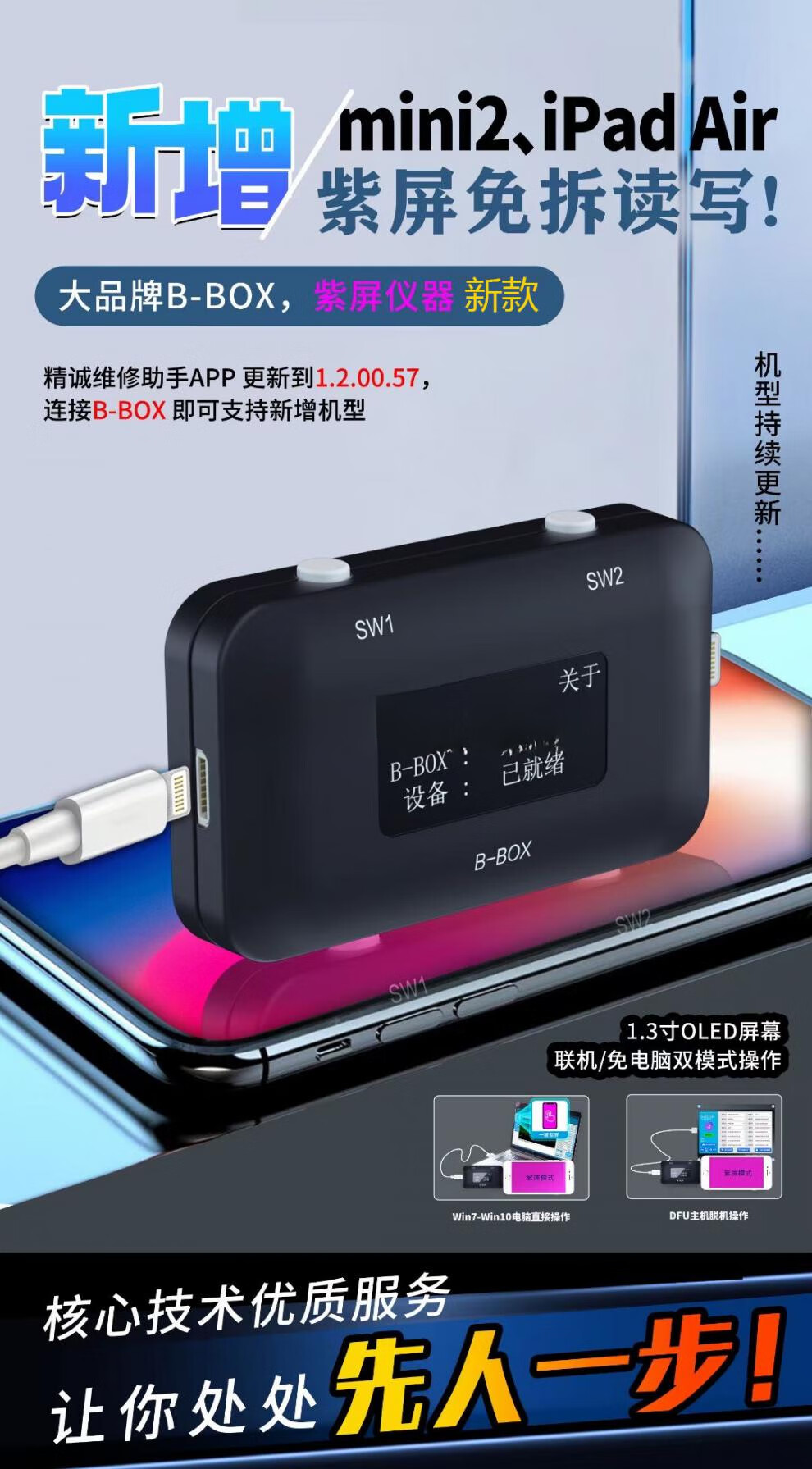 Suitable for B-BOX mobile phone disassembly-free hard disk programmer one-click purple screen DFU mode C3 small black data reading and writing Jingcheng ipad2/3 purple screen conversion head