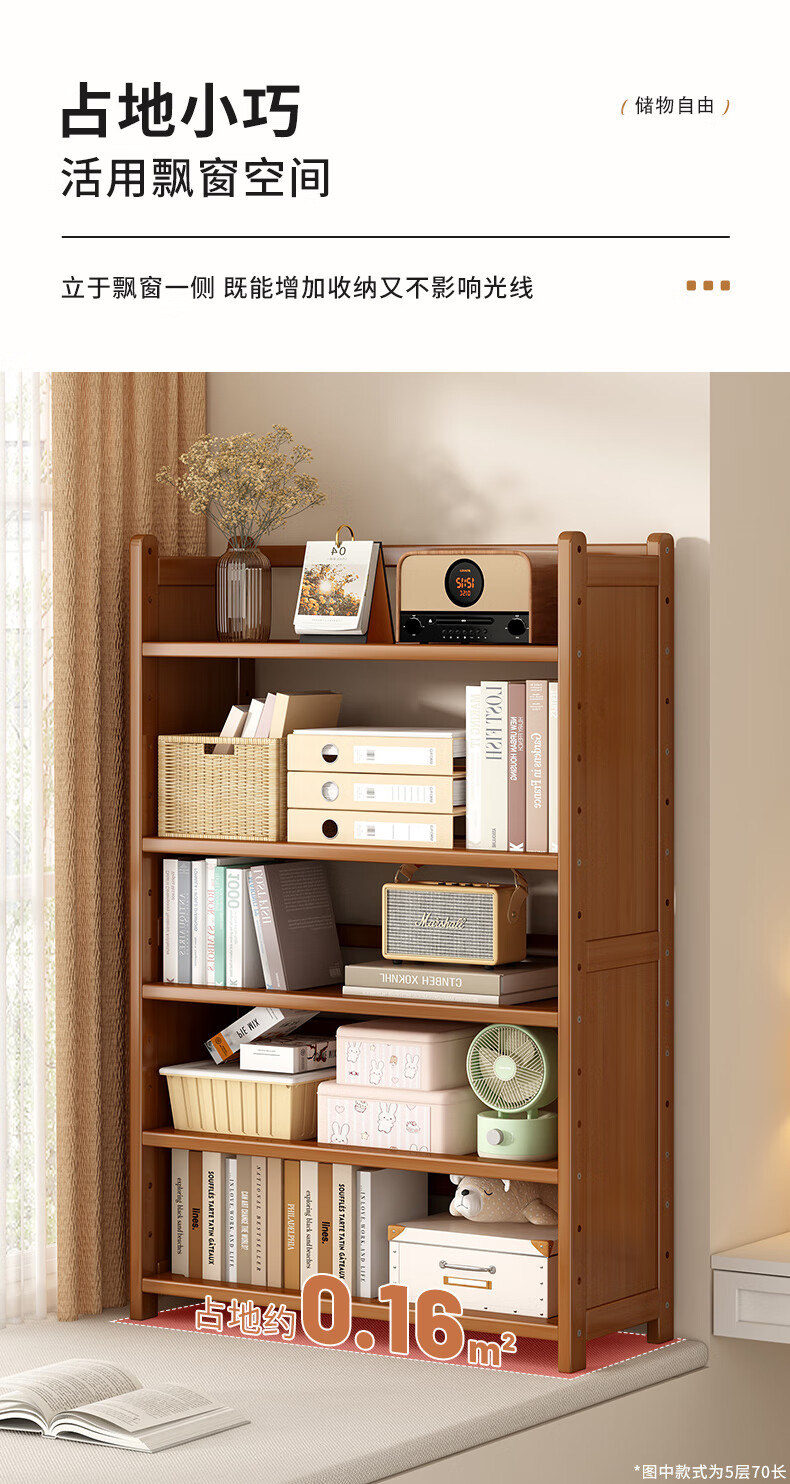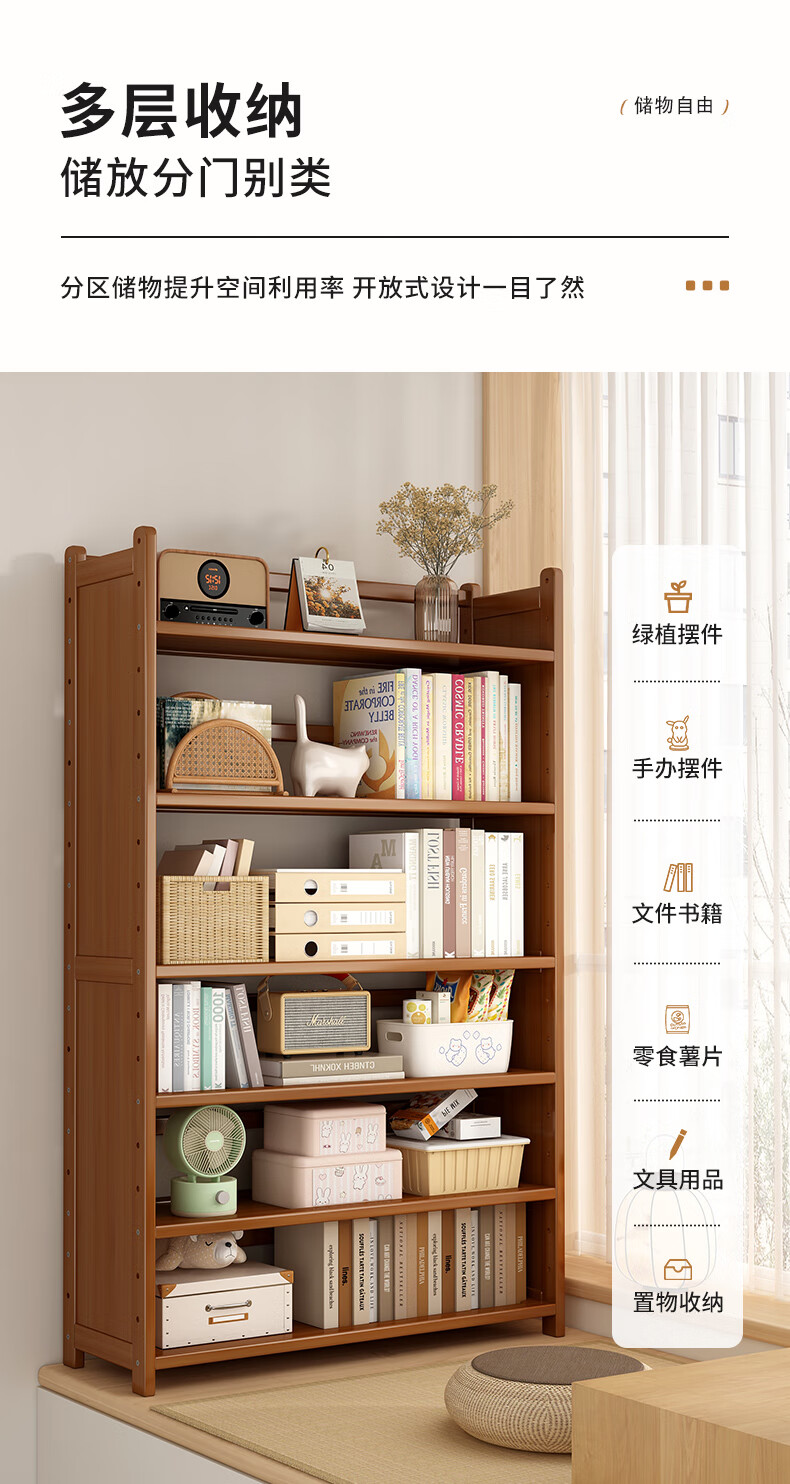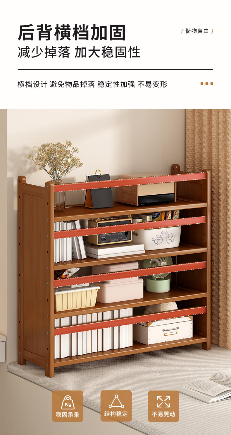 Bamboo Yijia Bookshelf Simple Home Small Bedroom Storage Rack Floor-standing Bookcase Wall Storage Rack Study Desktop Narrow Storage Rack 2-35 Styles (Thick Brackets + Reinforced Barrels)