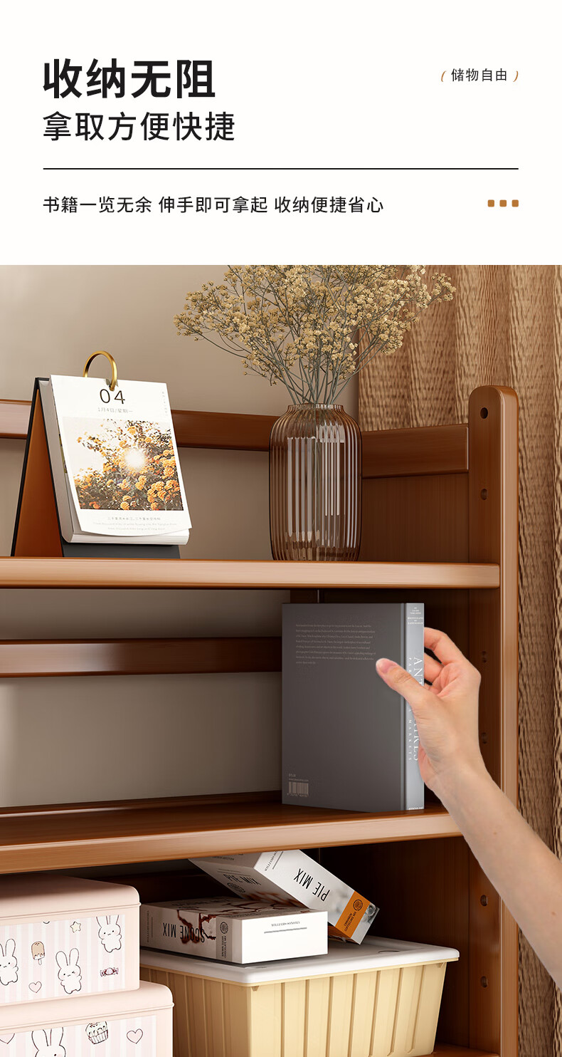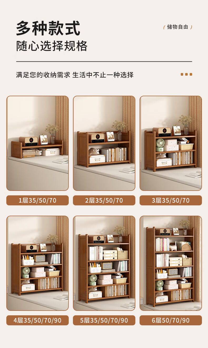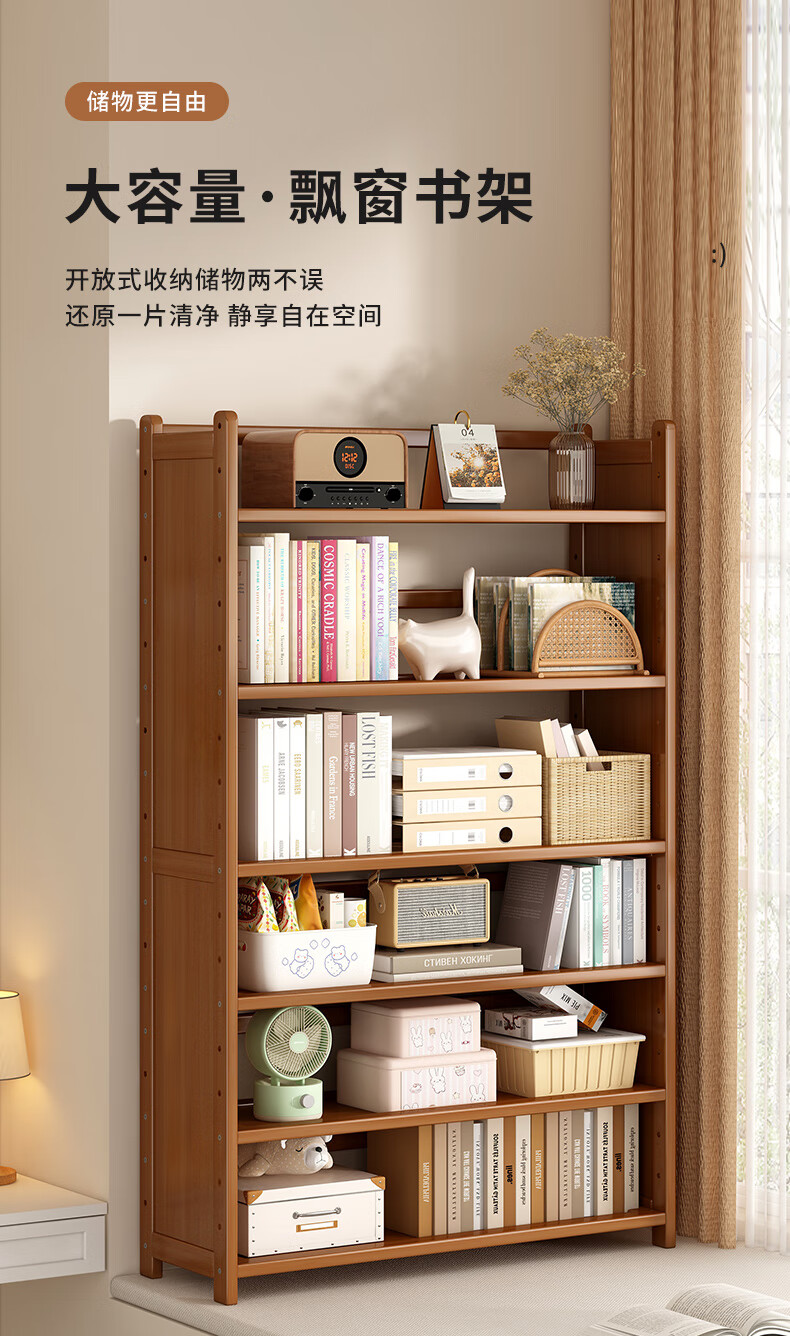 Bamboo Yijia Bookshelf Simple Home Small Bedroom Storage Rack Floor-standing Bookcase Wall Storage Rack Study Desktop Narrow Storage Rack 2-35 Styles (Thick Brackets + Reinforced Barrels)