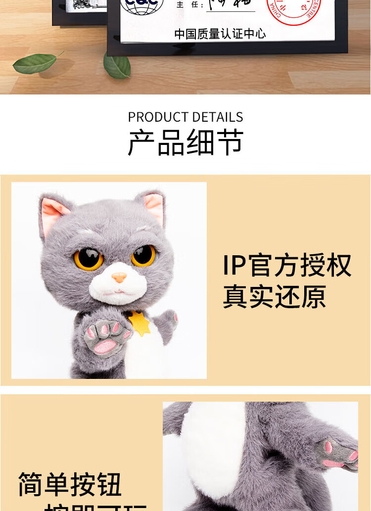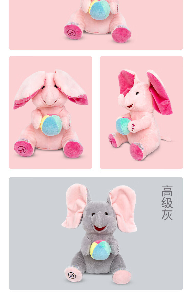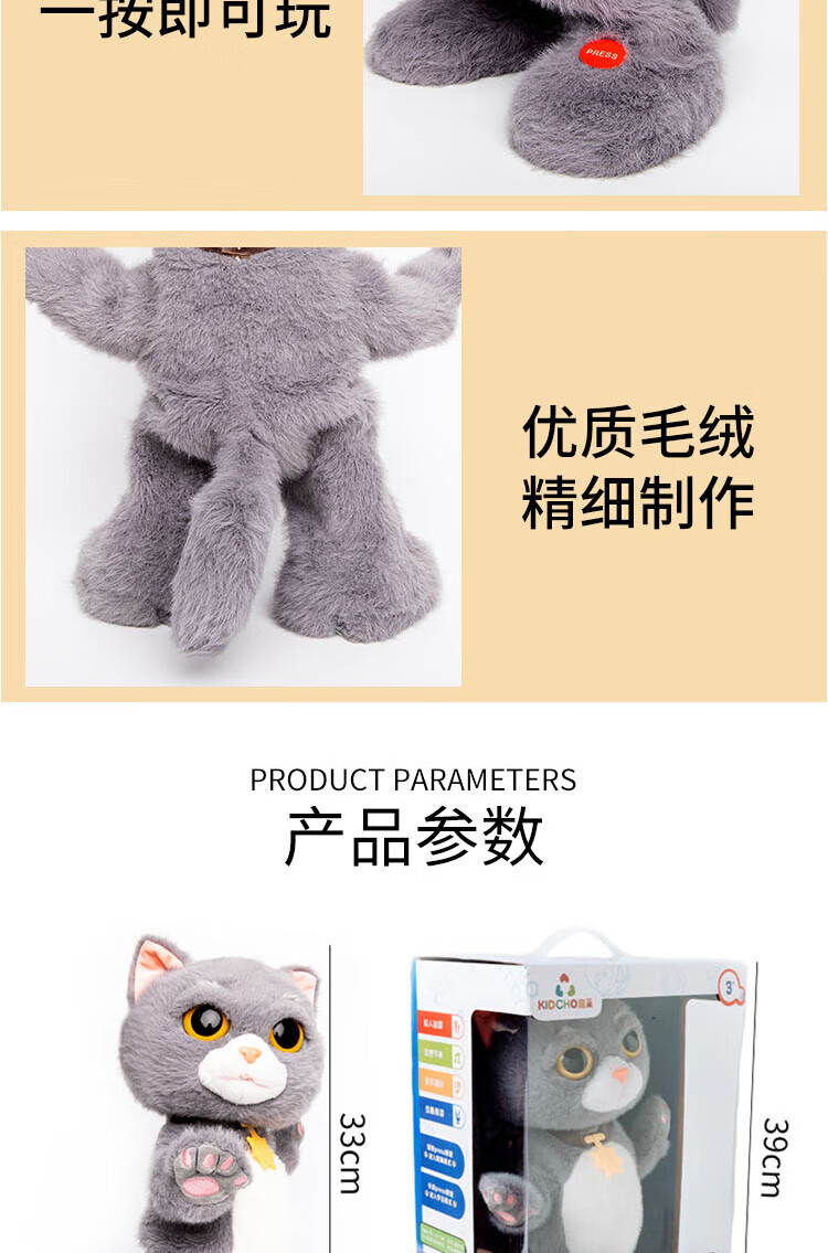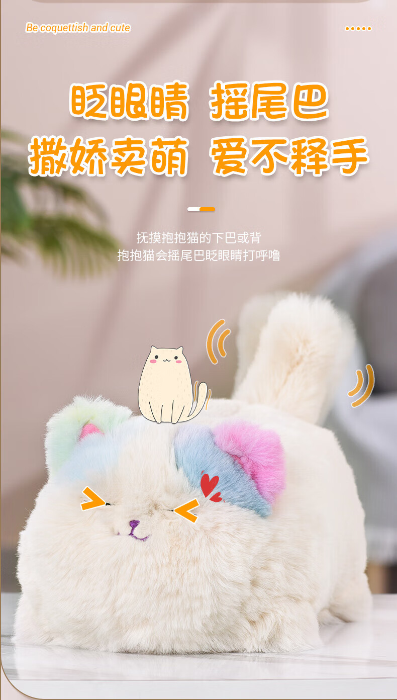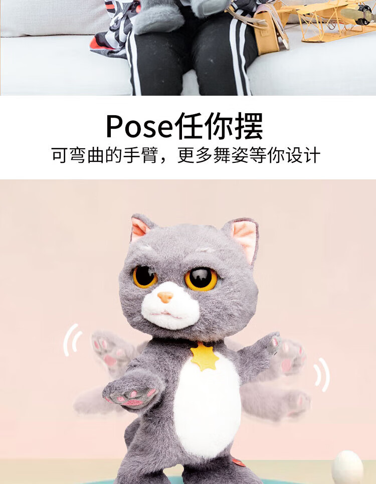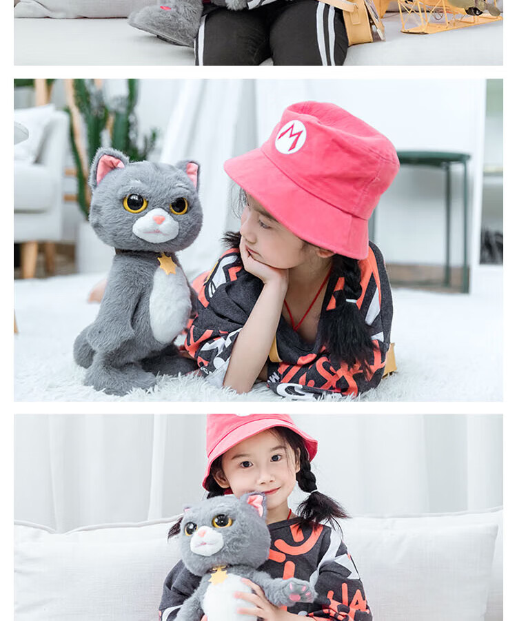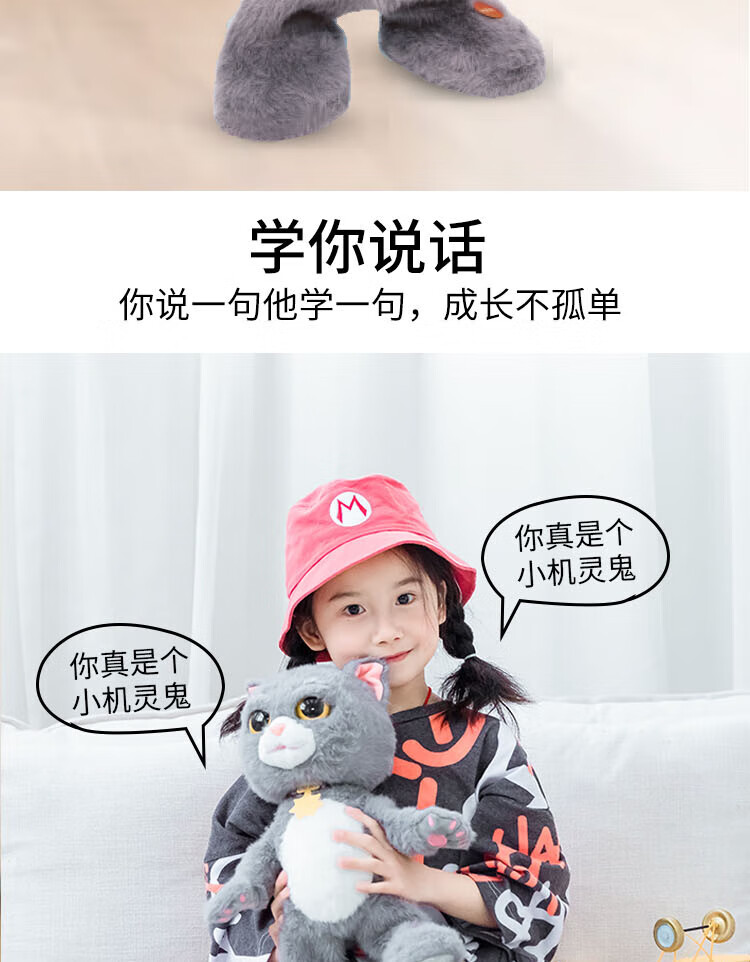 Quchao AI Hugable Cat Children's Electric Plush Toy Shake Meow Hug Meow Little Lucky Elephant Electric Butt Flying Dog Holiday Gift Hide and Seek Little Lucky Elephant Supermarket Gift Box HX0384 Gray