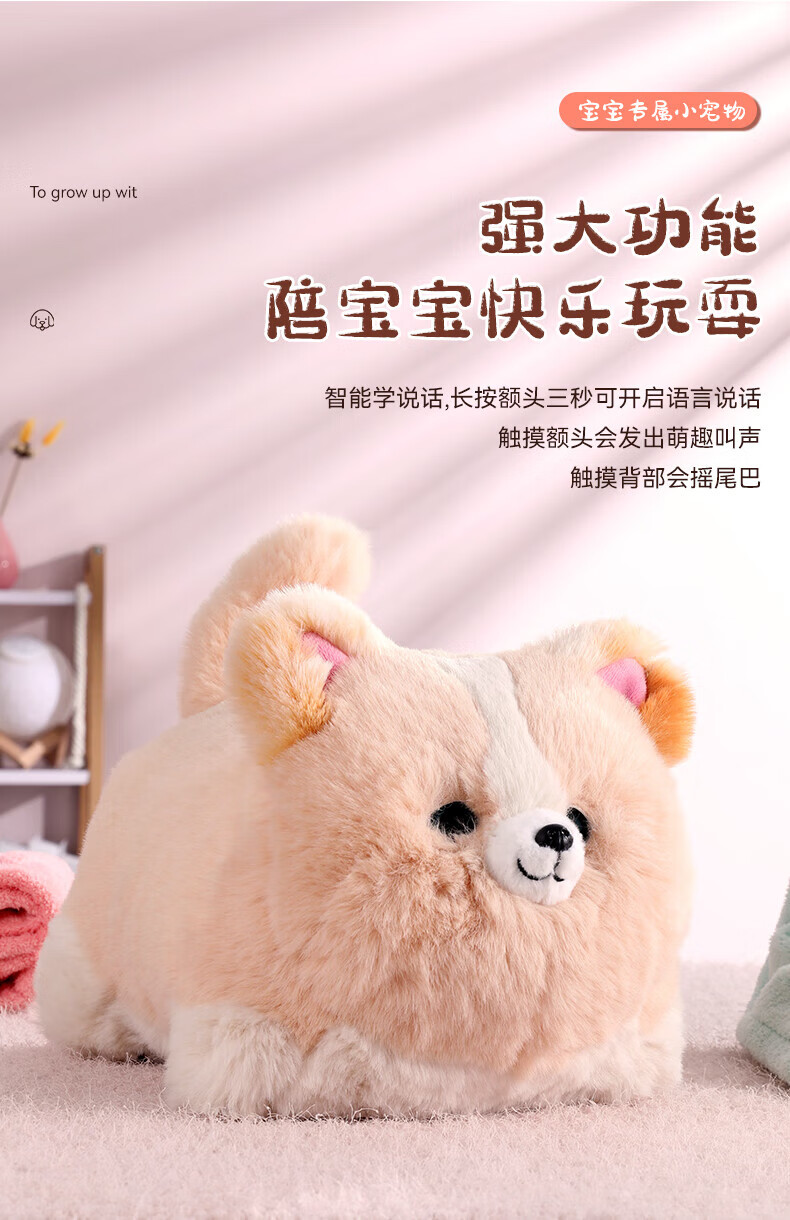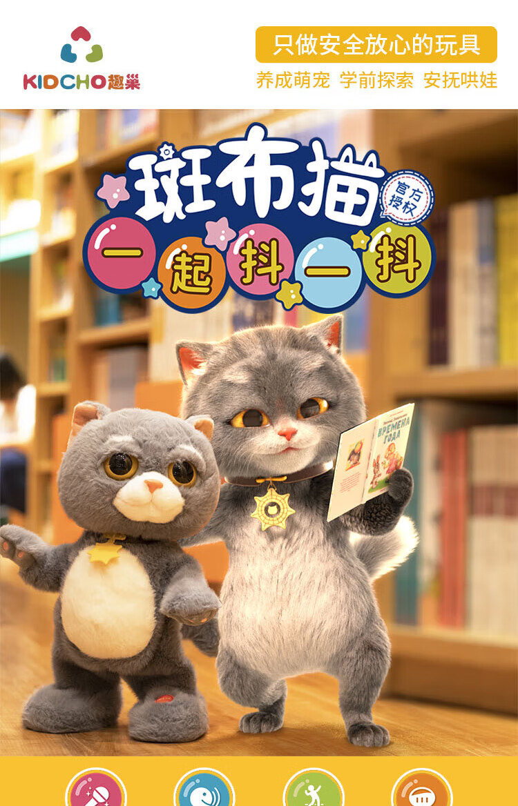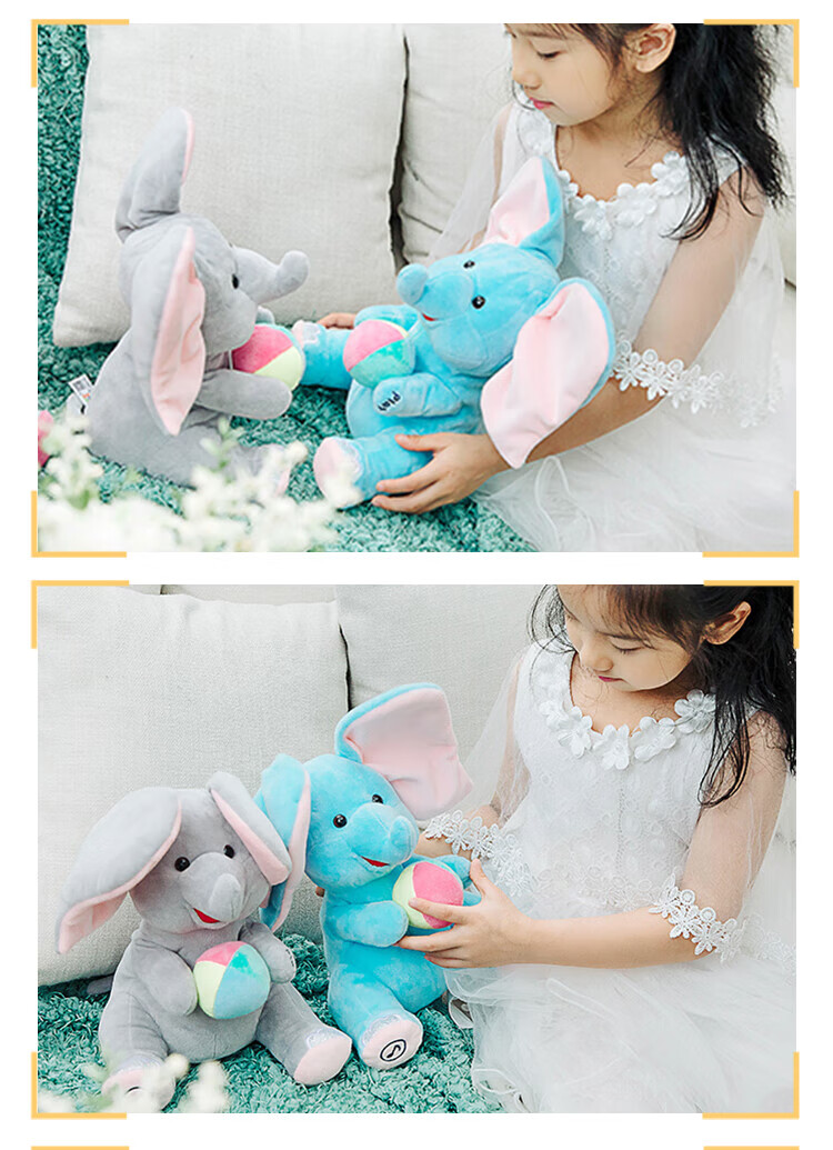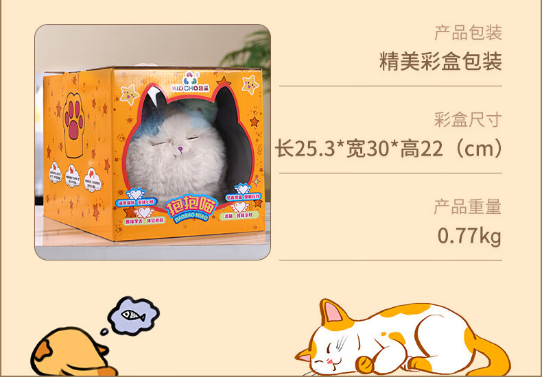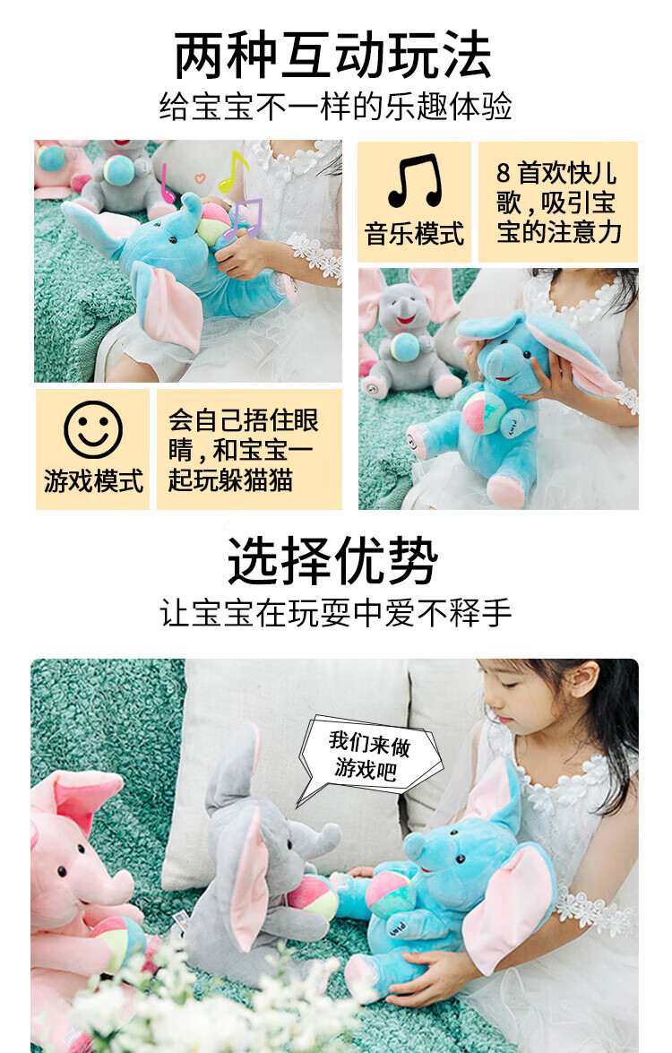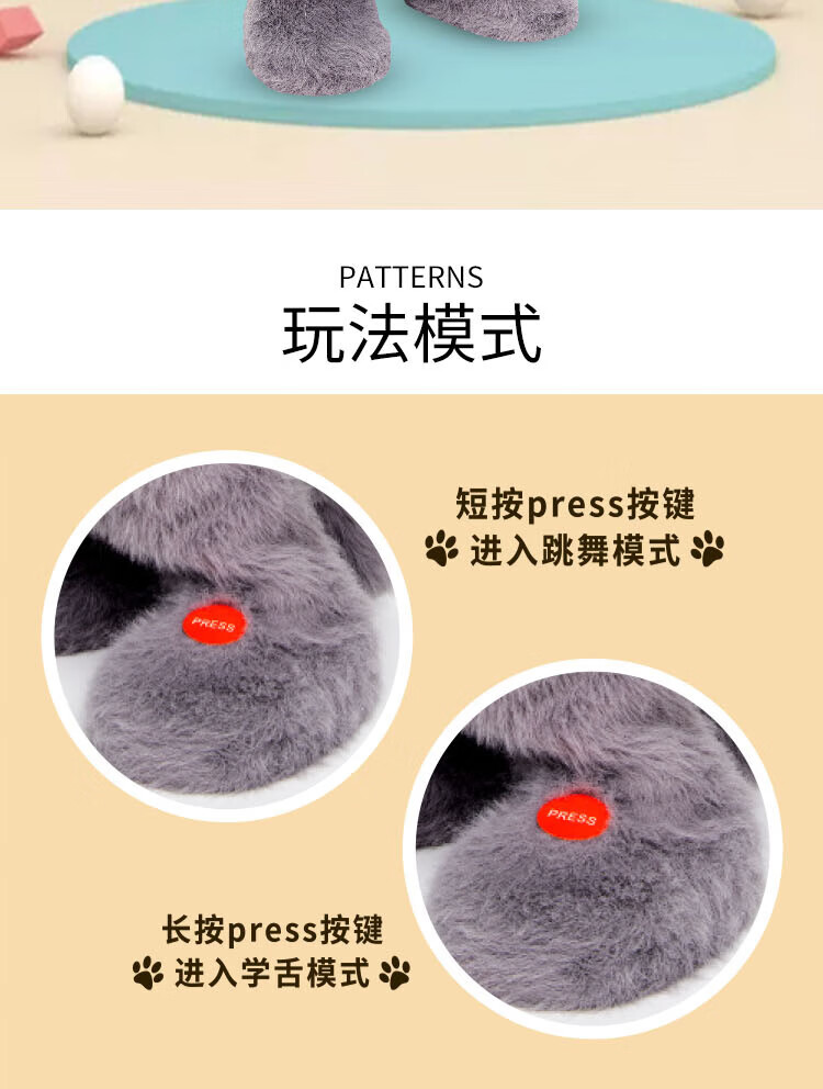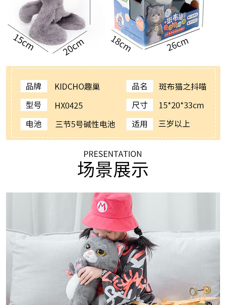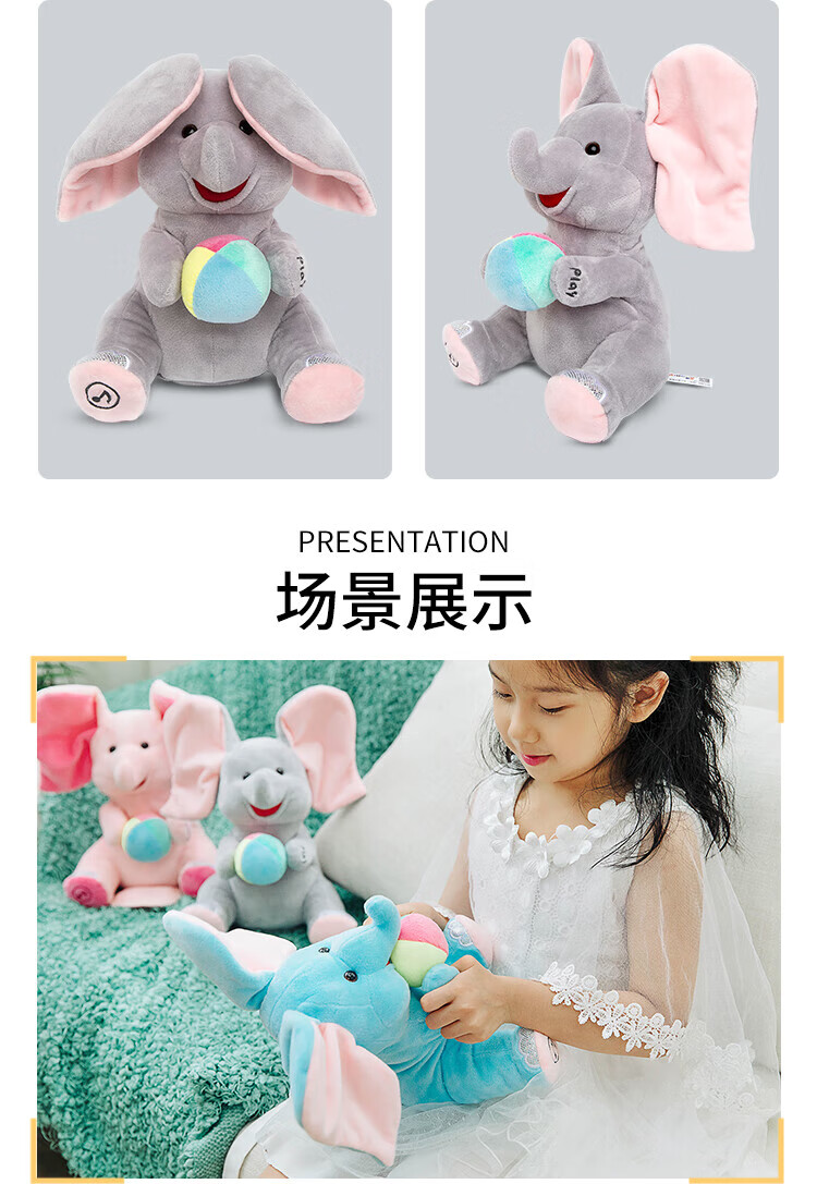 Quchao AI Hugable Cat Children's Electric Plush Toy Shake Meow Hug Meow Little Lucky Elephant Electric Butt Flying Dog Holiday Gift Hide and Seek Little Lucky Elephant Supermarket Gift Box HX0384 Gray