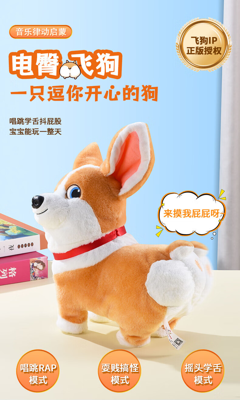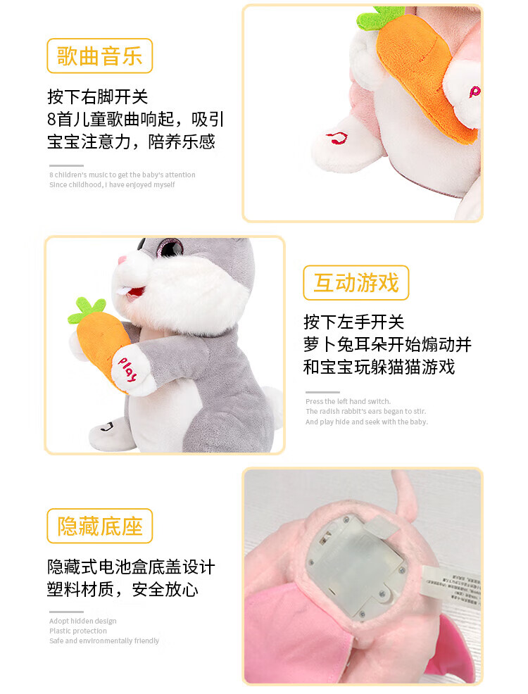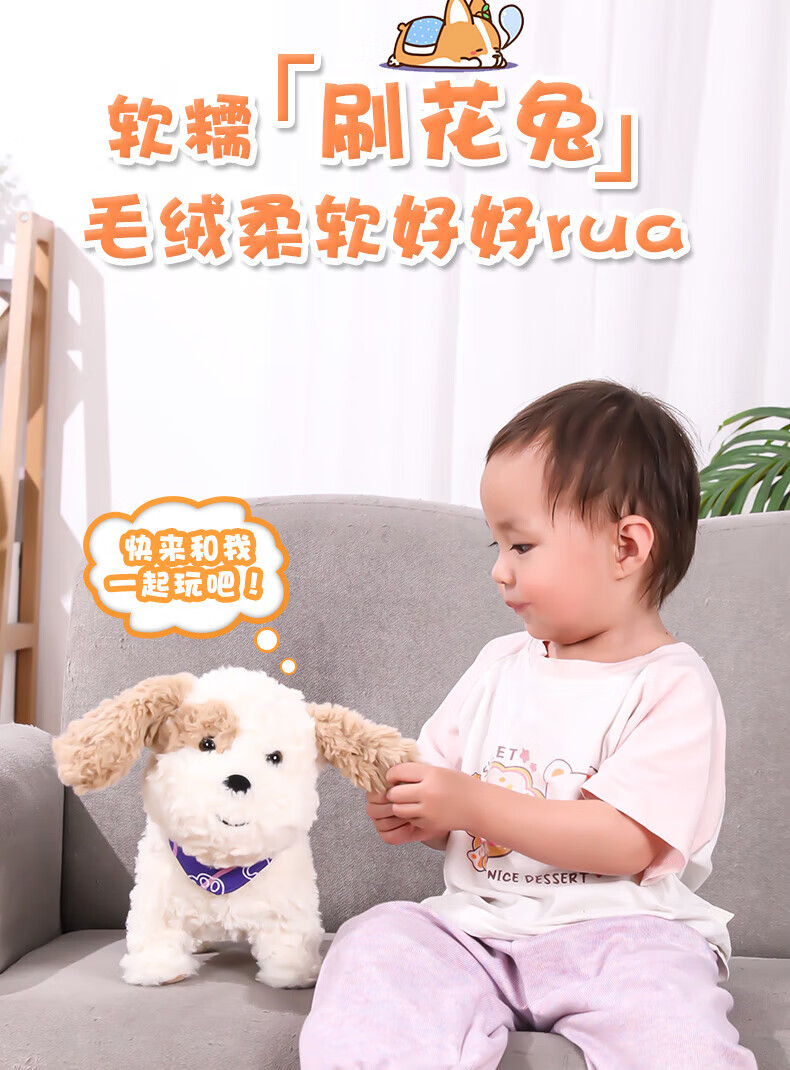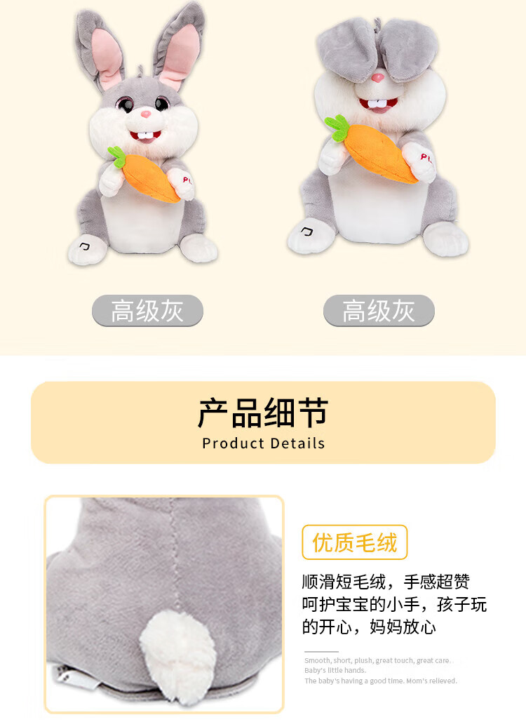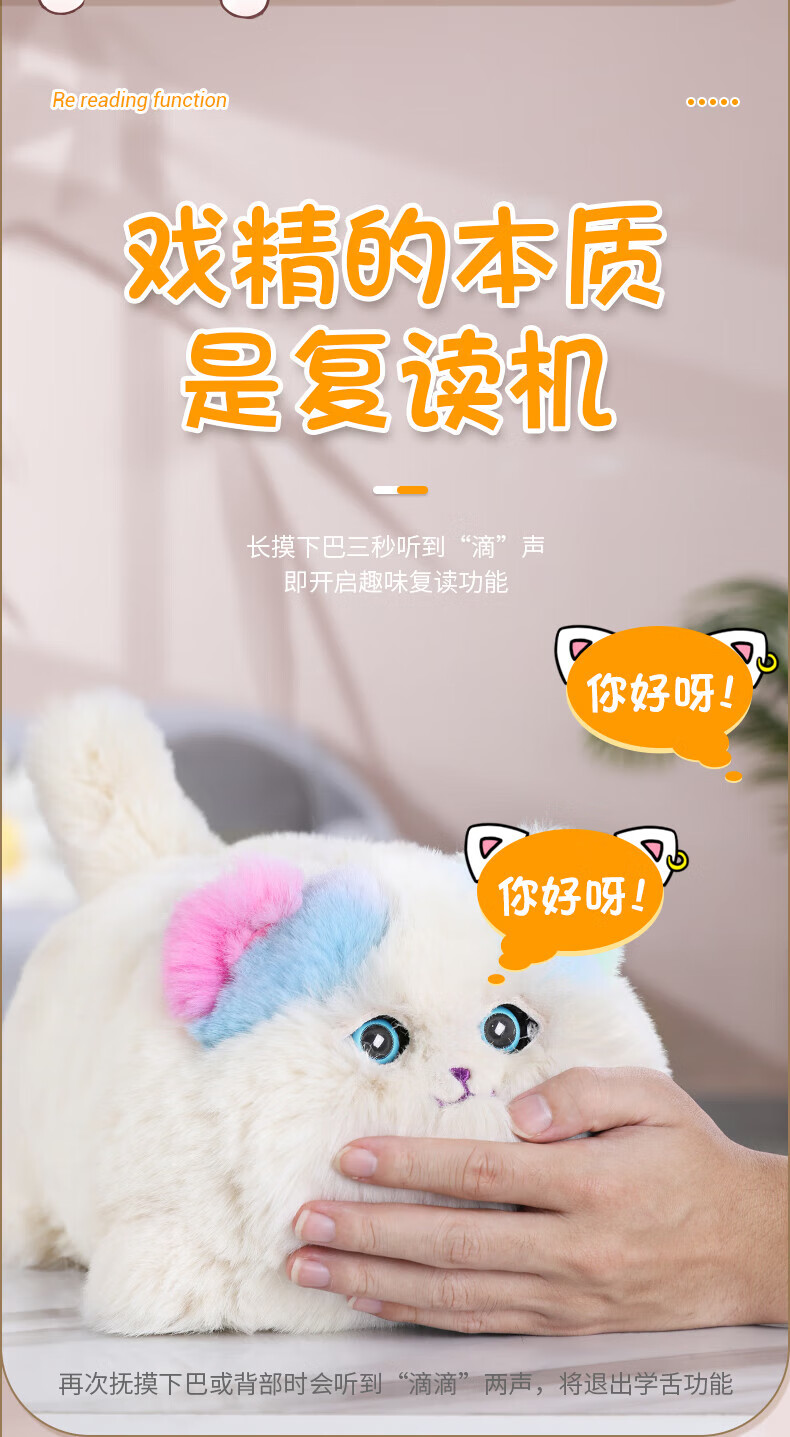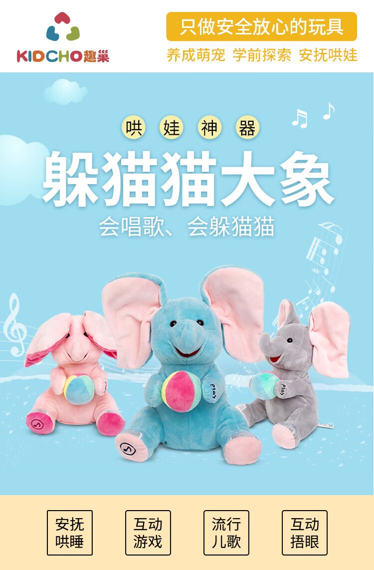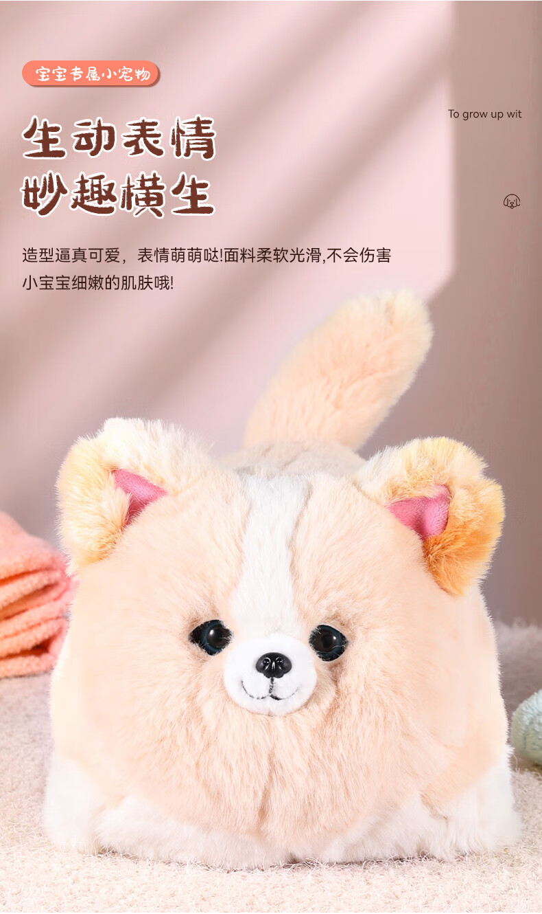 Quchao AI Hugable Cat Children's Electric Plush Toy Shake Meow Hug Meow Little Lucky Elephant Electric Butt Flying Dog Holiday Gift Hide and Seek Little Lucky Elephant Supermarket Gift Box HX0384 Gray