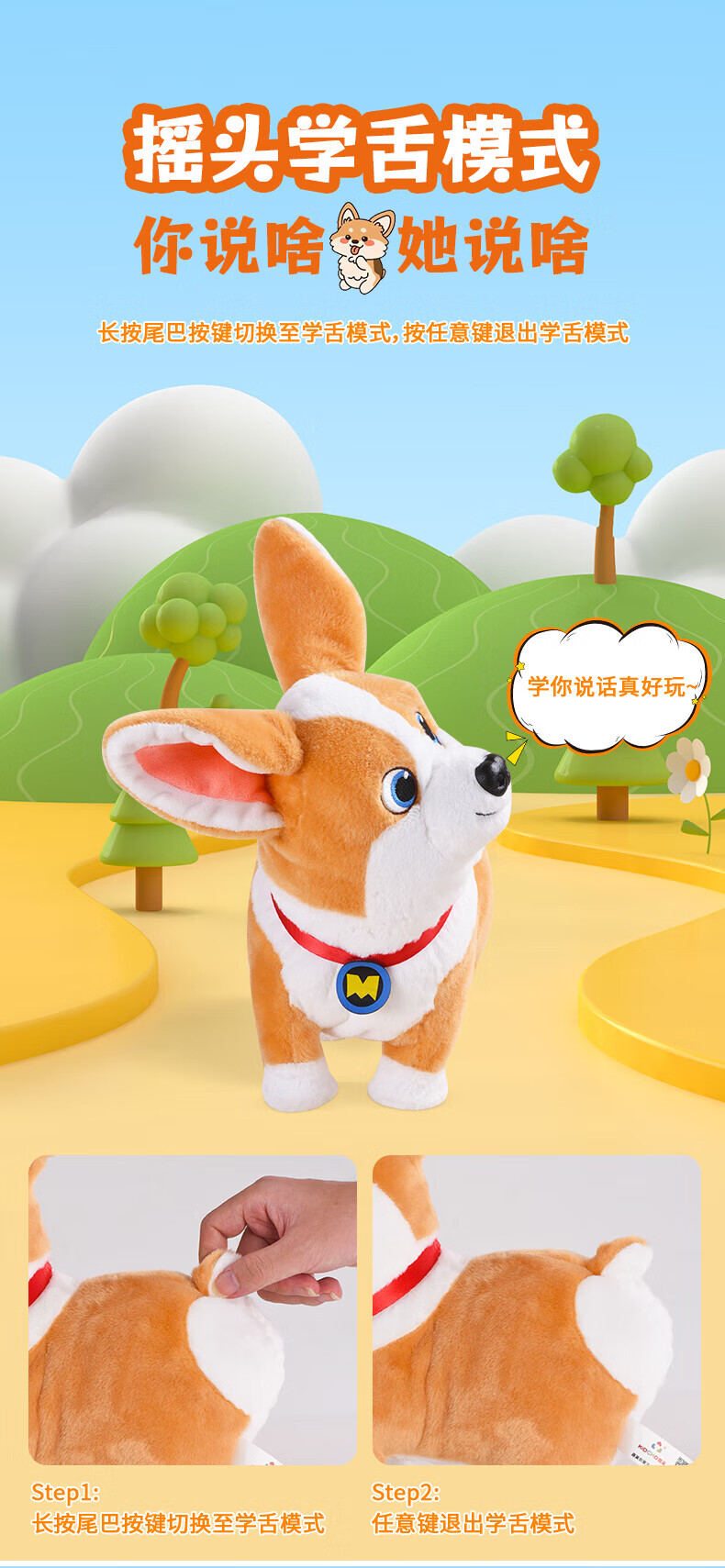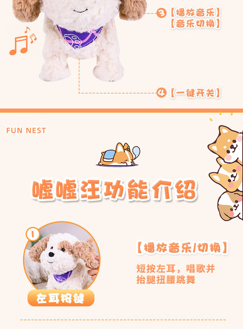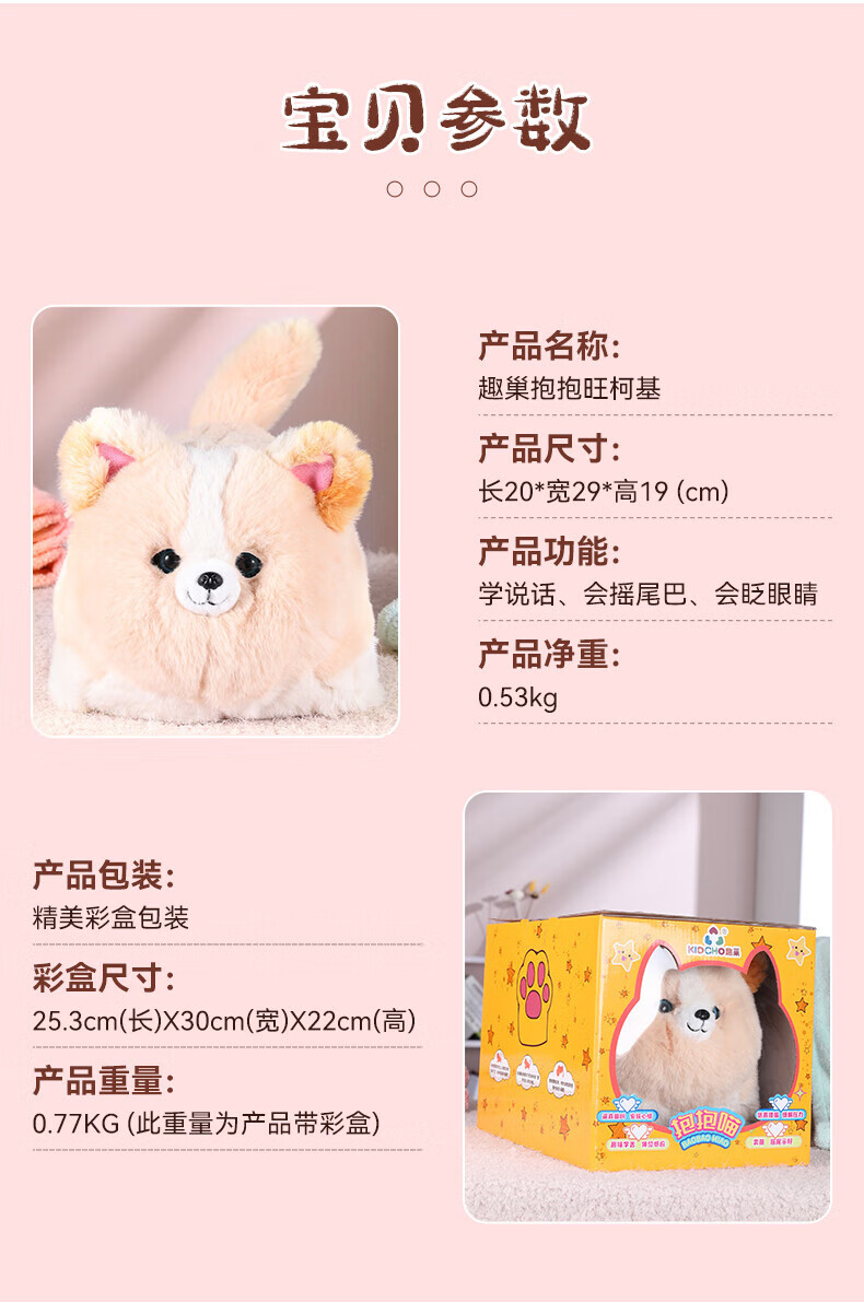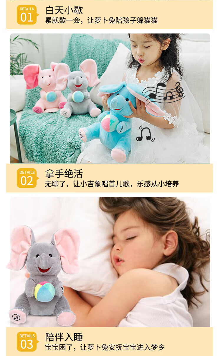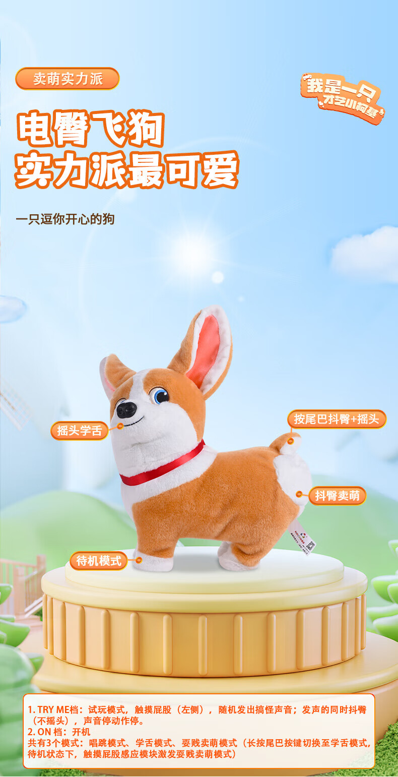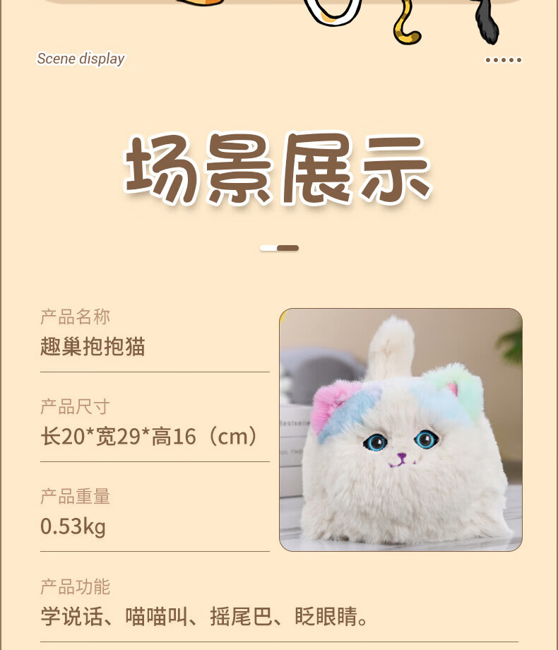 Quchao AI Hugable Cat Children's Electric Plush Toy Shake Meow Hug Meow Little Lucky Elephant Electric Butt Flying Dog Holiday Gift Hide and Seek Little Lucky Elephant Supermarket Gift Box HX0384 Gray