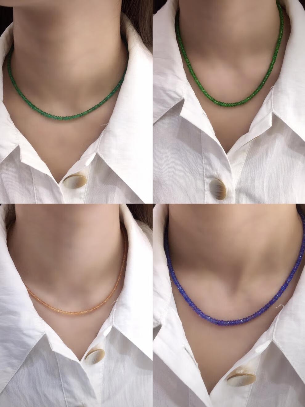 Dunzhu Tanzanite New Favorite Tsavorite Blue Orb Bead Chain Aquamarine Millet Beibei Chain Opal Tanzanite Plate Bead Blue Phosphorus 18K Kaza Mud Green Large Tower Chain 3.6-4.6mm