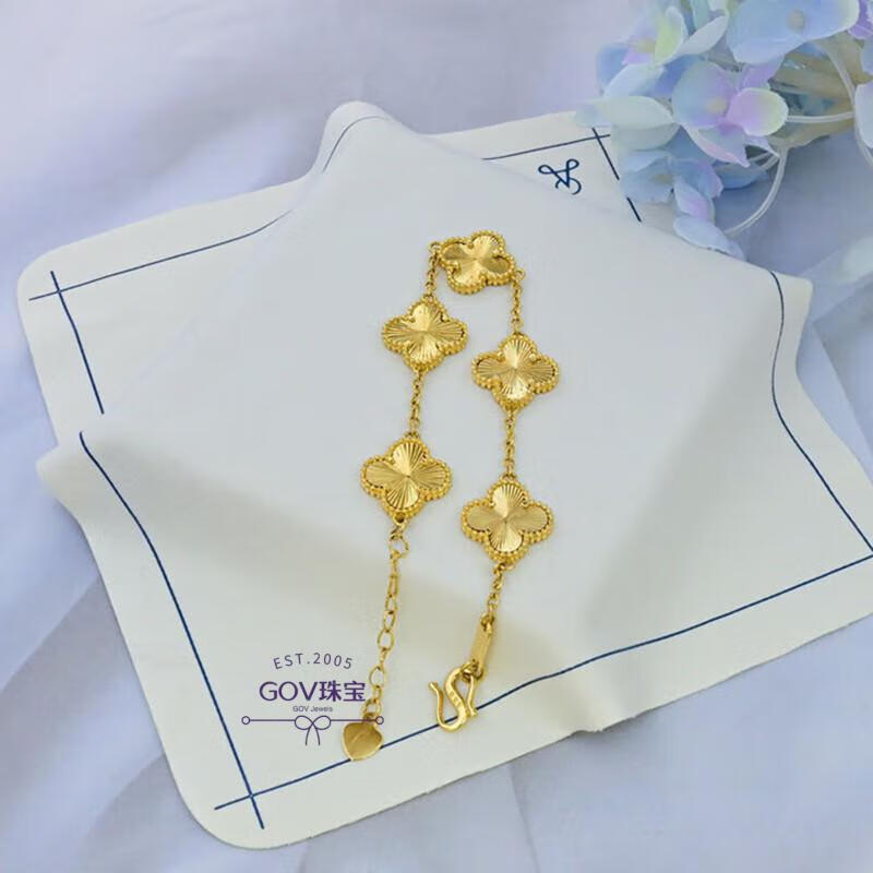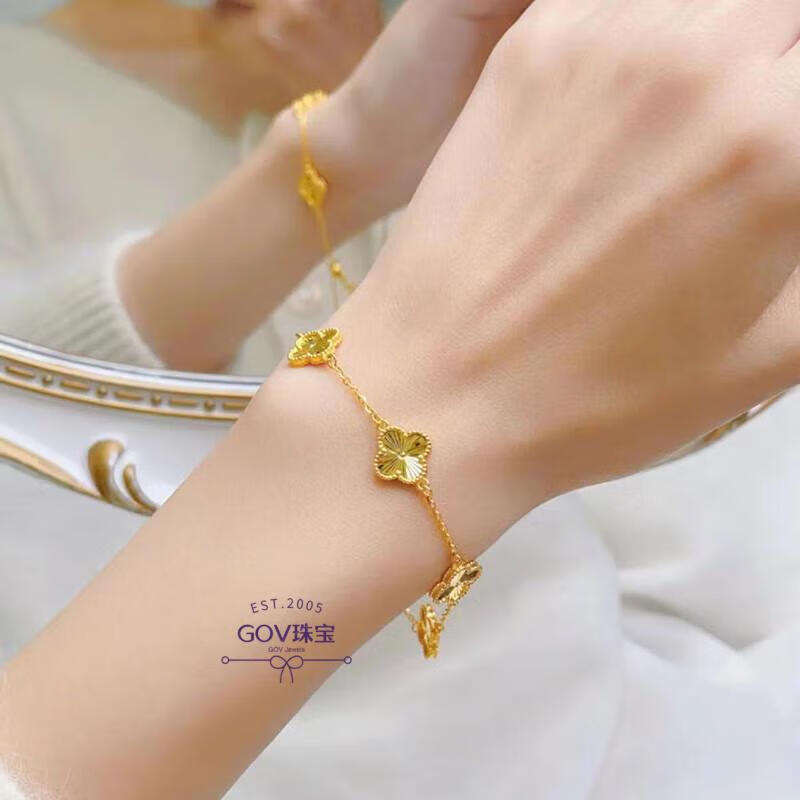 Miyan four-leaf clover k gold-wrapped silver bracelet new gold women's model 999 clover hand ornament gold simple bracelet for girlfriend ((adjustable)