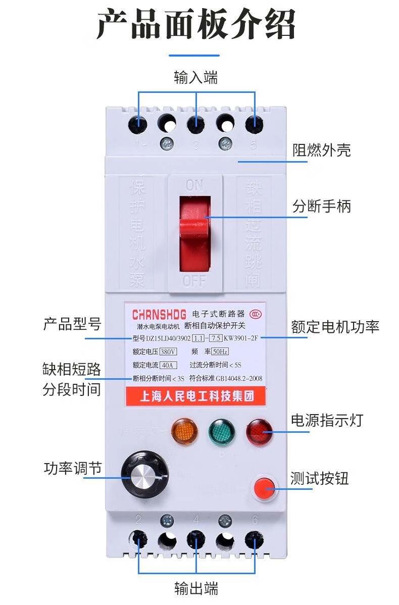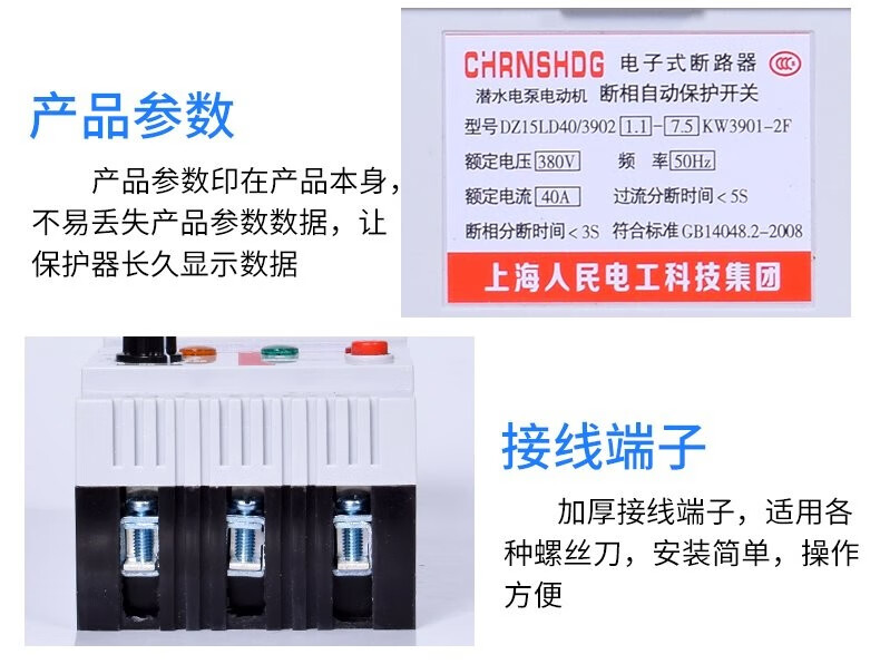 Chint phase loss protector three-phase submersible pump protector 380V electric switch motor phase loss leakage protector 40A