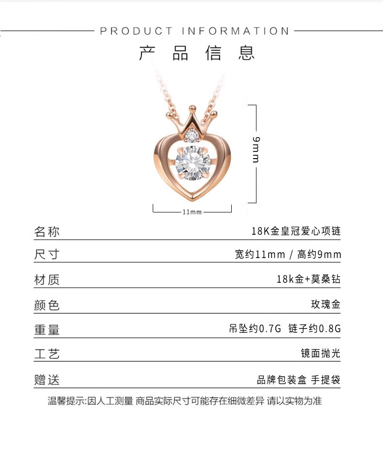 Xuanshi 18K Gold Love Necklace Women's Moissanite Light Luxury Niche Crown Pendant Valentine's Day Valentine's Day Gift 1 18K Gold Love Crown Necklace
