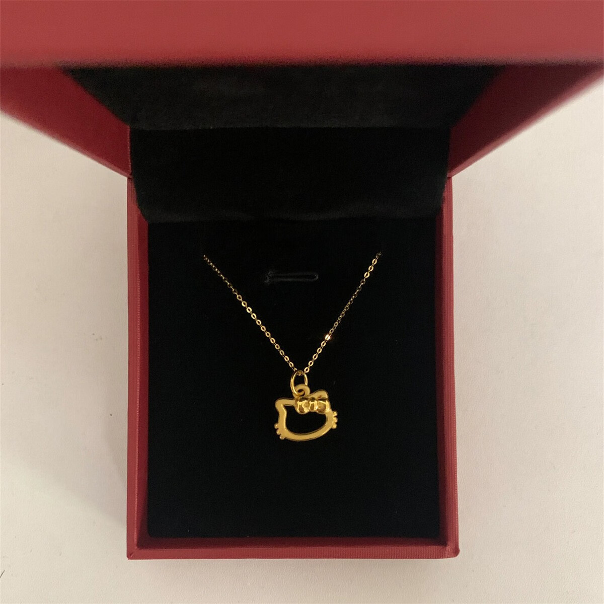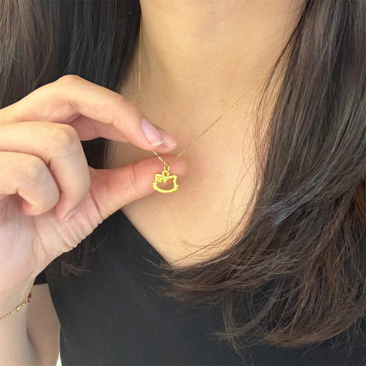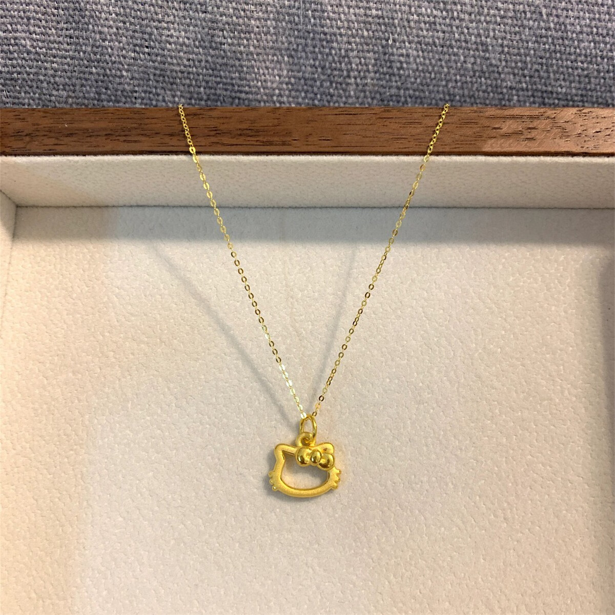 Mussel Gold Store HelloKitty Hollow Gold Necklace Simple Hello Kitty KT Bow Plated 18ktty Necklace tty Necklace
