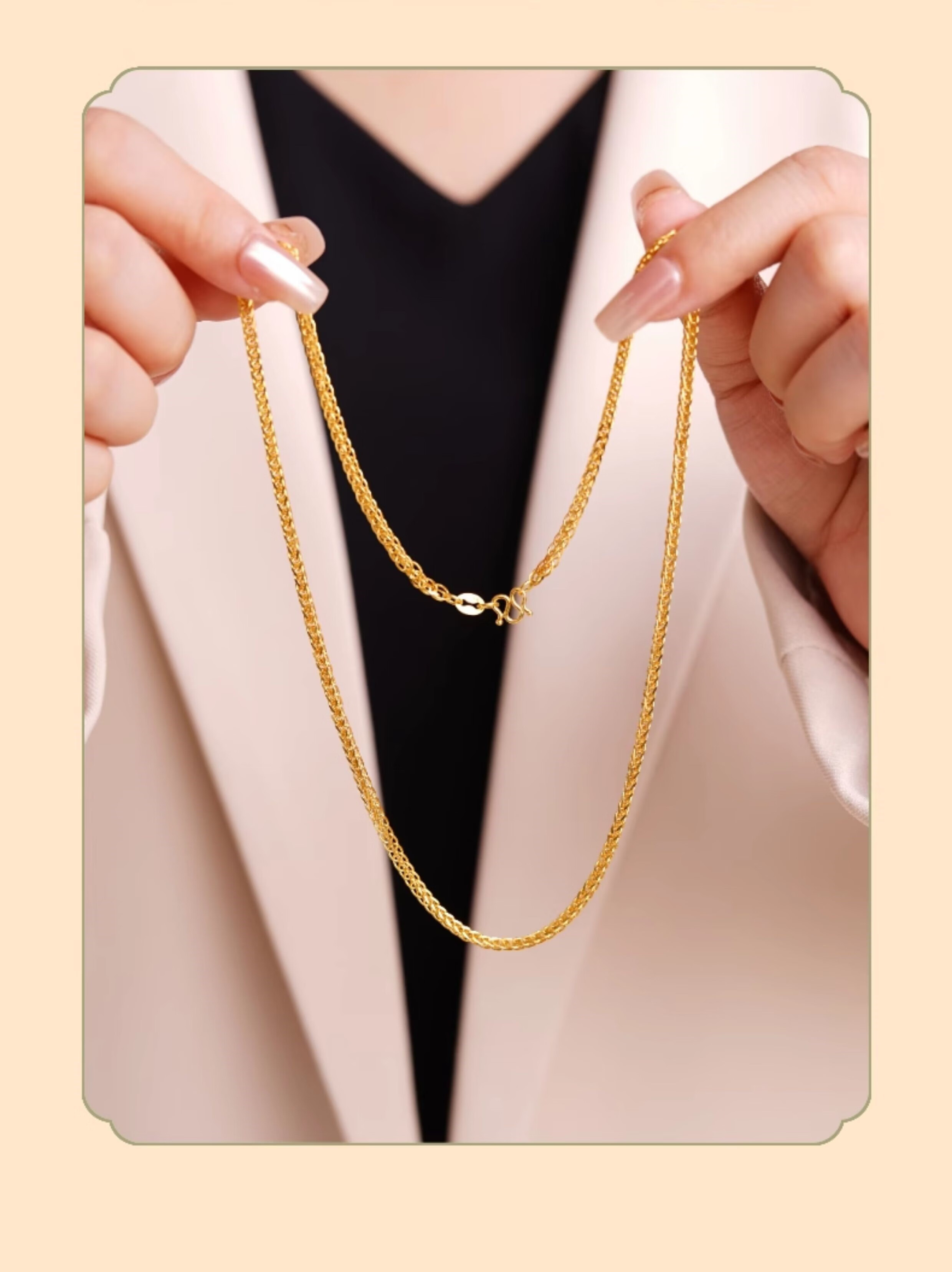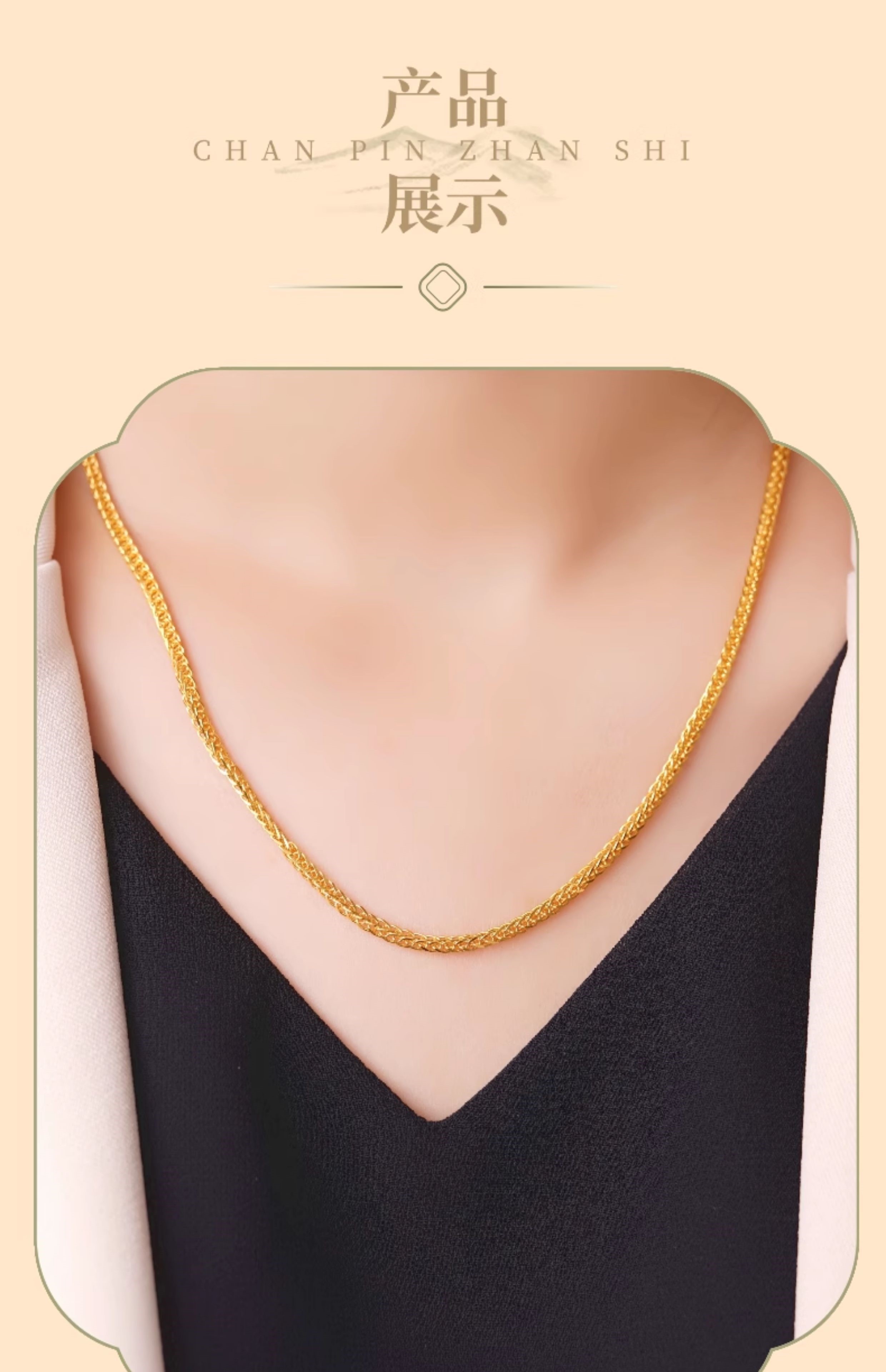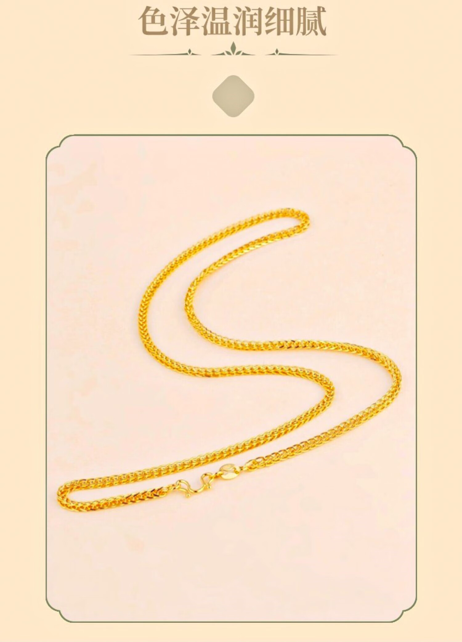 Mussel Jin Xihe pure gold covered with silver Chopard chain clavicle versatile chain pure gold 999 gold with chain high-end gift plain chain for women Chopard chain 50cm about 9 grams