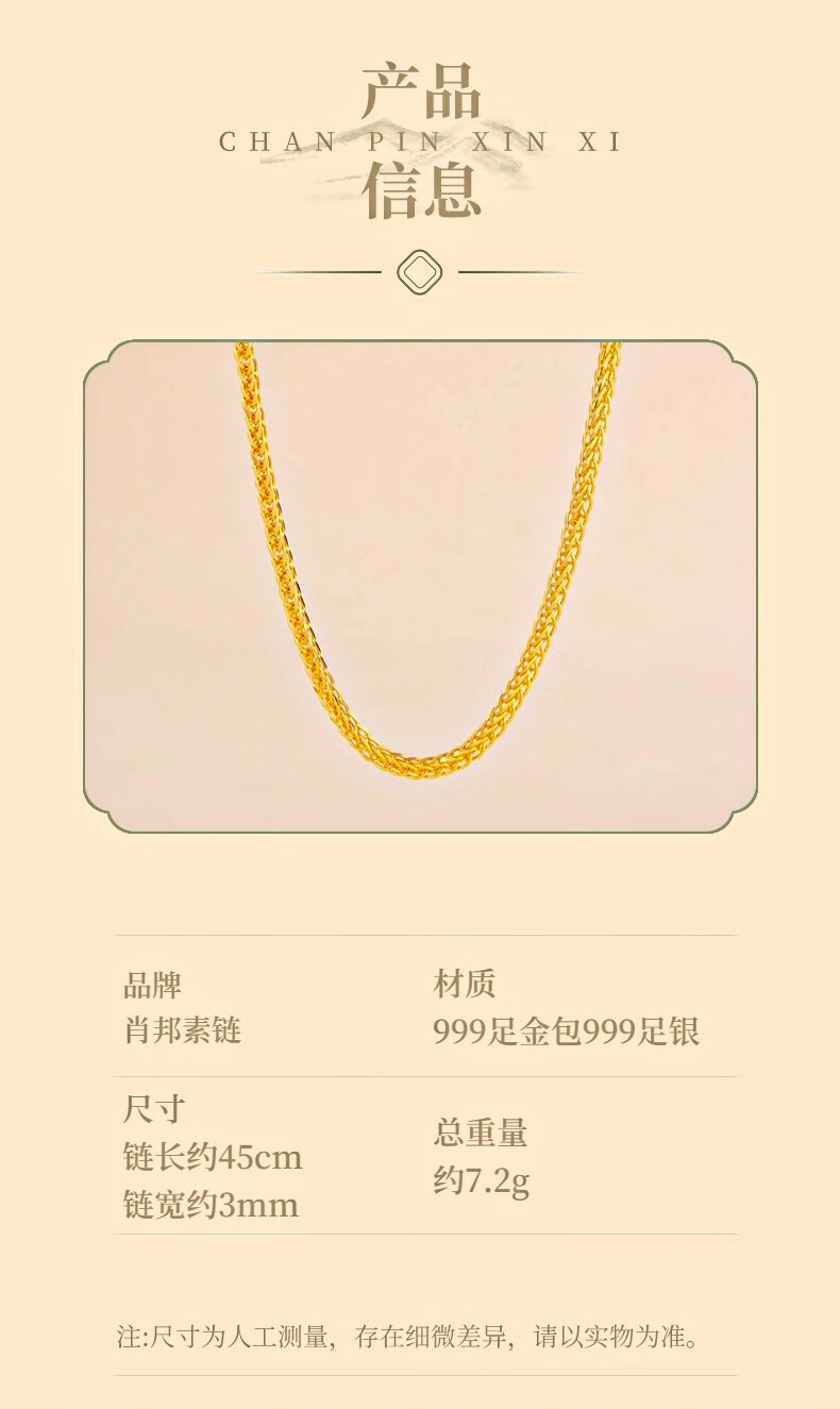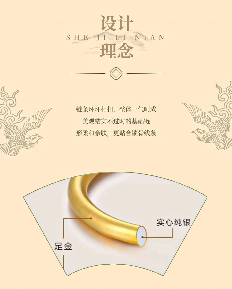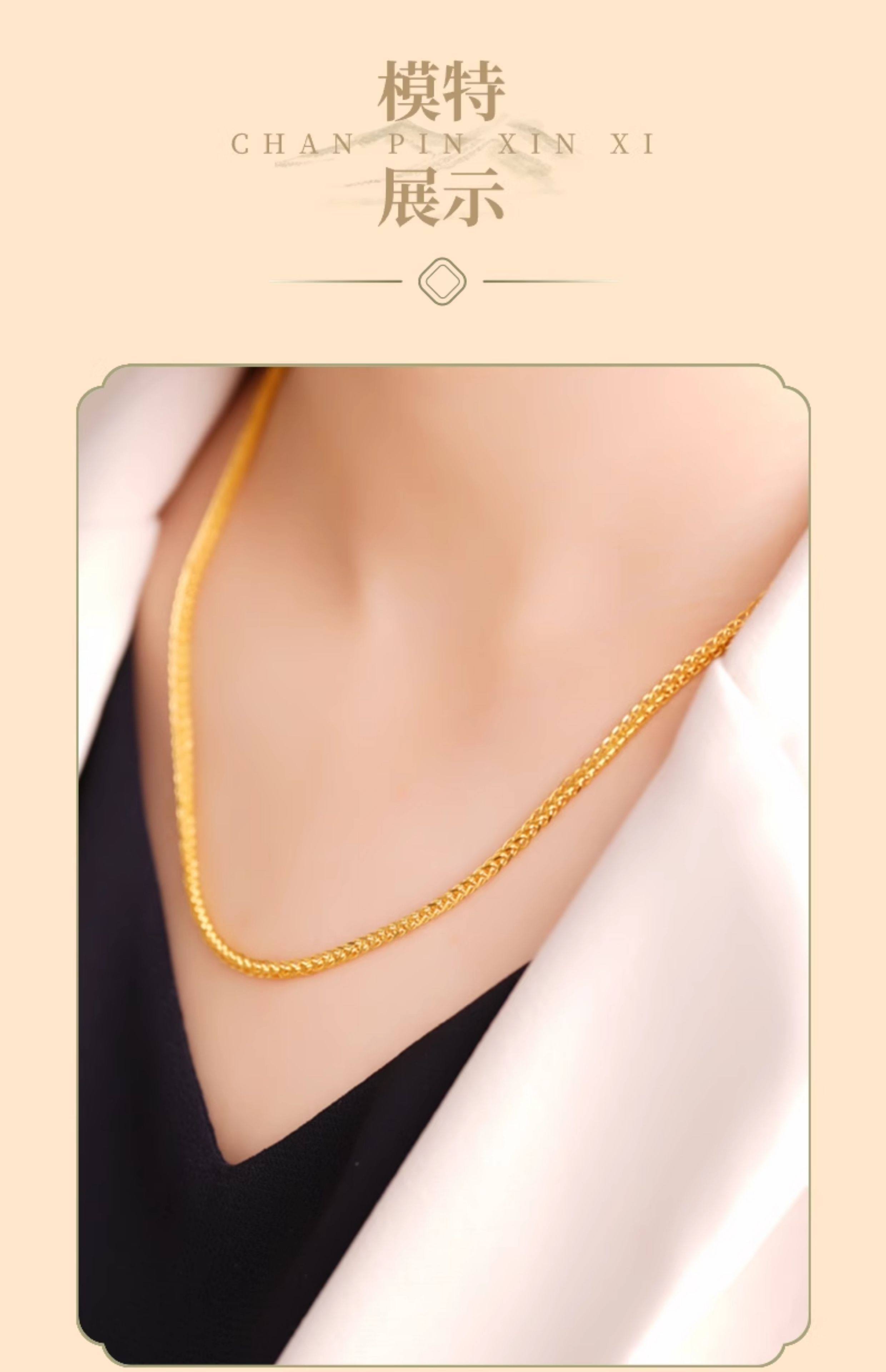 Mussel Jin Xihe pure gold covered with silver Chopard chain clavicle versatile chain pure gold 999 gold with chain high-end gift plain chain for women Chopard chain 50cm about 9 grams