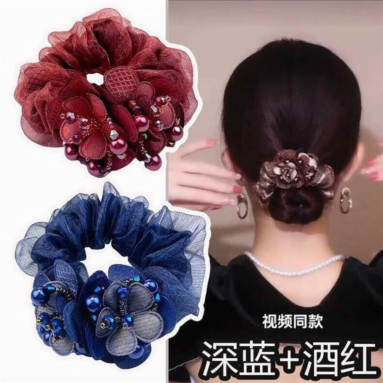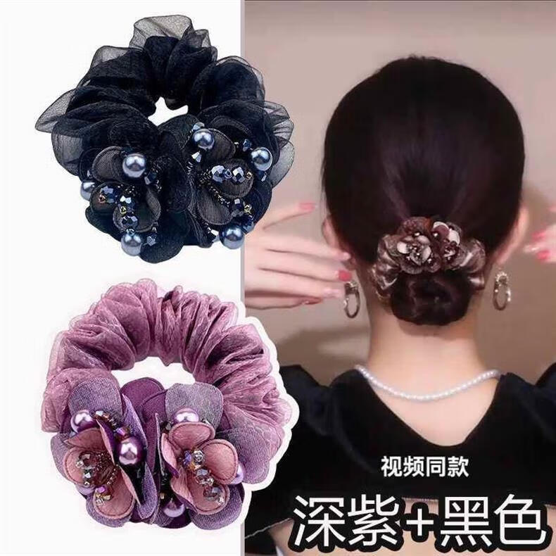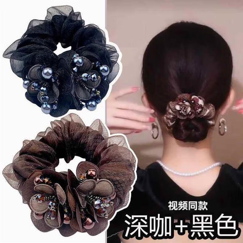 Antimexi’s mother-in-law’s hair ornaments and updos 2024 new high-end headbands, hair ropes and hair rings for her mother’s wedding banquet, wedding cheongsam hair accessories, dark coffee + dark purple 2 pcs