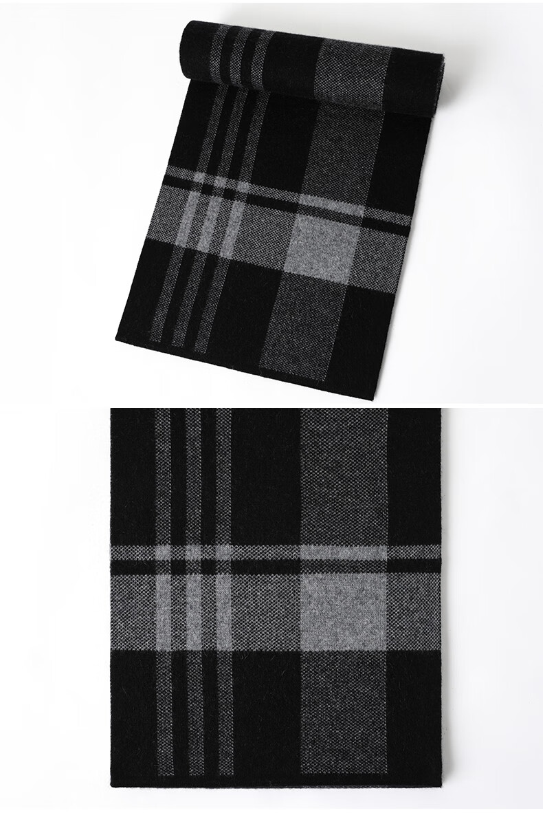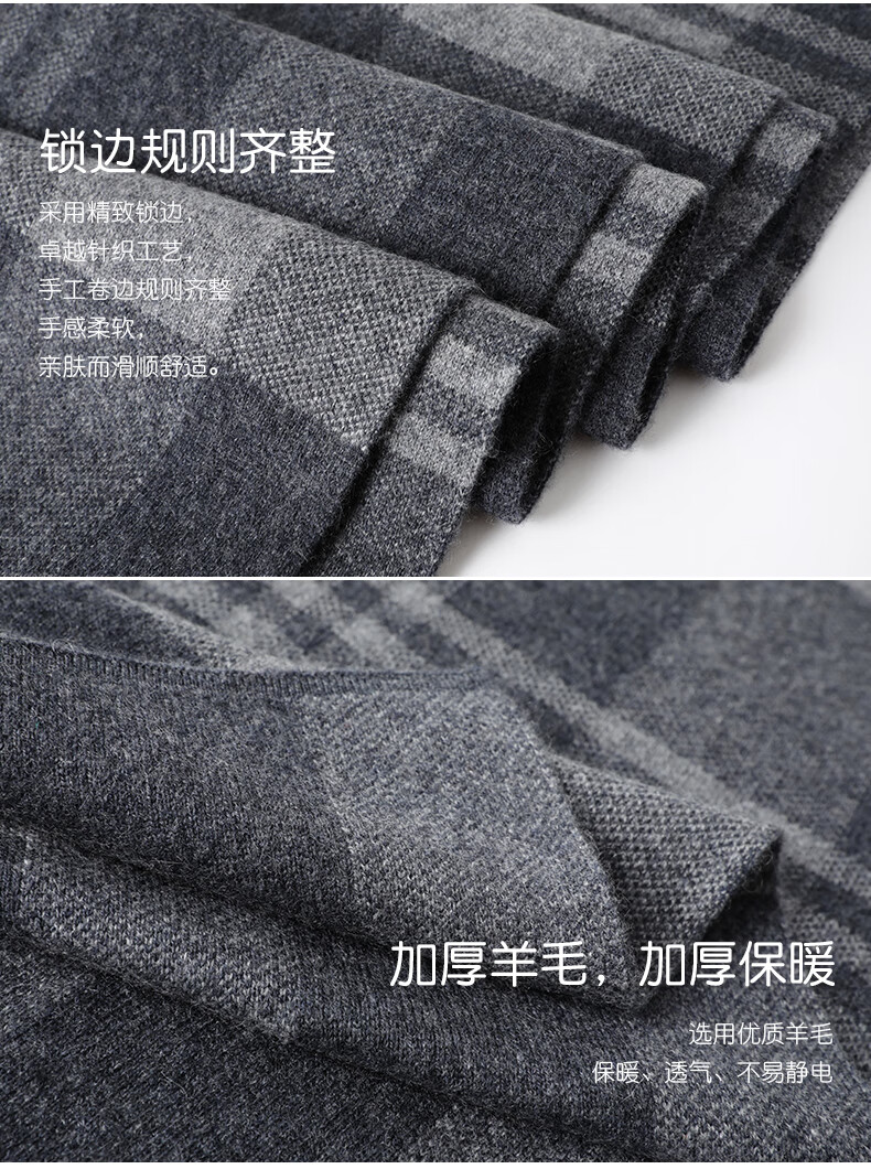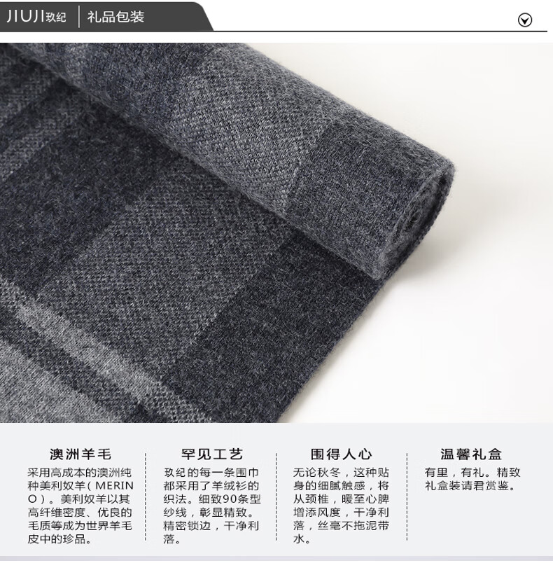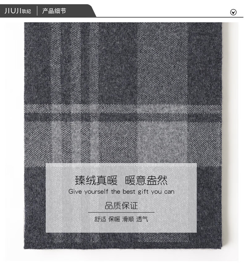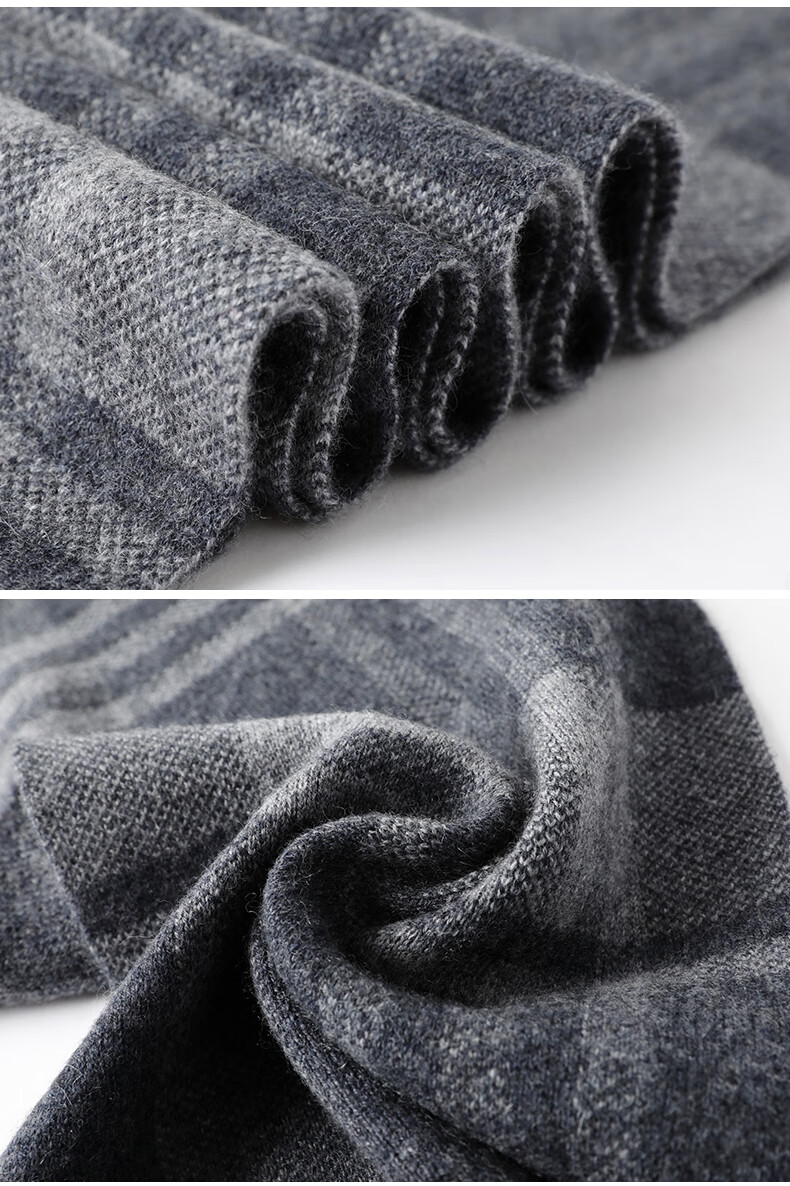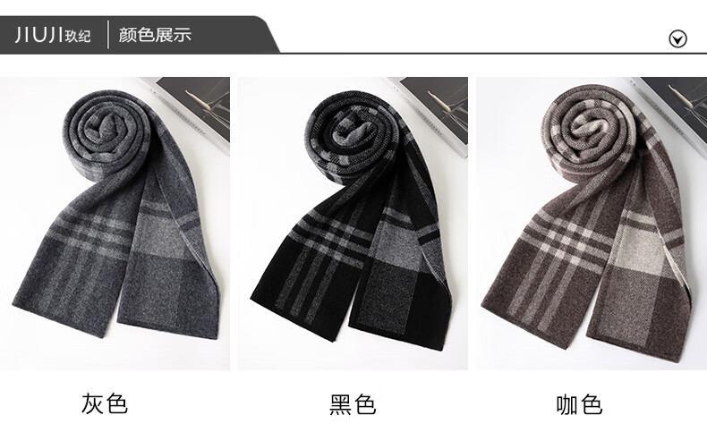 JIUJI cashmere scarf high-end men's winter new thickened warm Korean style striped scarf young people gift box gray