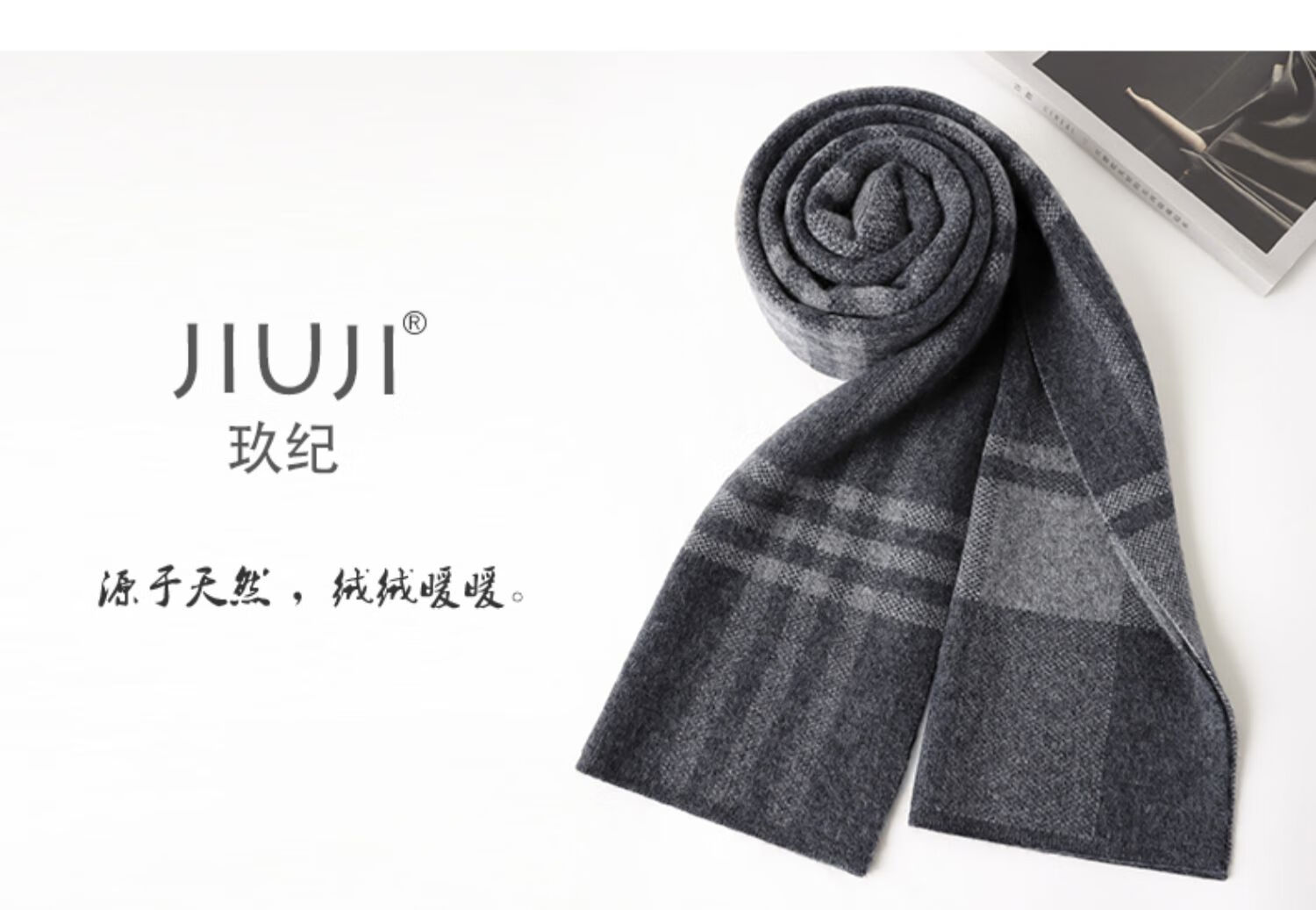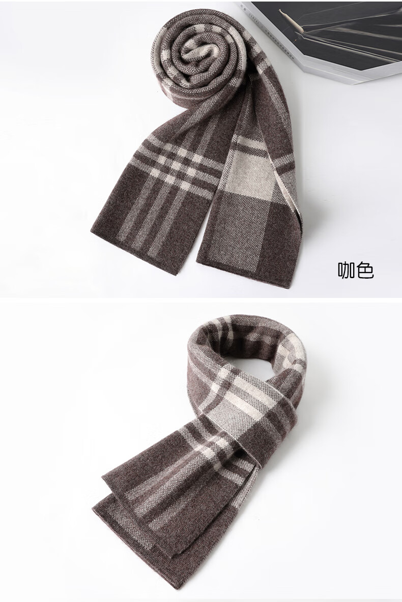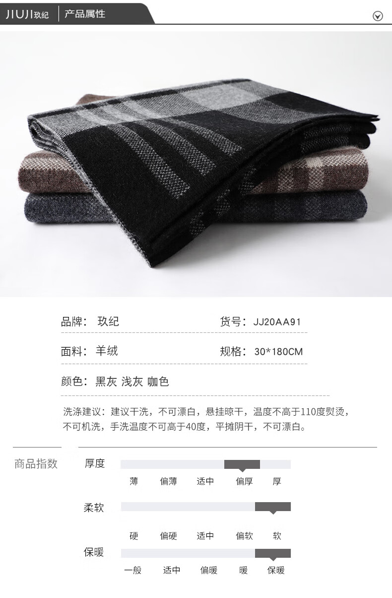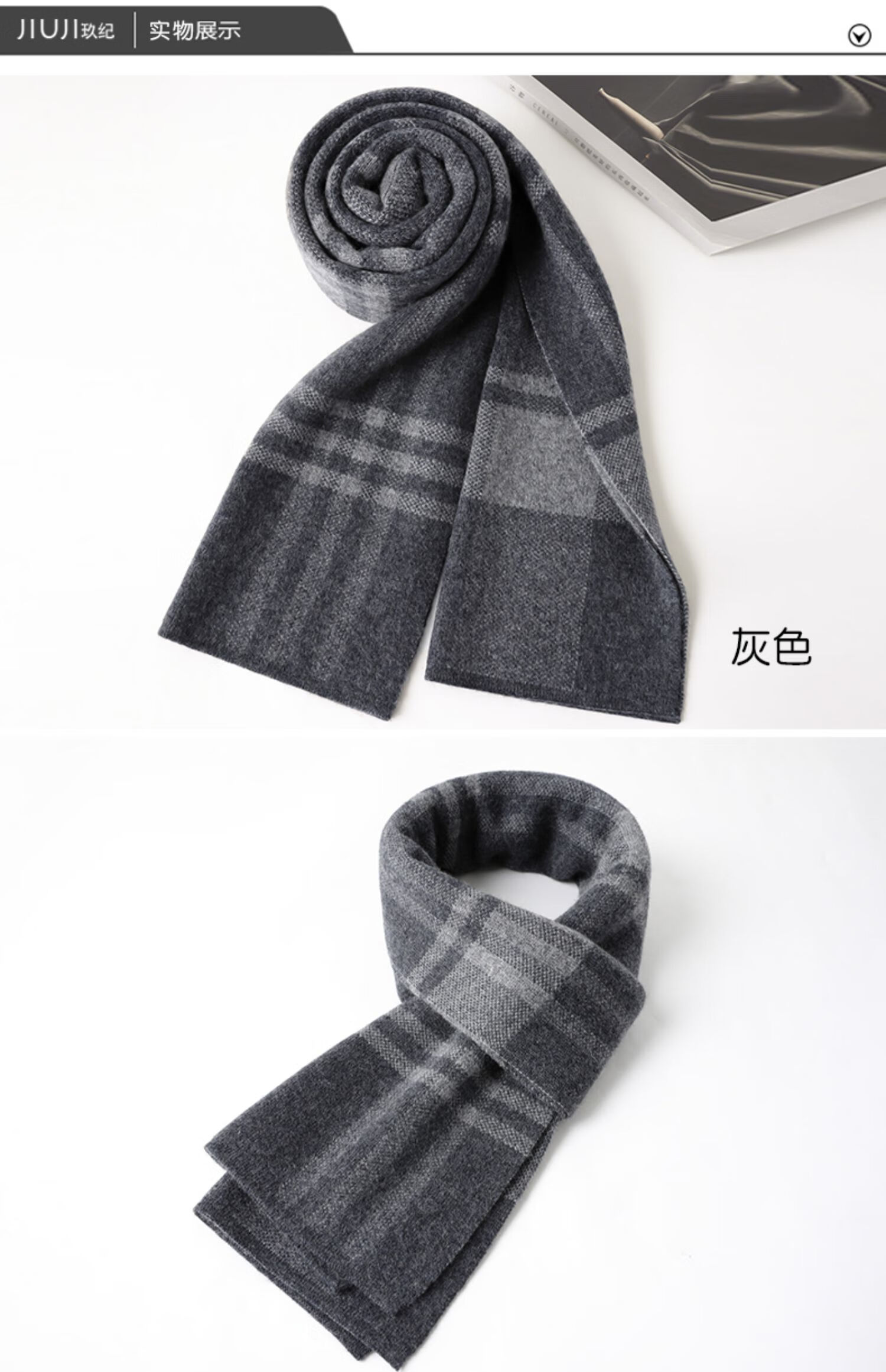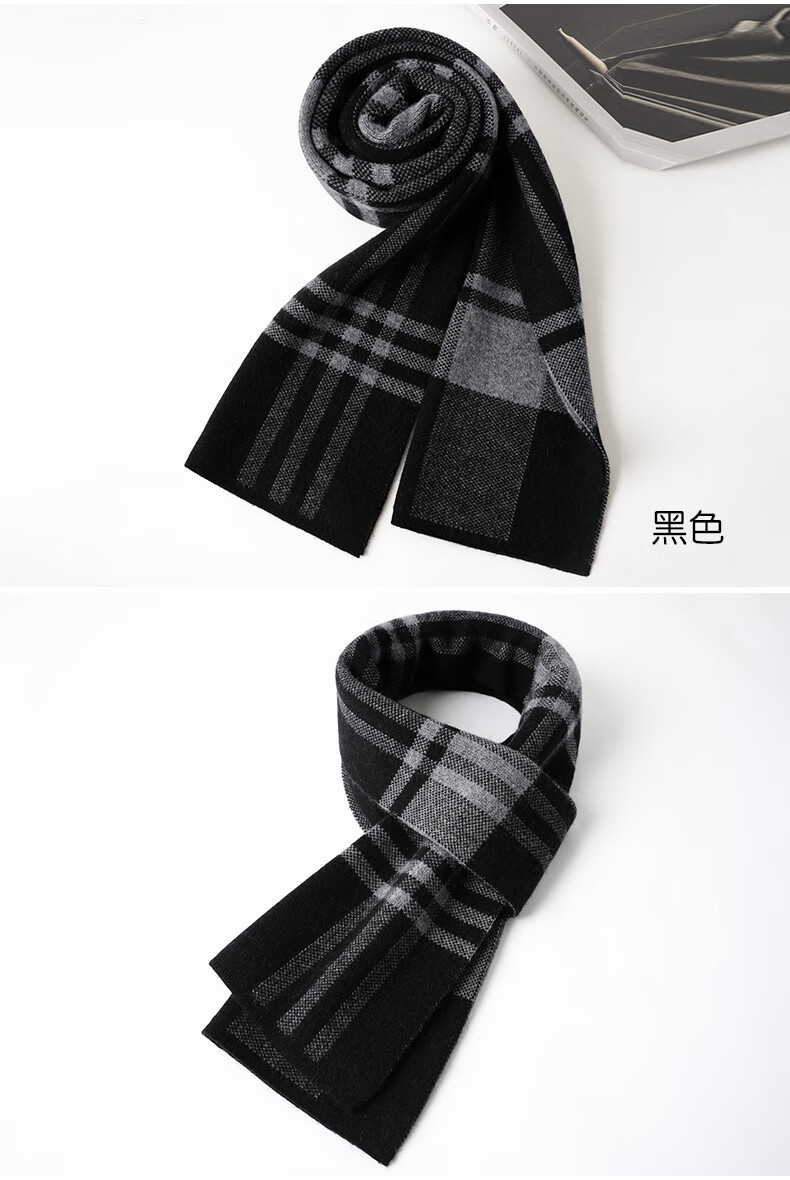 JIUJI cashmere scarf high-end men's winter new thickened warm Korean style striped scarf young people gift box gray
