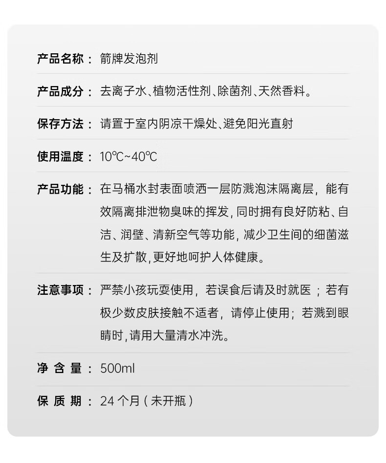 Arrow Foam Shield Arrow Bathroom Smart Toilet Bubble Supplement Foaming Agent Cloud Thick Foam Shield 2.0 Osmanthus Fragrance One bottle can be used 200 times 2 bottles