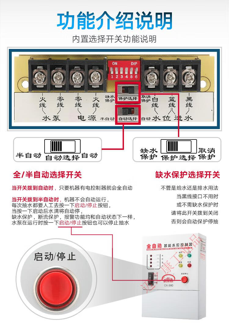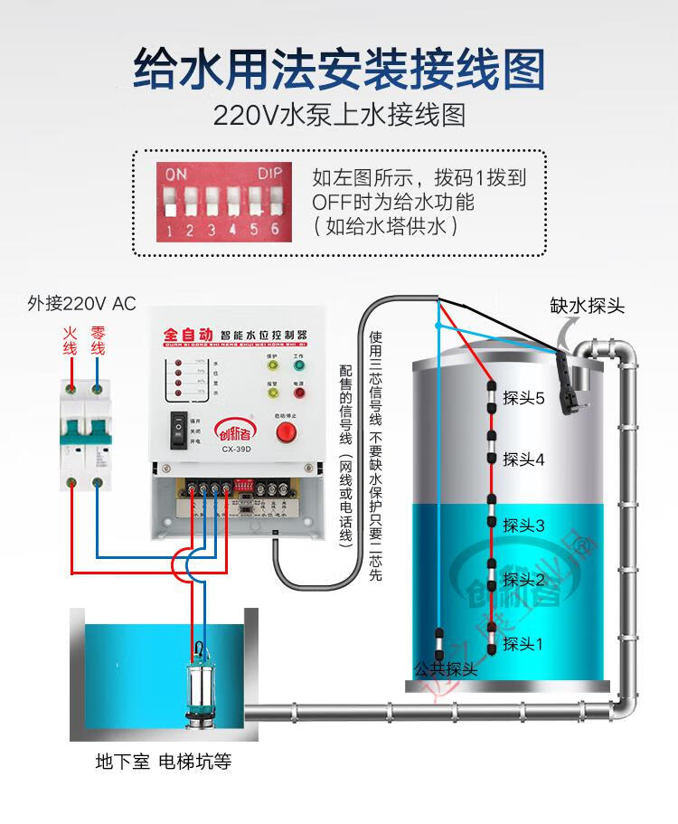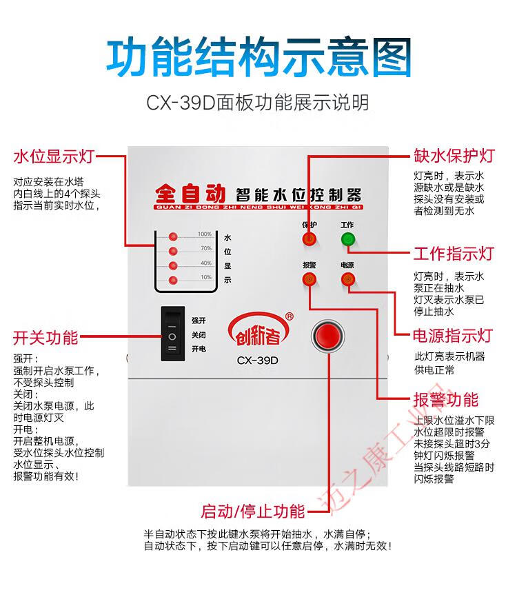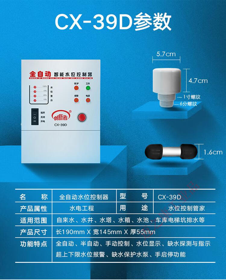 Fully automatic water level control switch induction water pump water tank water tower water controller intelligent pumping display 220v 39D host + 1.5 meter water depth probe