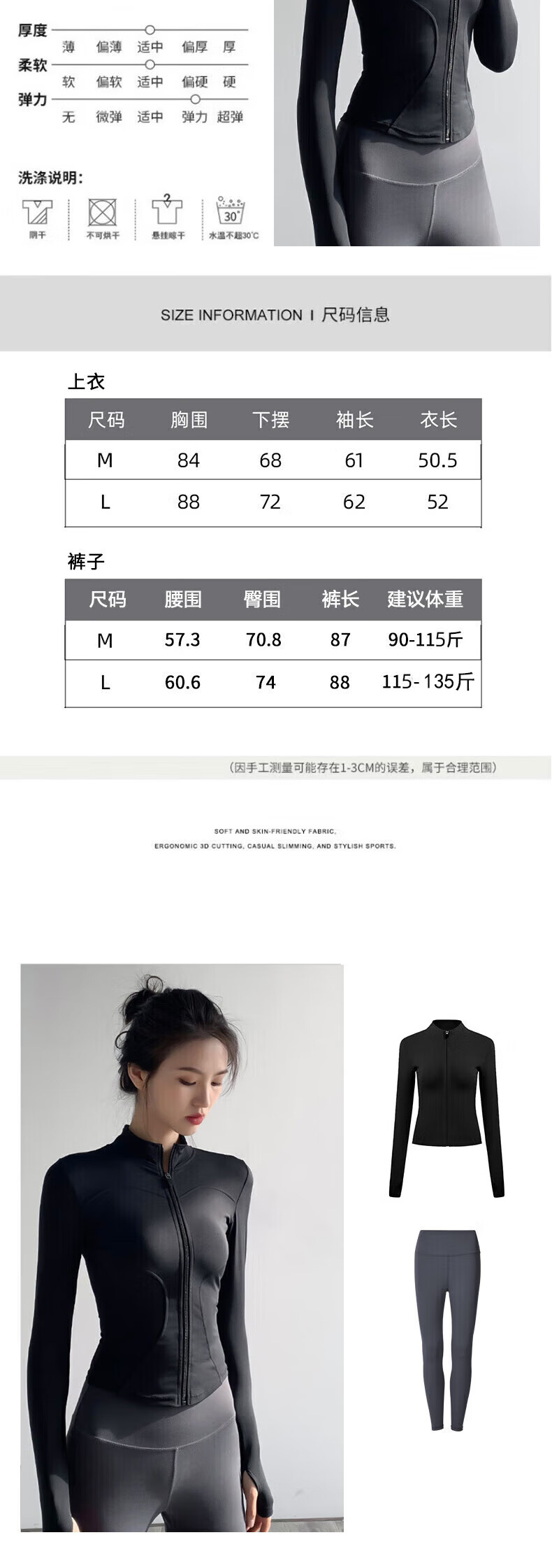 Lugeli Yoga Wear Women's Sports Suit Yoga Pants Running Autumn and Winter Long Sleeve Pilates Training Quick-Drying Wear Fitness Wear Two-piece Yoga Wear Black + Gray M Recommendation 90-115 Jin Jin equals 0.5 kg