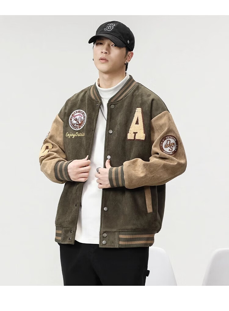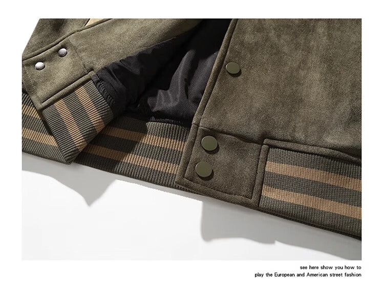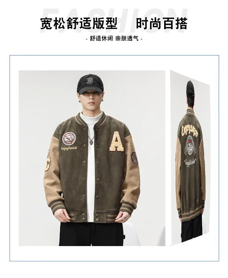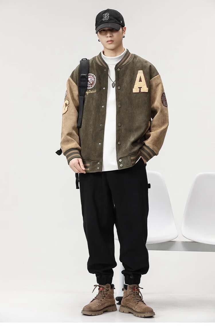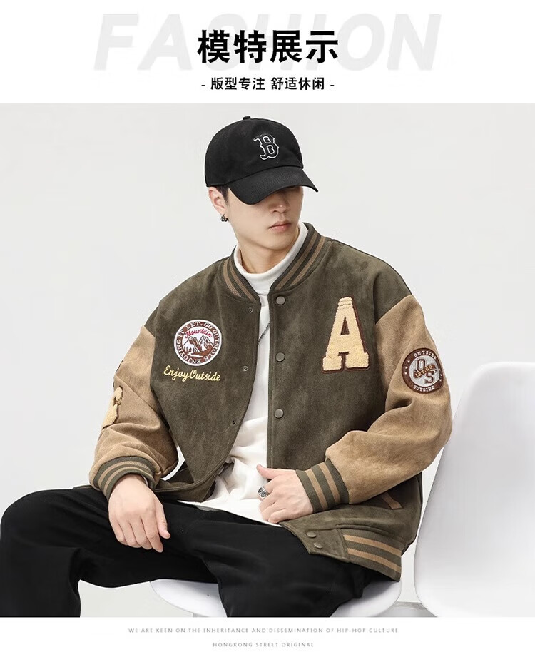 ROMON American high-end military green patchwork baseball uniform jacket for men spring and autumn design color matching loose top jacket for men green 2XL 160-180Jin Jin is equal to 0.5 kg