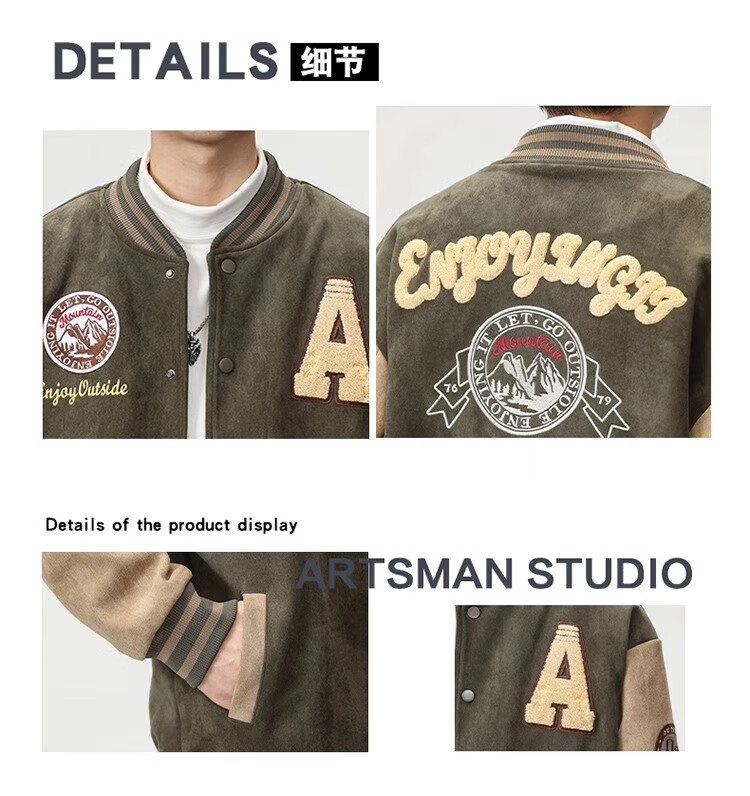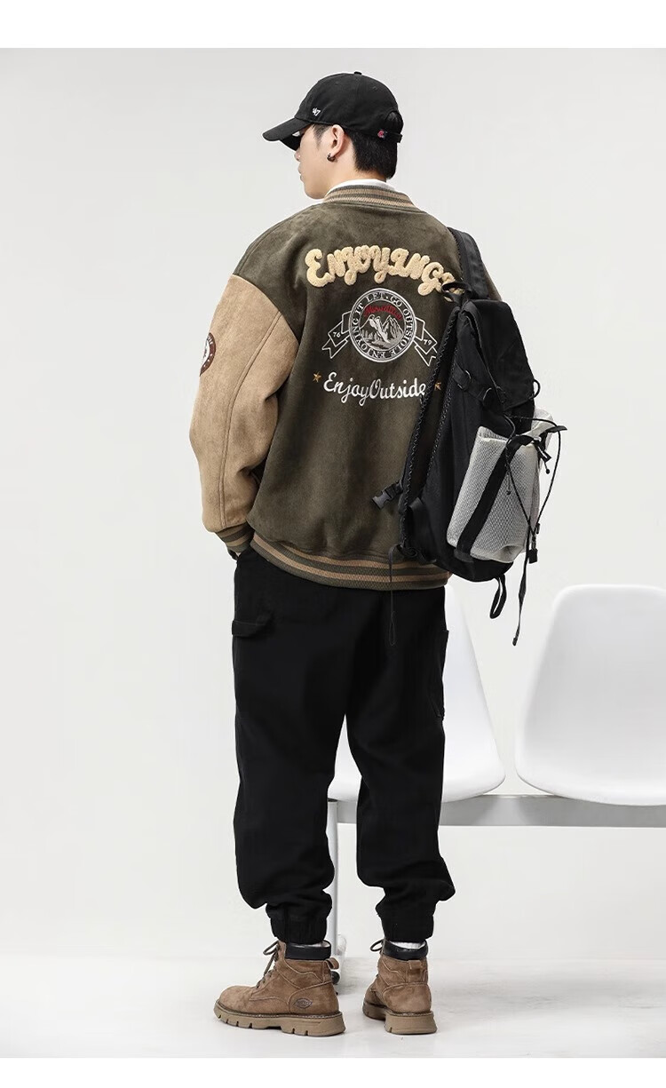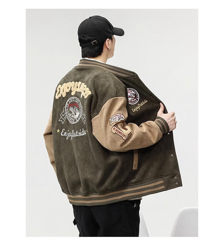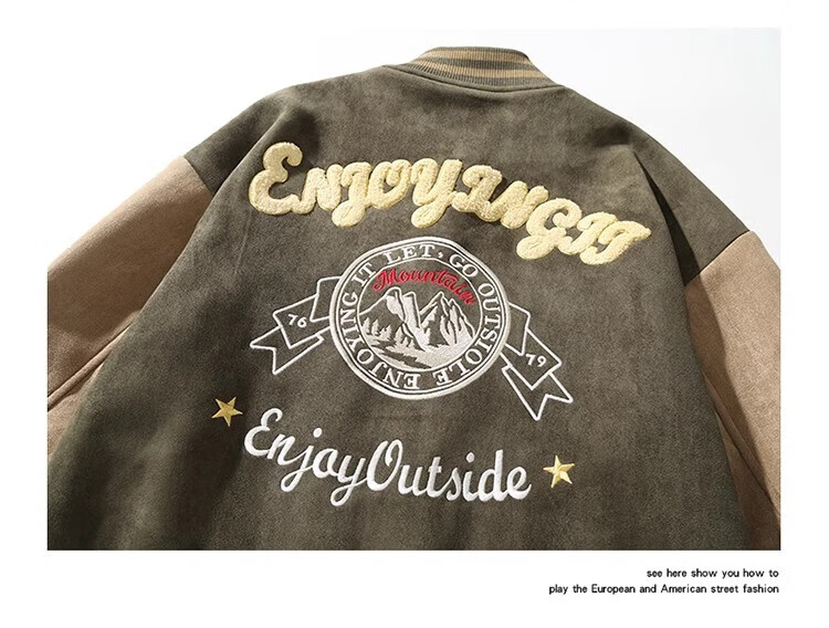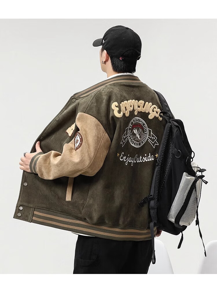 ROMON American high-end military green patchwork baseball uniform jacket for men spring and autumn design color matching loose top jacket for men green 2XL 160-180Jin Jin is equal to 0.5 kg